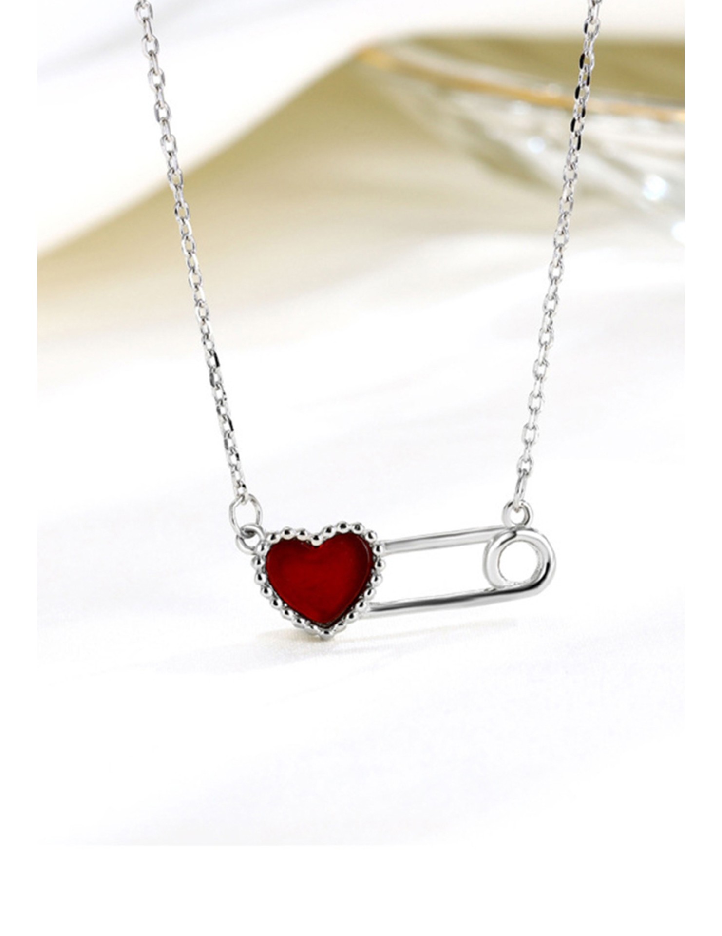 LDR24424 S925純銀紅色瑪瑙愛心別針項鏈