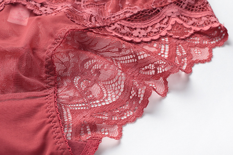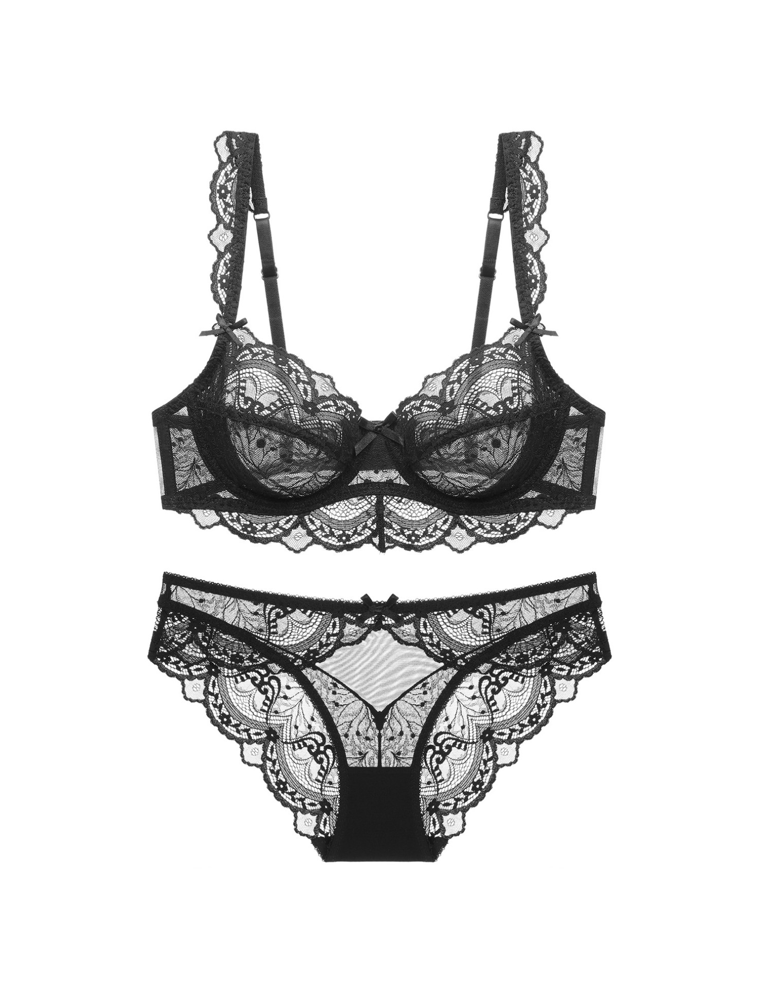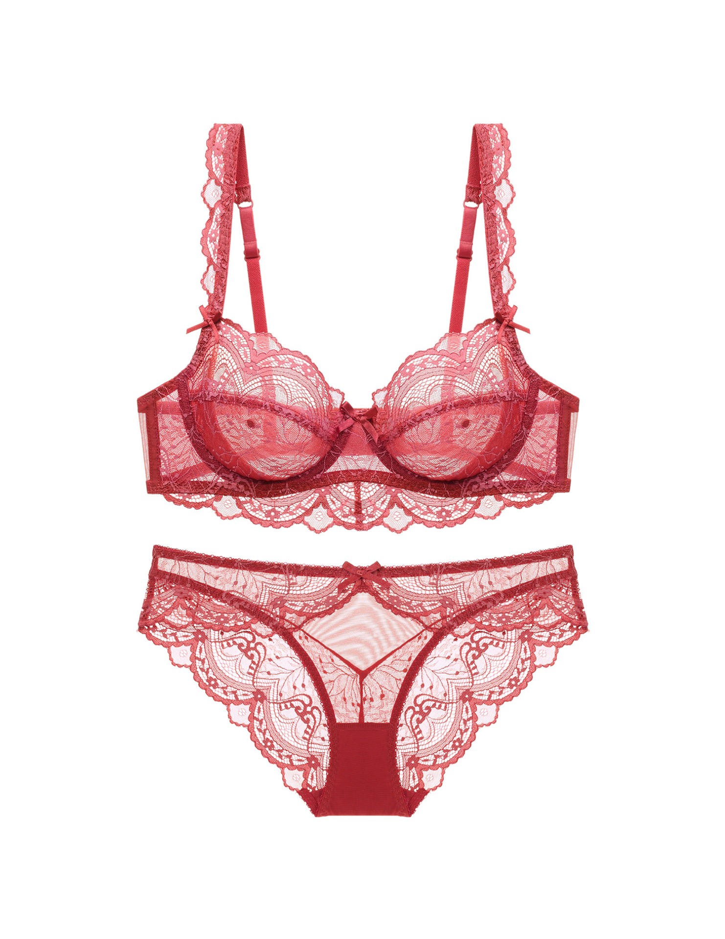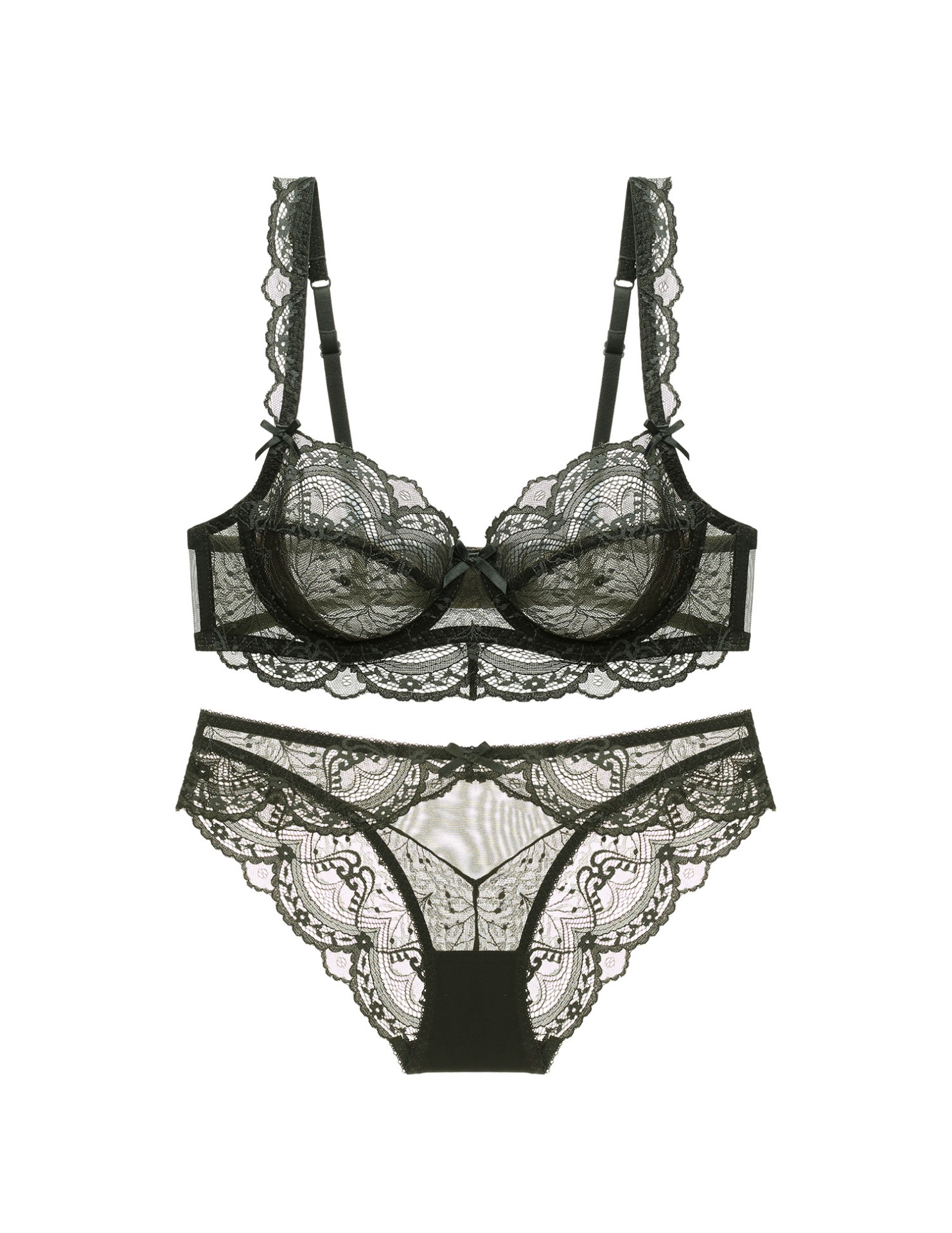 WLMZ113100001 法式蕾絲內衣女超薄無海綿性感內衣套裝大胸顯小防下垂上托文胸罩