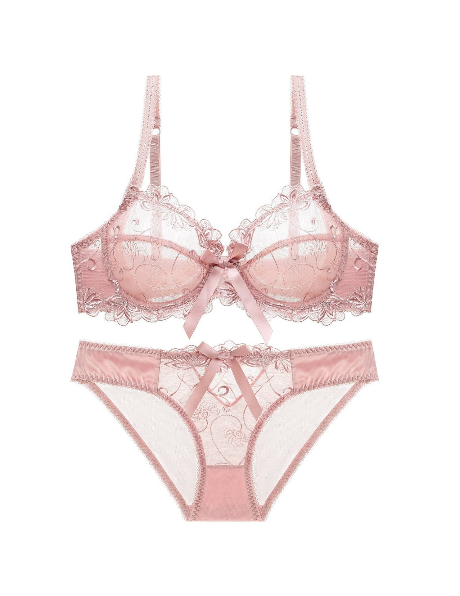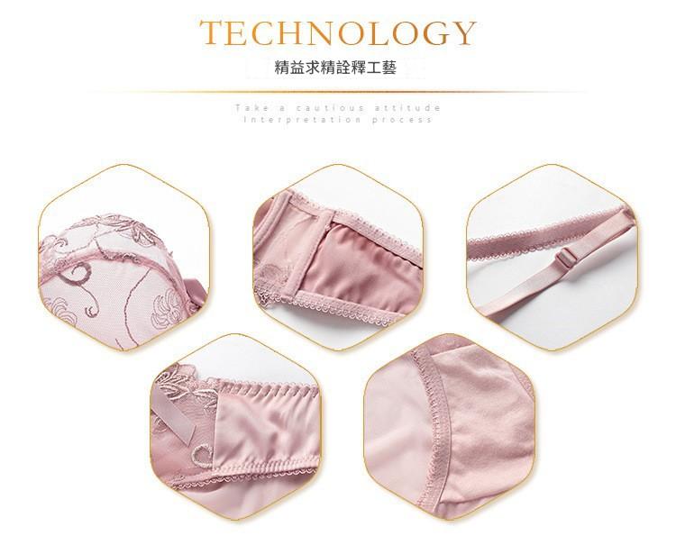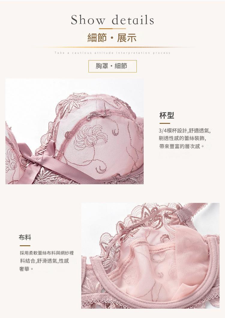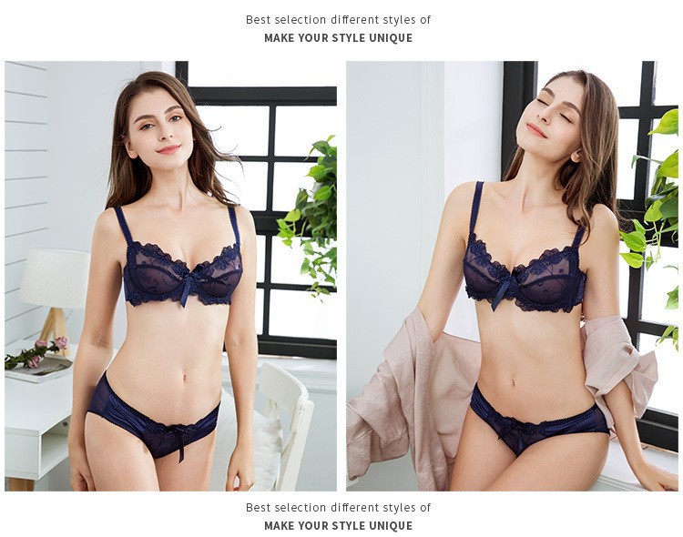 WLMZ113100071 性感蕾絲內衣法式超薄蝴蝶結網紗大碼內衣大胸顯小防下垂文胸