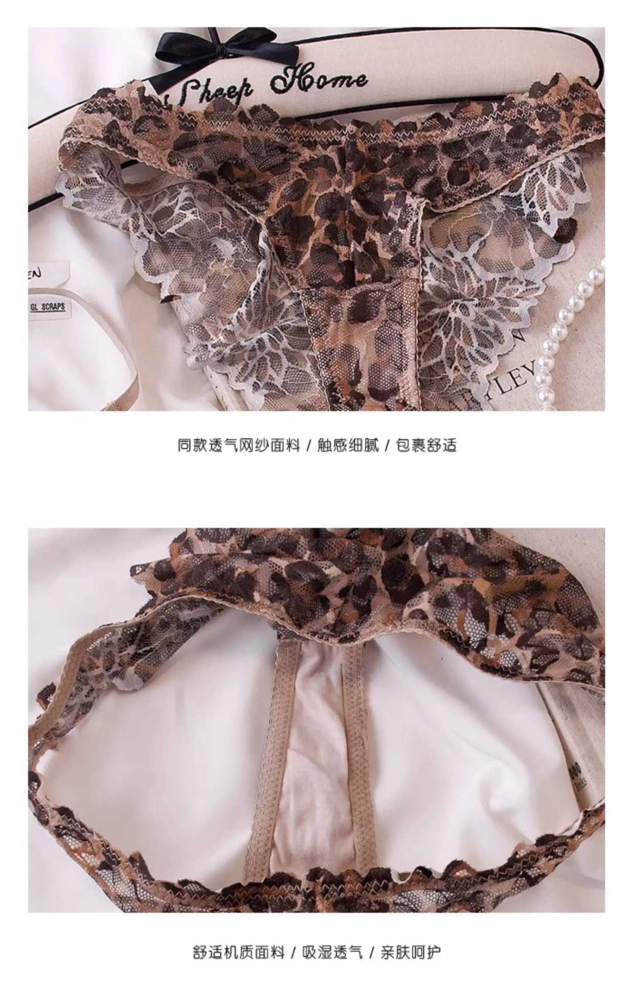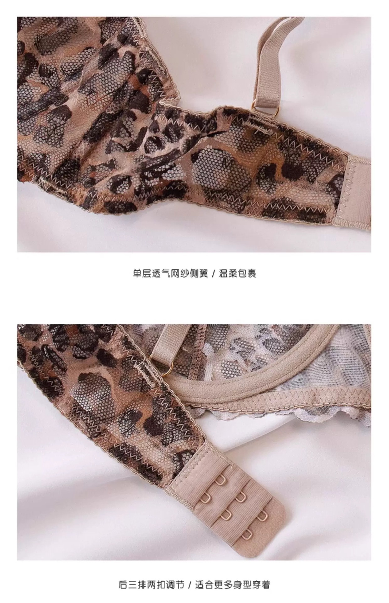 WLMZ113100075 法式內衣女超薄豹紋印花蕾絲文胸大胸顯小防下垂性感內衣套裝