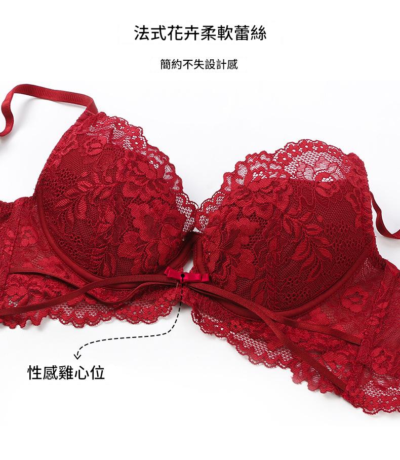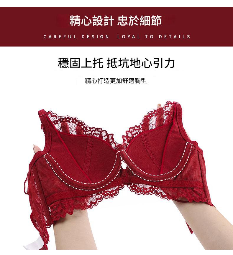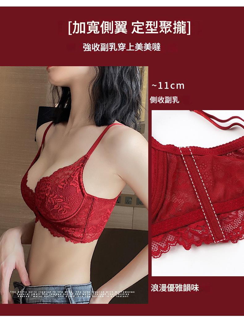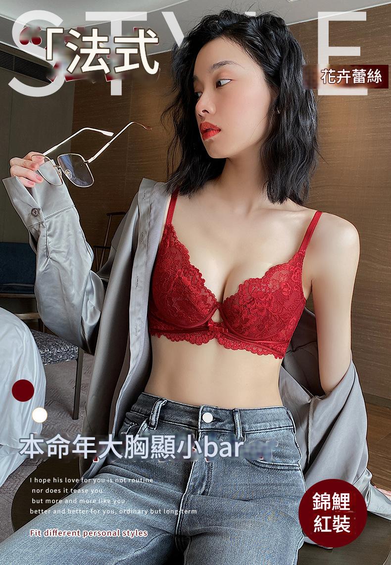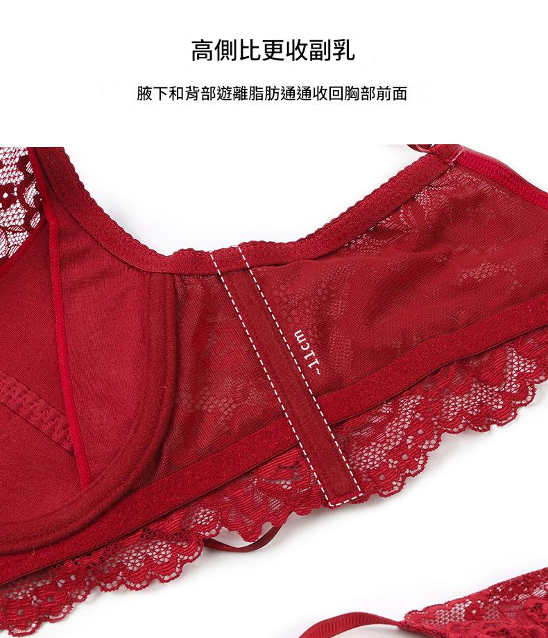 WLMZ113100105 夏季性感內衣法式薄款軟鋼圈大胸顯小大碼內衣本命年紅色蕾絲文胸