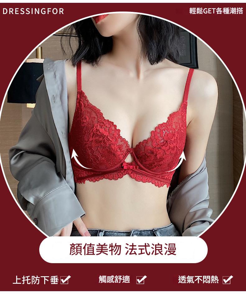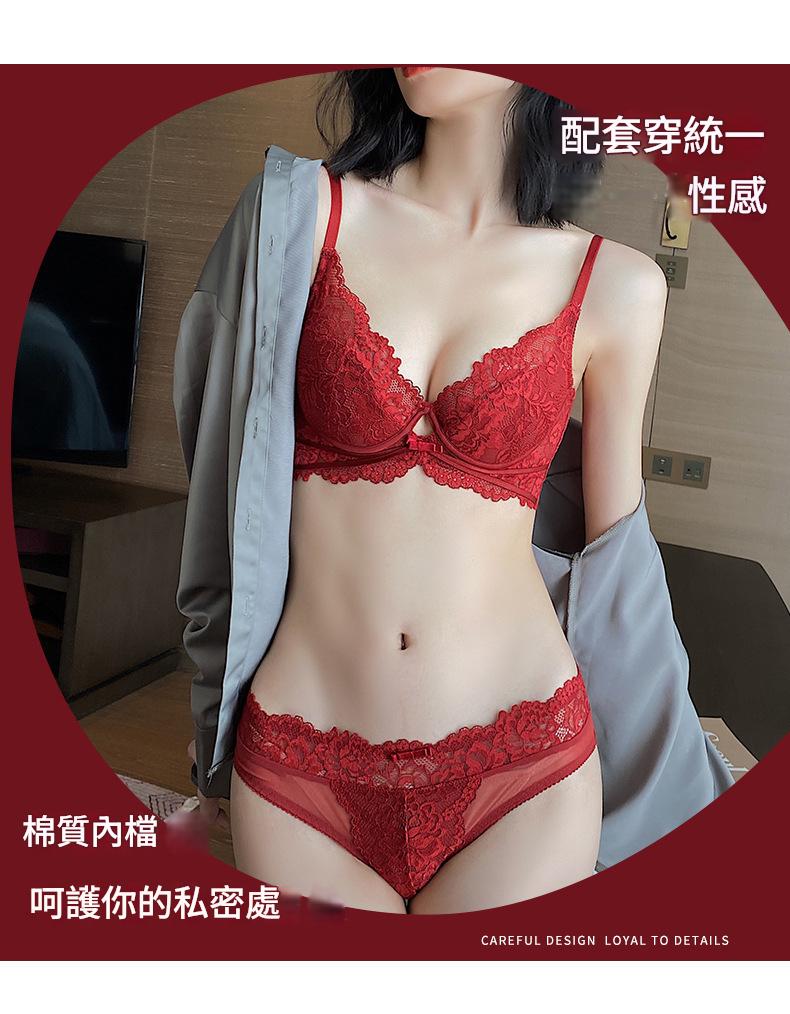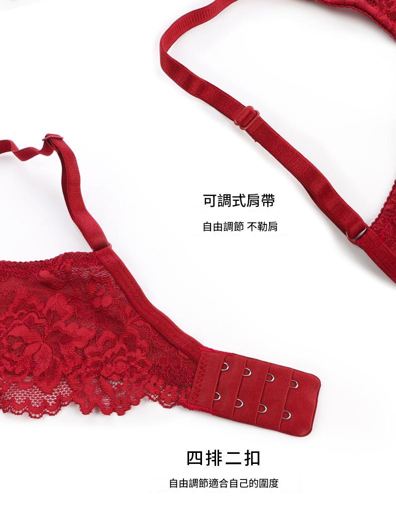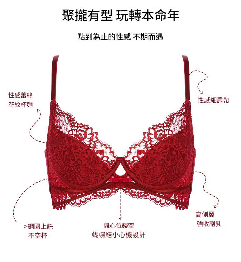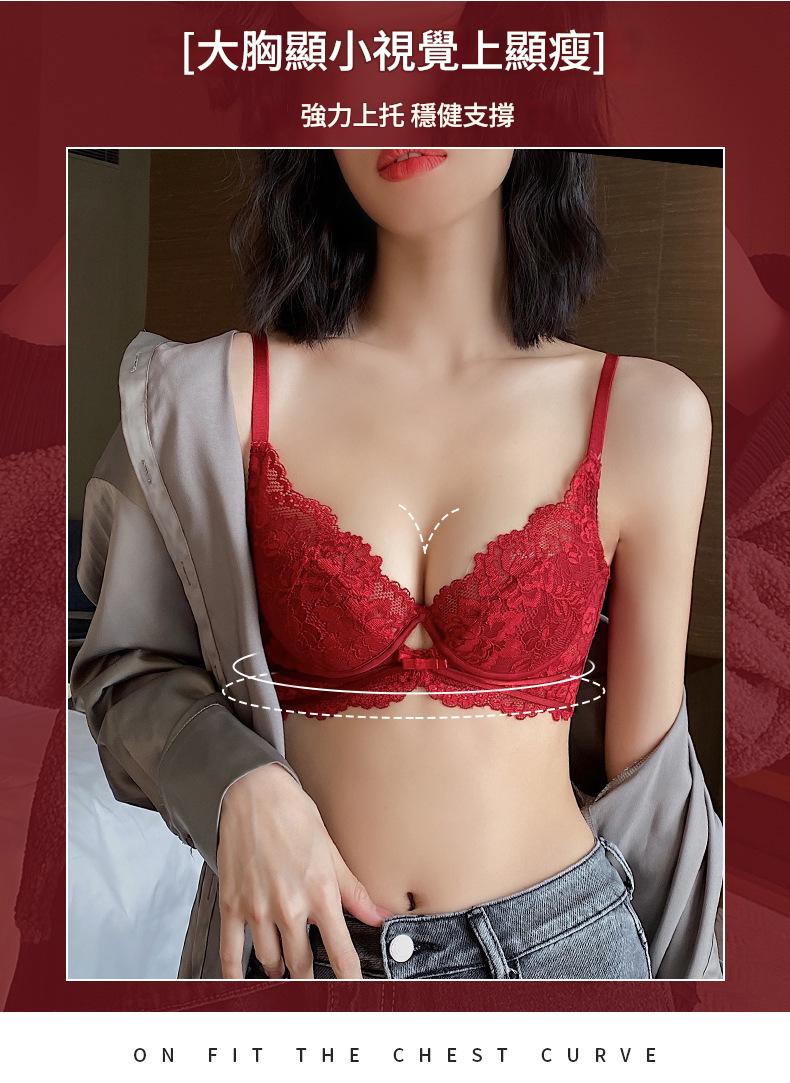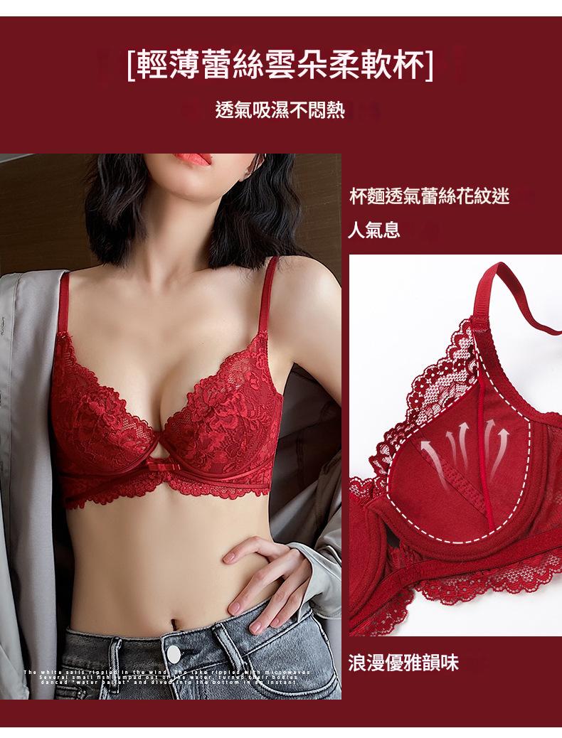 WLMZ113100105 夏季性感內衣法式薄款軟鋼圈大胸顯小大碼內衣本命年紅色蕾絲文胸