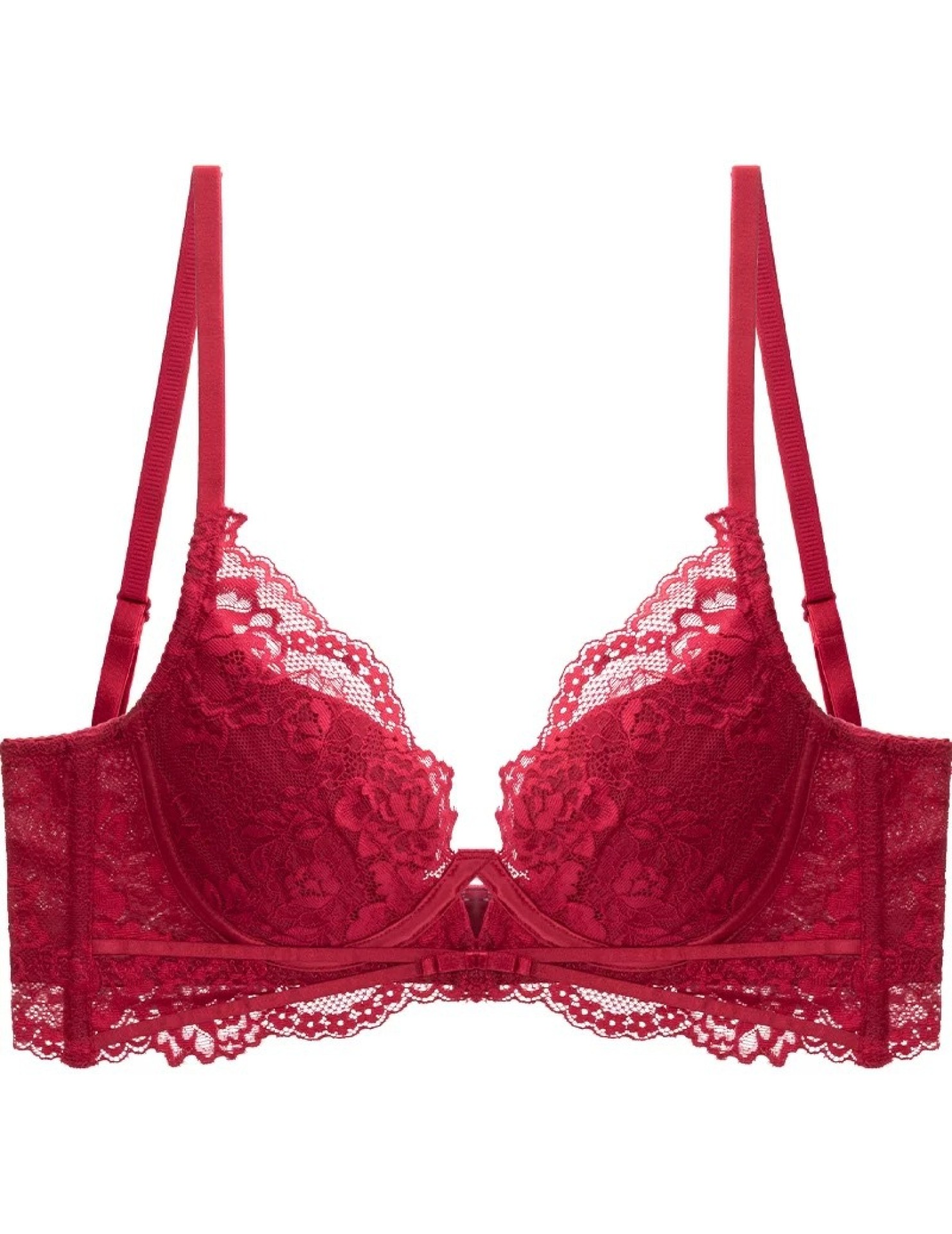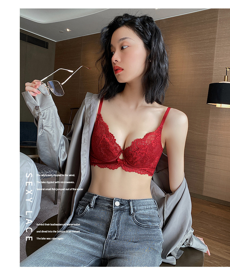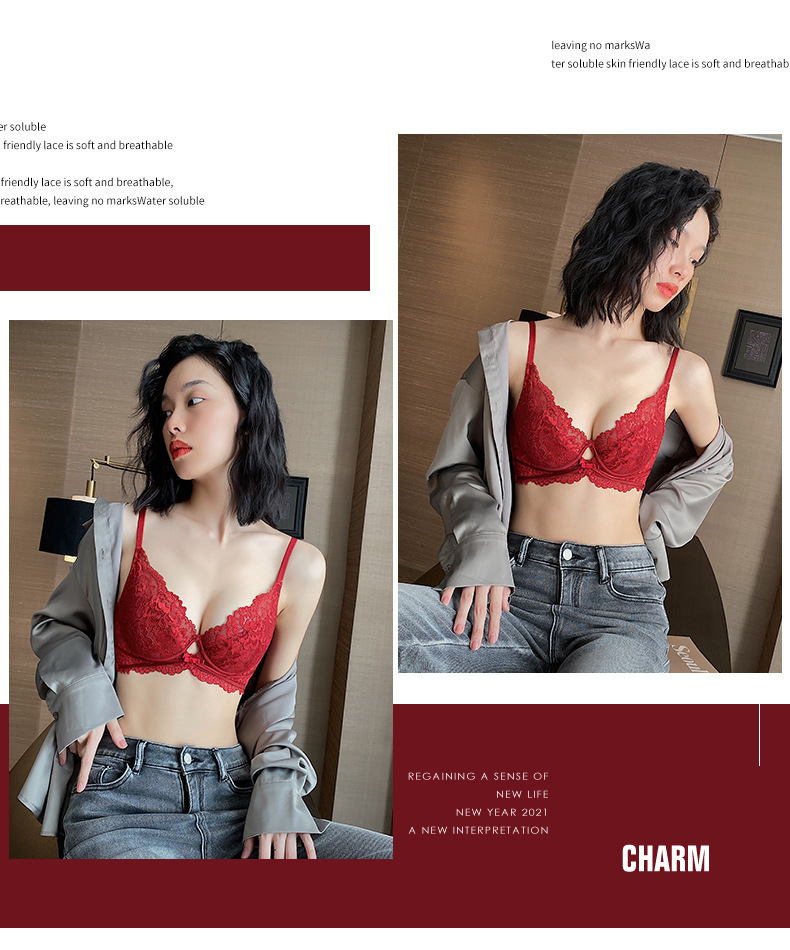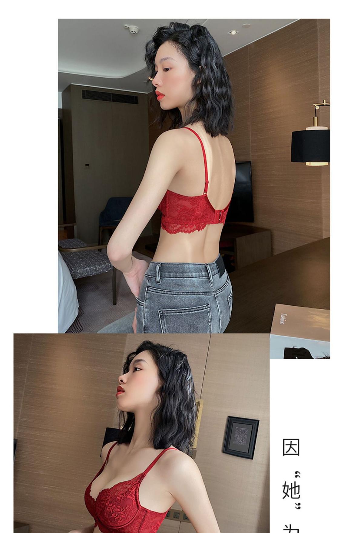 WLMZ113100105 夏季性感內衣法式薄款軟鋼圈大胸顯小大碼內衣本命年紅色蕾絲文胸