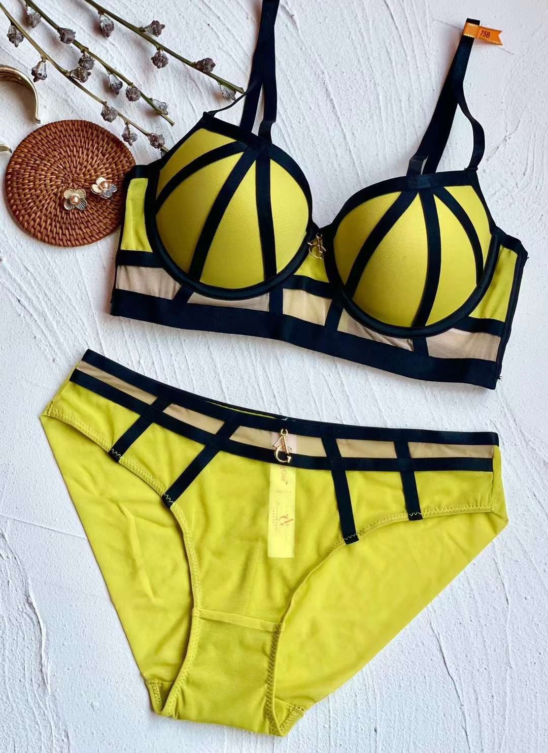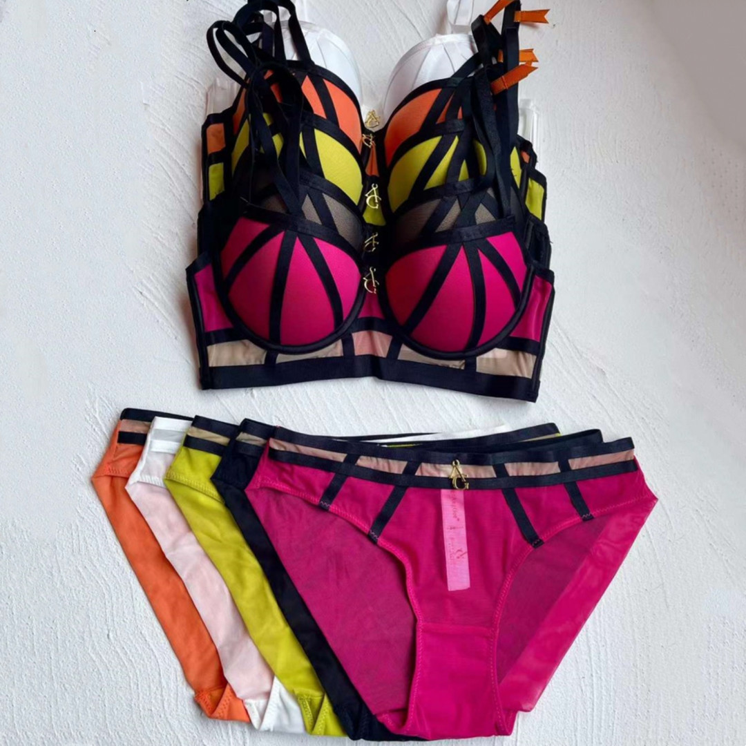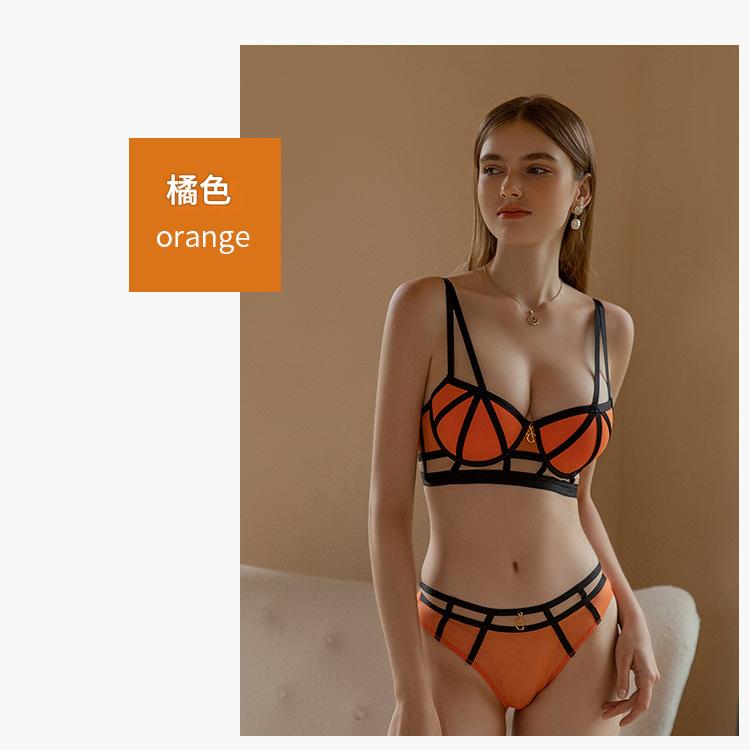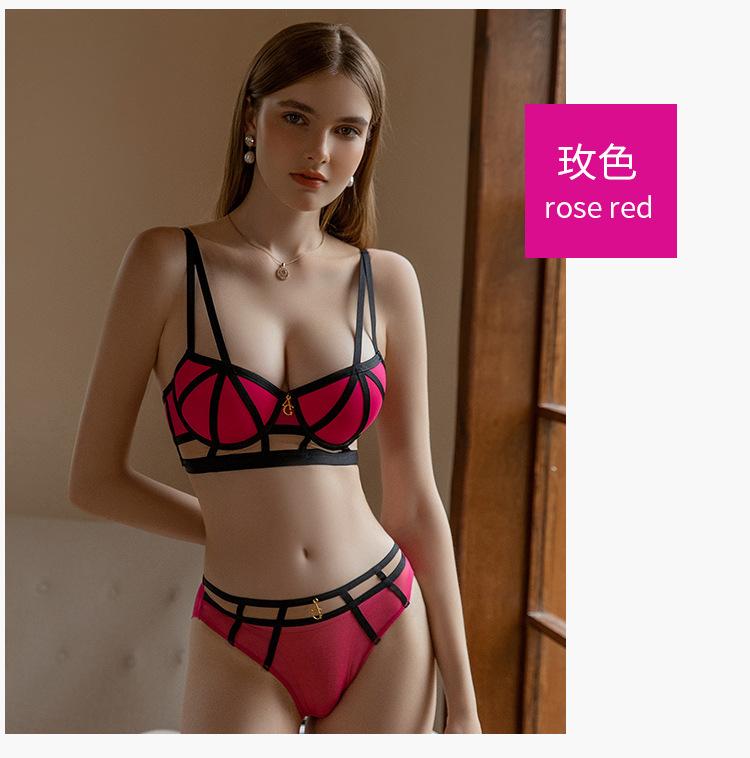 WLMZ113100107 小胸聚攏內衣顯胸大撞色綁帶美胸性感文胸防下垂上托內衣套裝