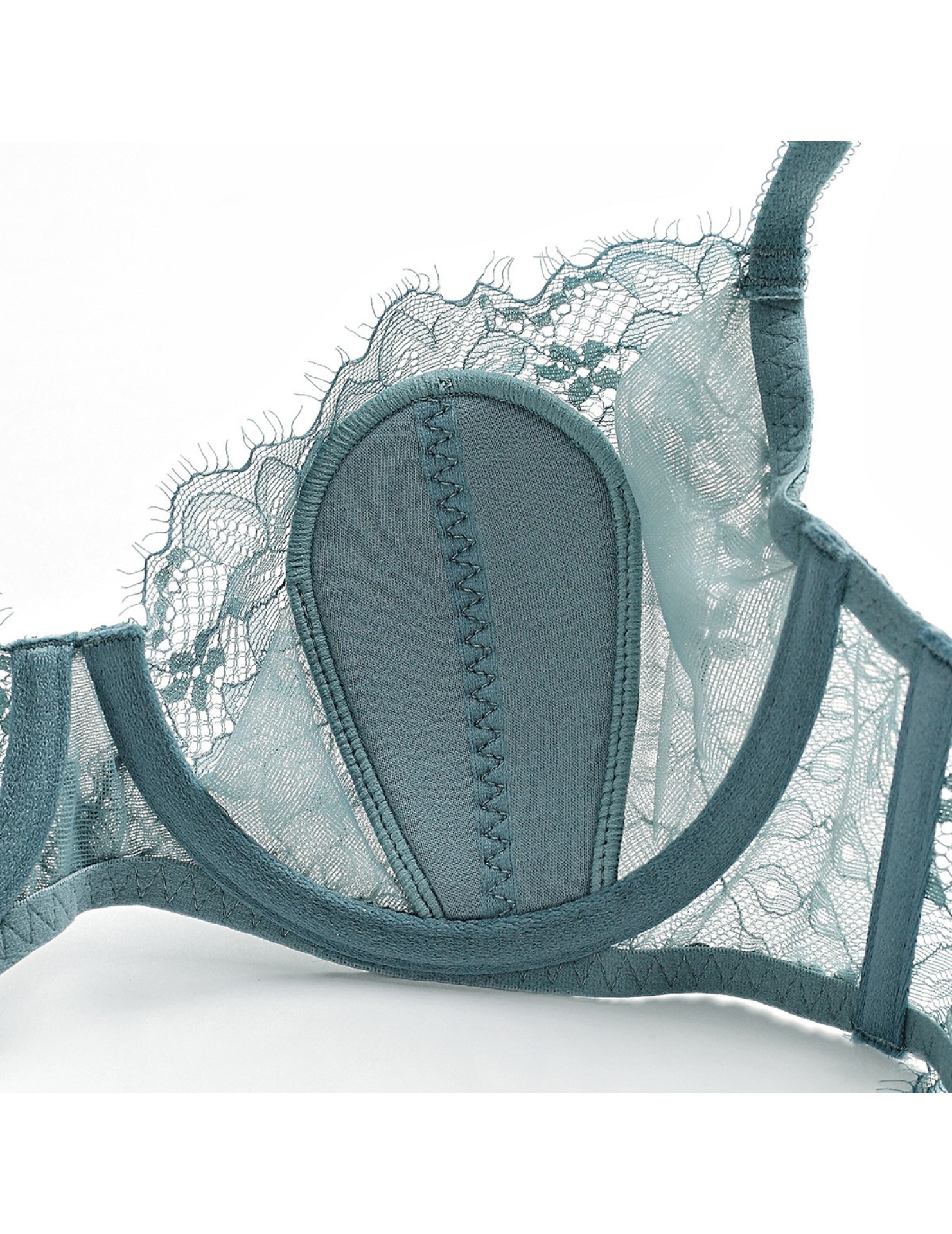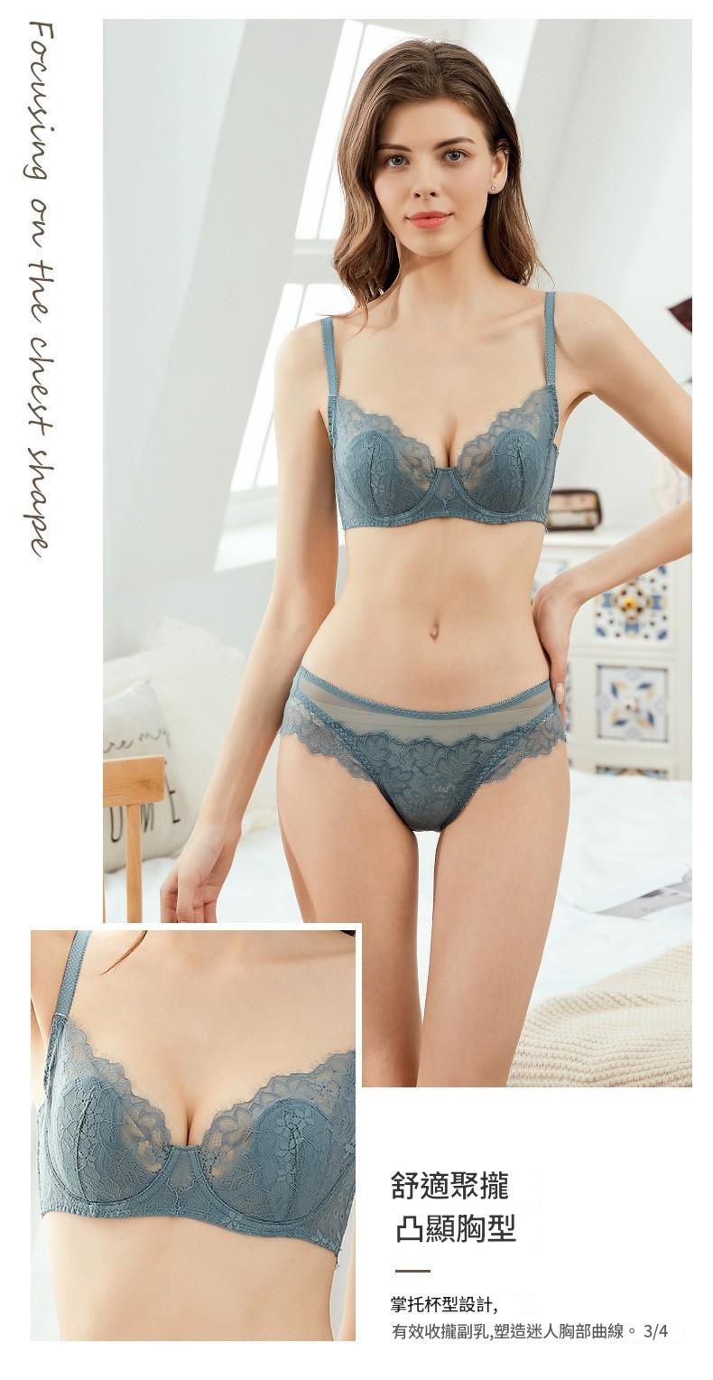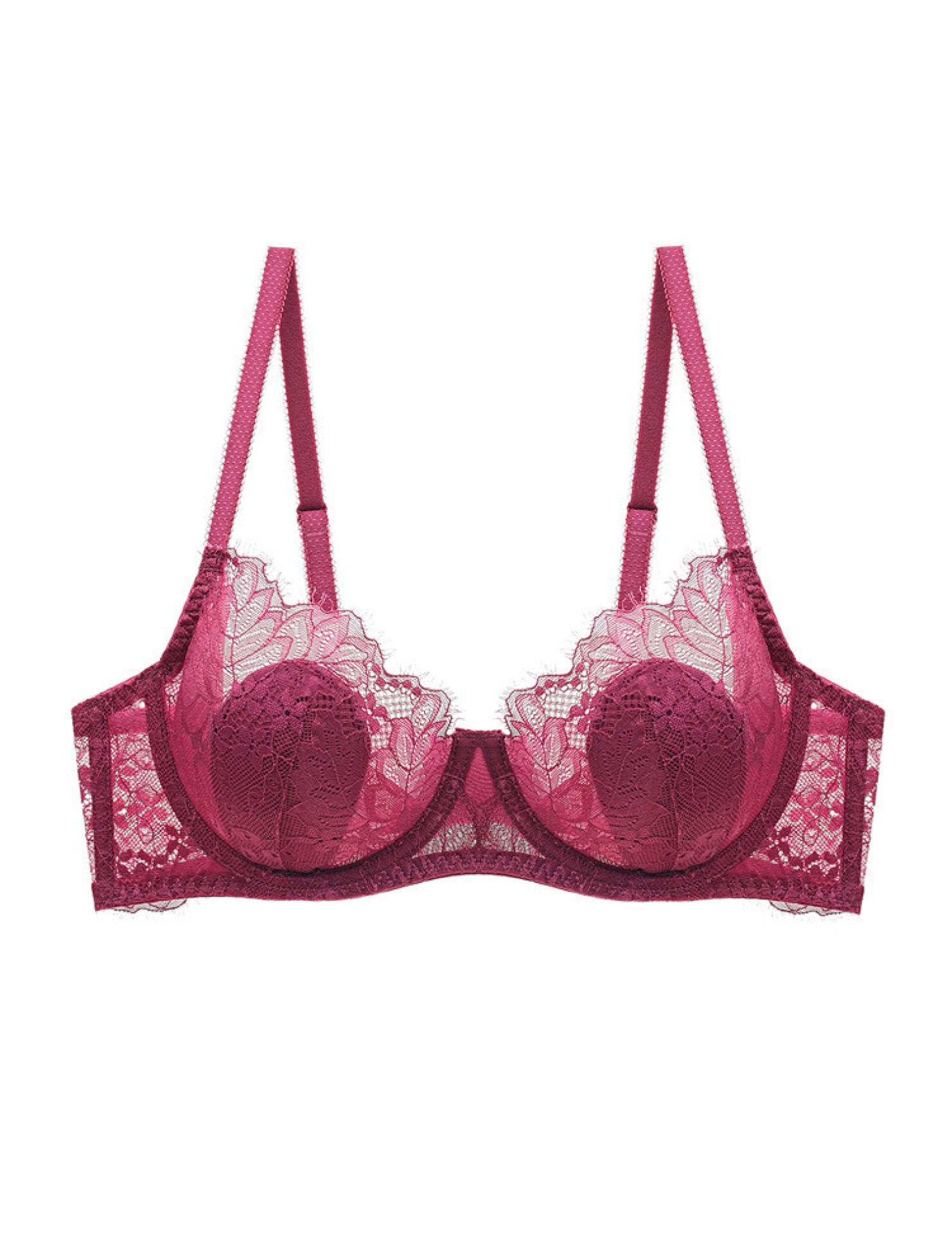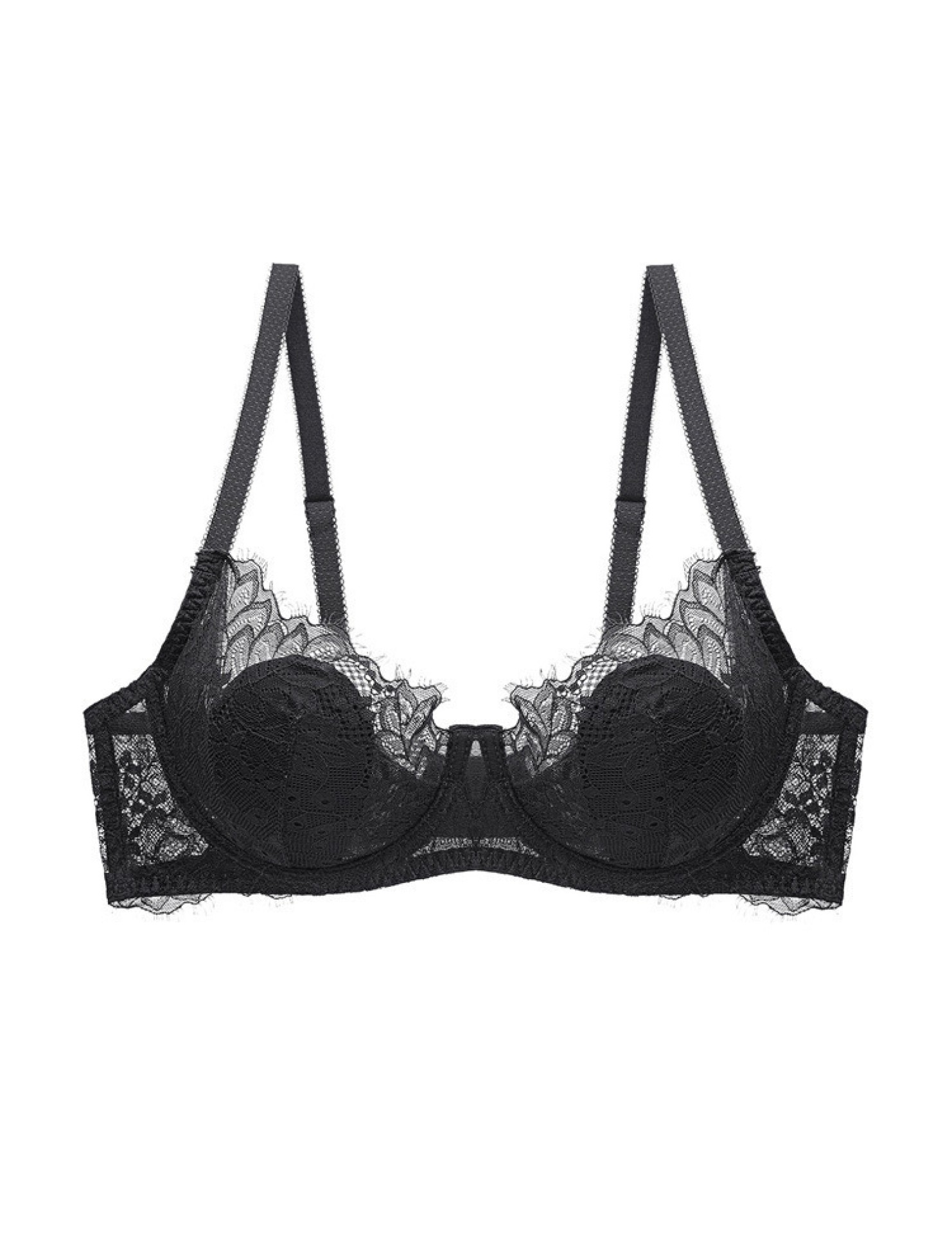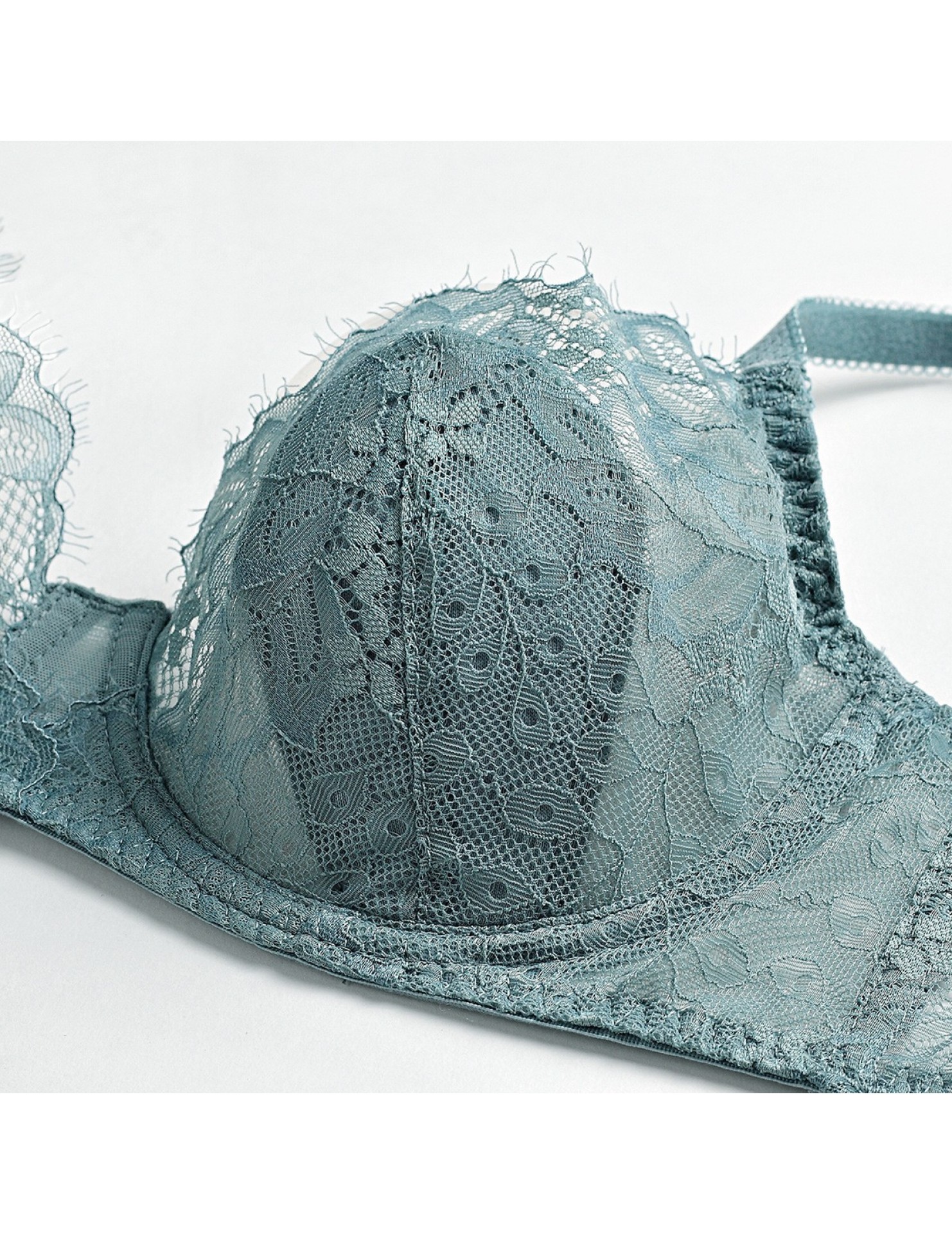 WLMZ113100108 性感內衣女法式薄款透明蕾絲文胸大胸顯小防下垂大碼內衣
