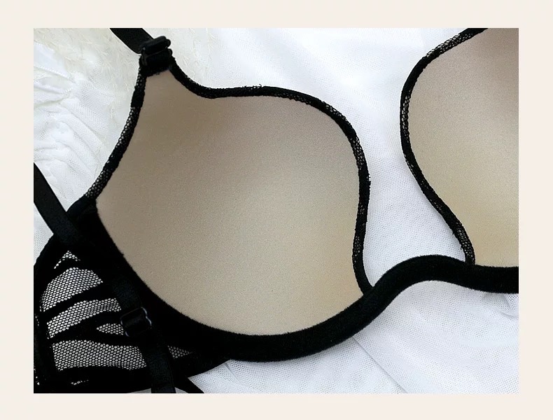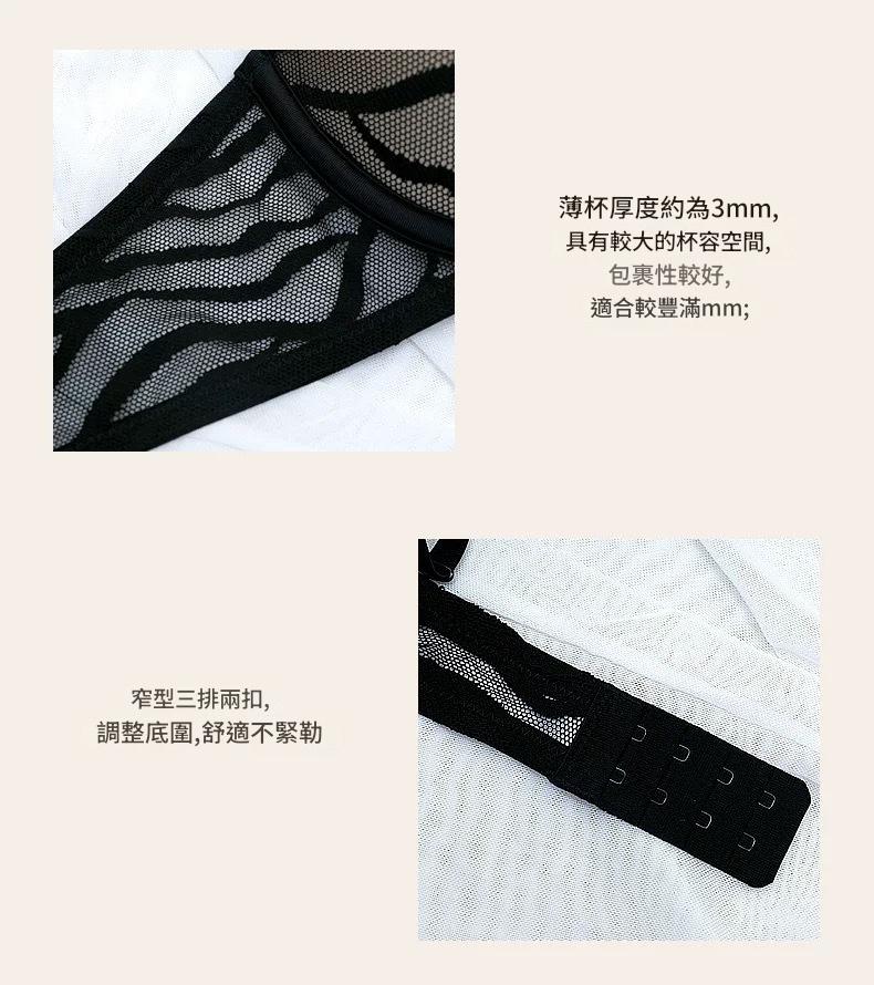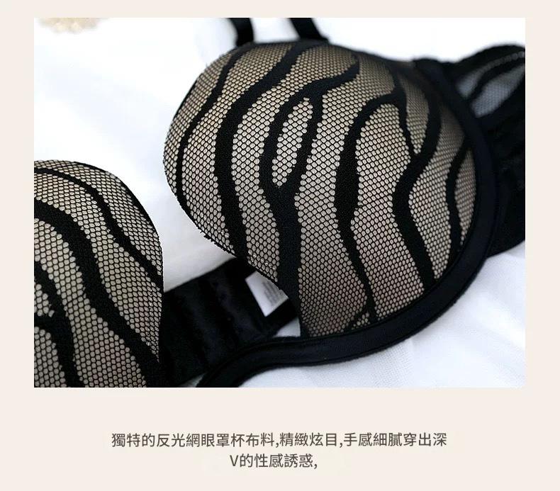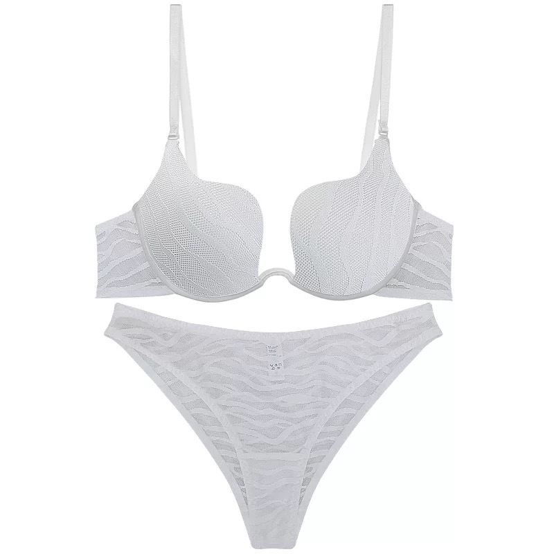 WLMZ113100116 性感內衣夏季薄杯U型光面條紋大碼文胸大胸顯小聚攏內衣套裝