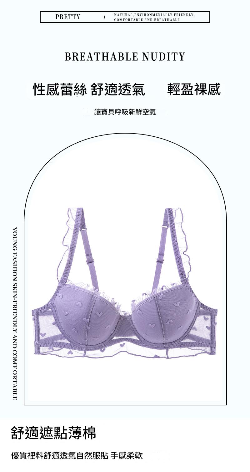WLMZ113100117 性感蕾絲內衣女夏季薄款軟鋼圈法式內衣大胸顯小防下垂文胸罩