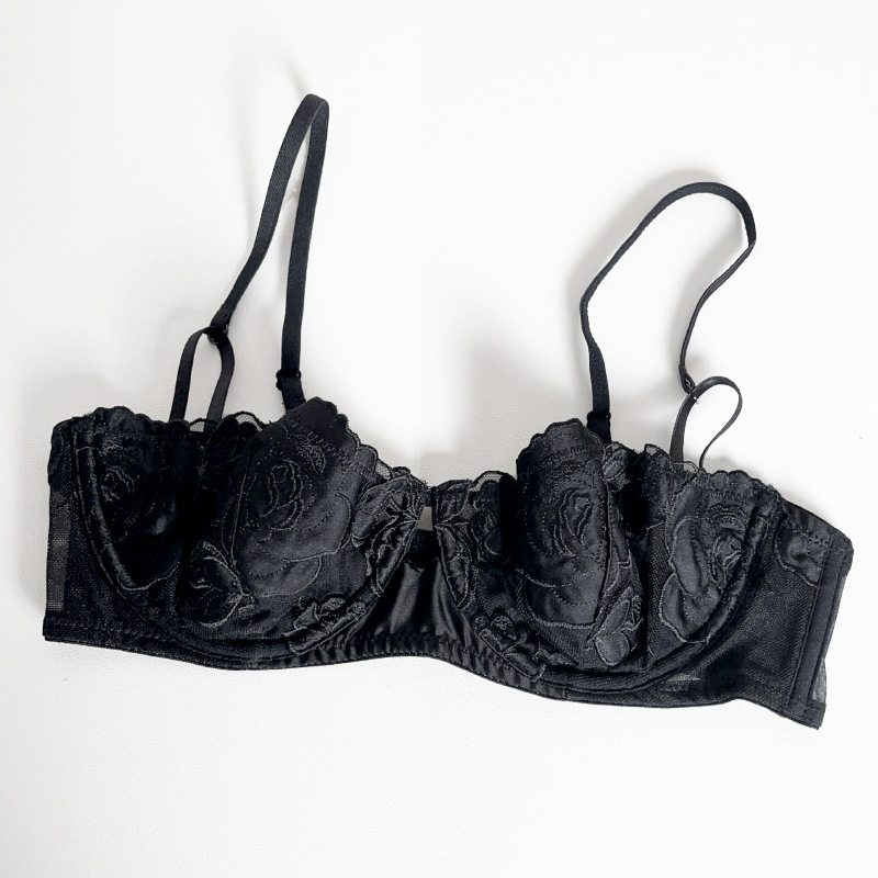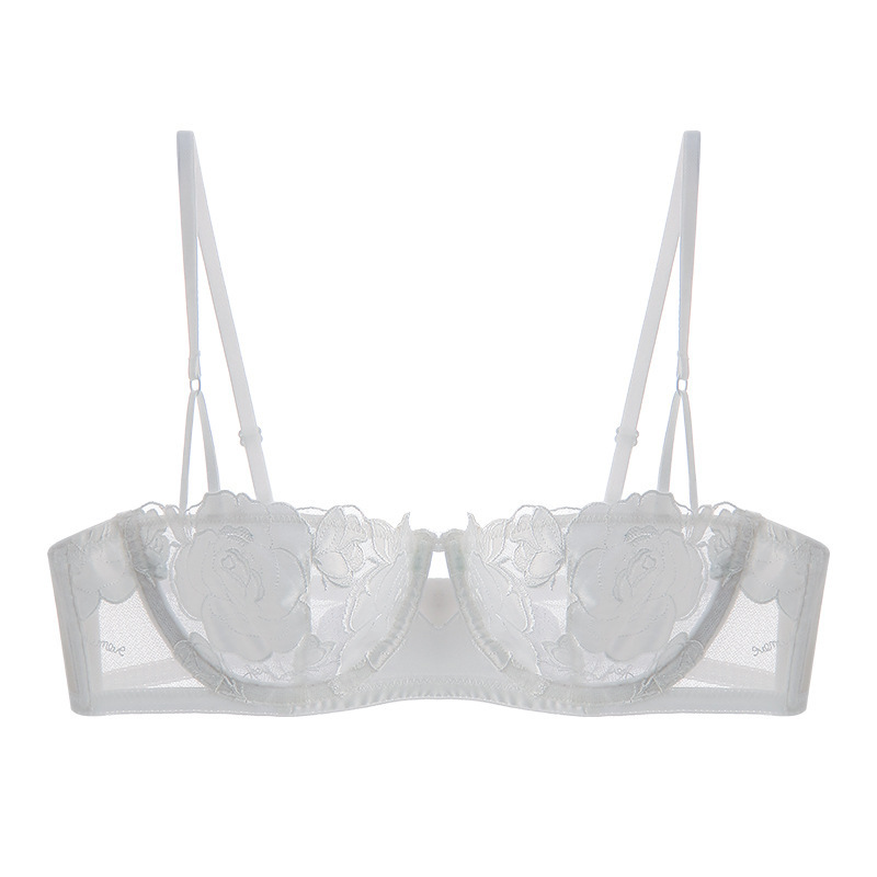 WLMZ113100119 性感內衣女法式超薄玫瑰花刺繡蕾絲內衣大胸顯小防下垂文胸罩