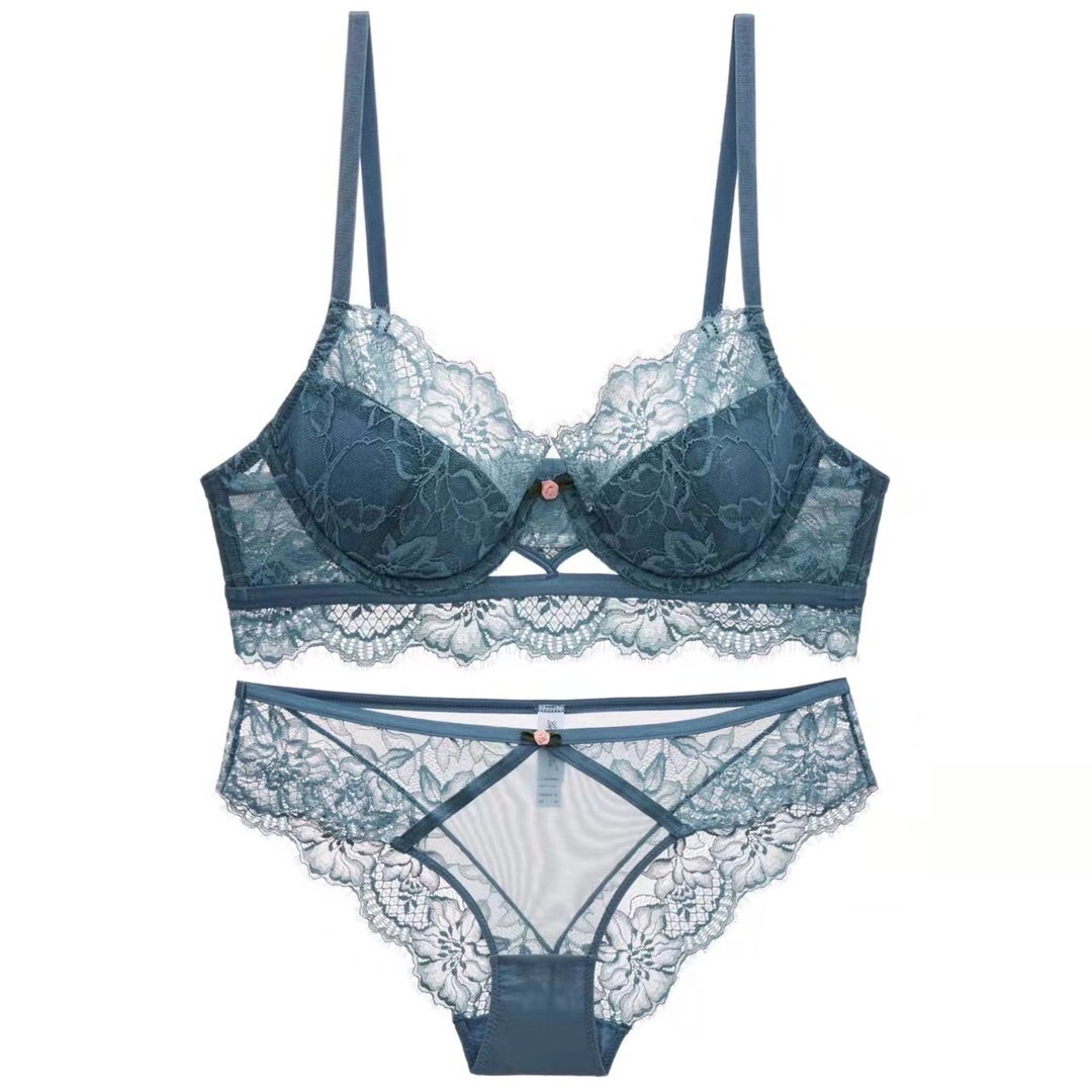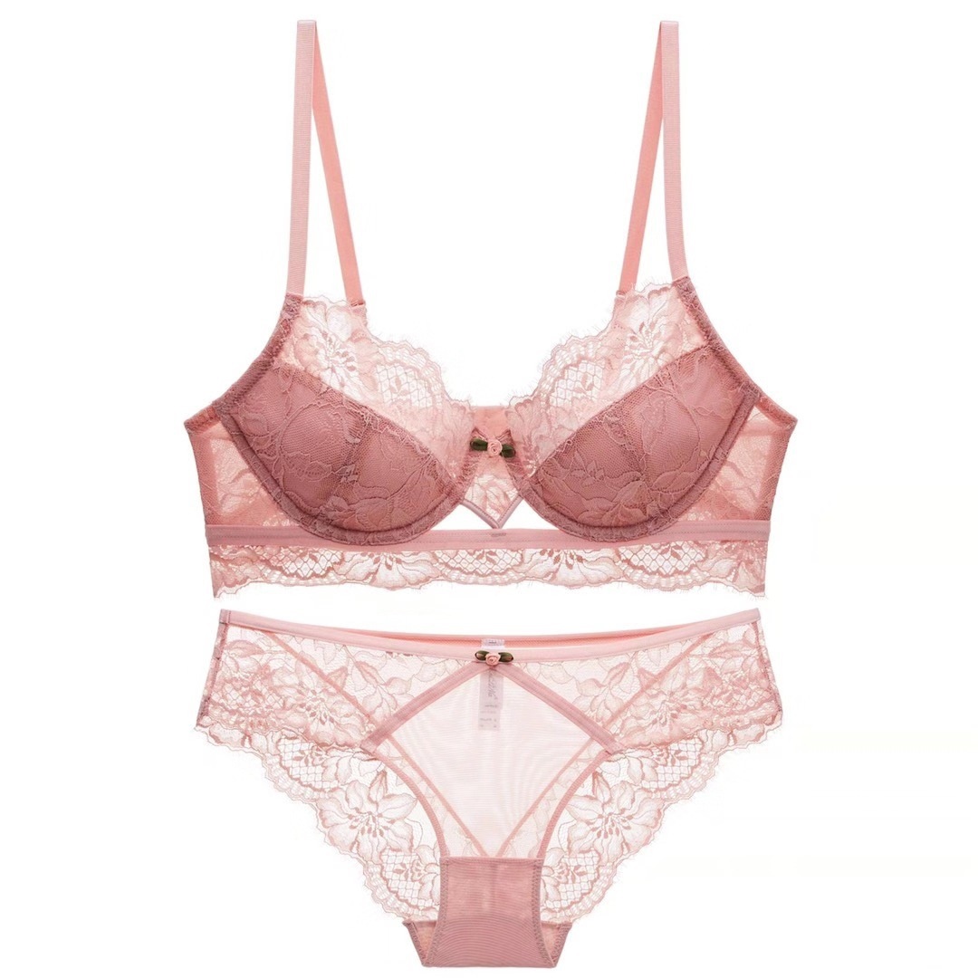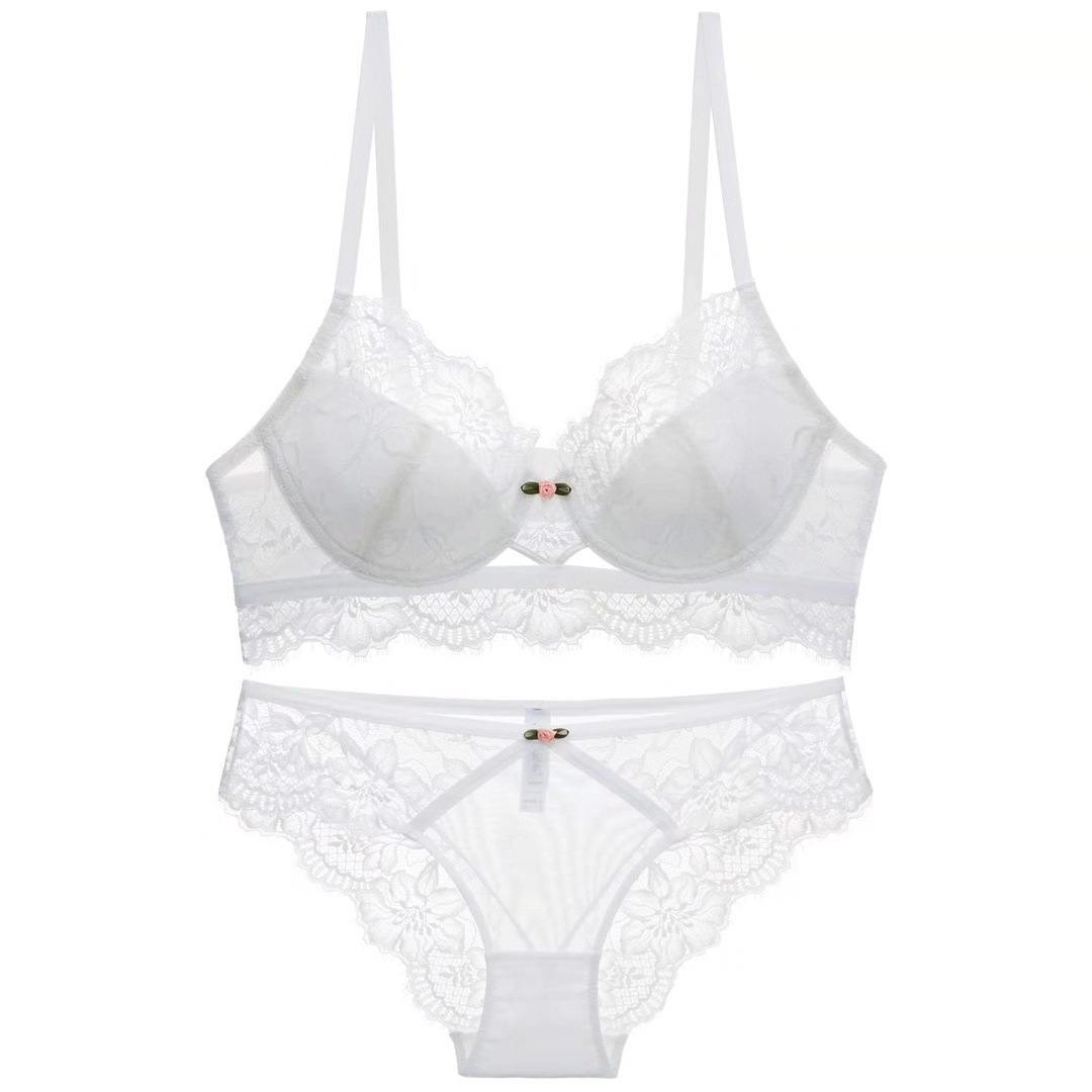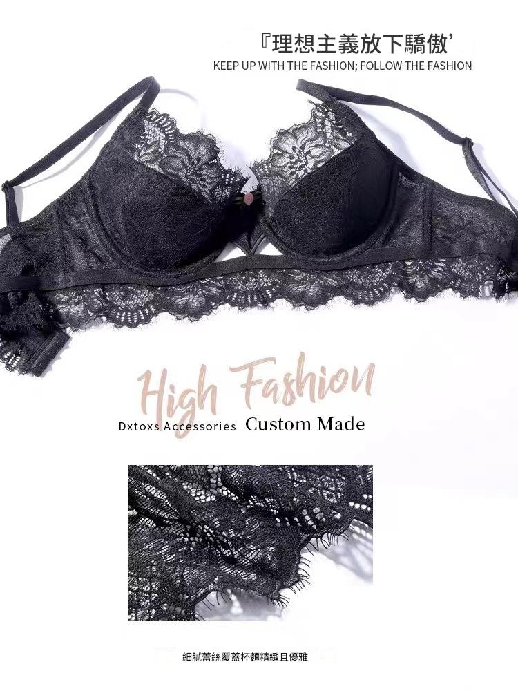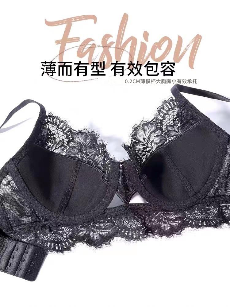WLMZ113100126 性感內衣女法式薄款蕾絲文胸大胸顯小防下垂大碼內衣套裝