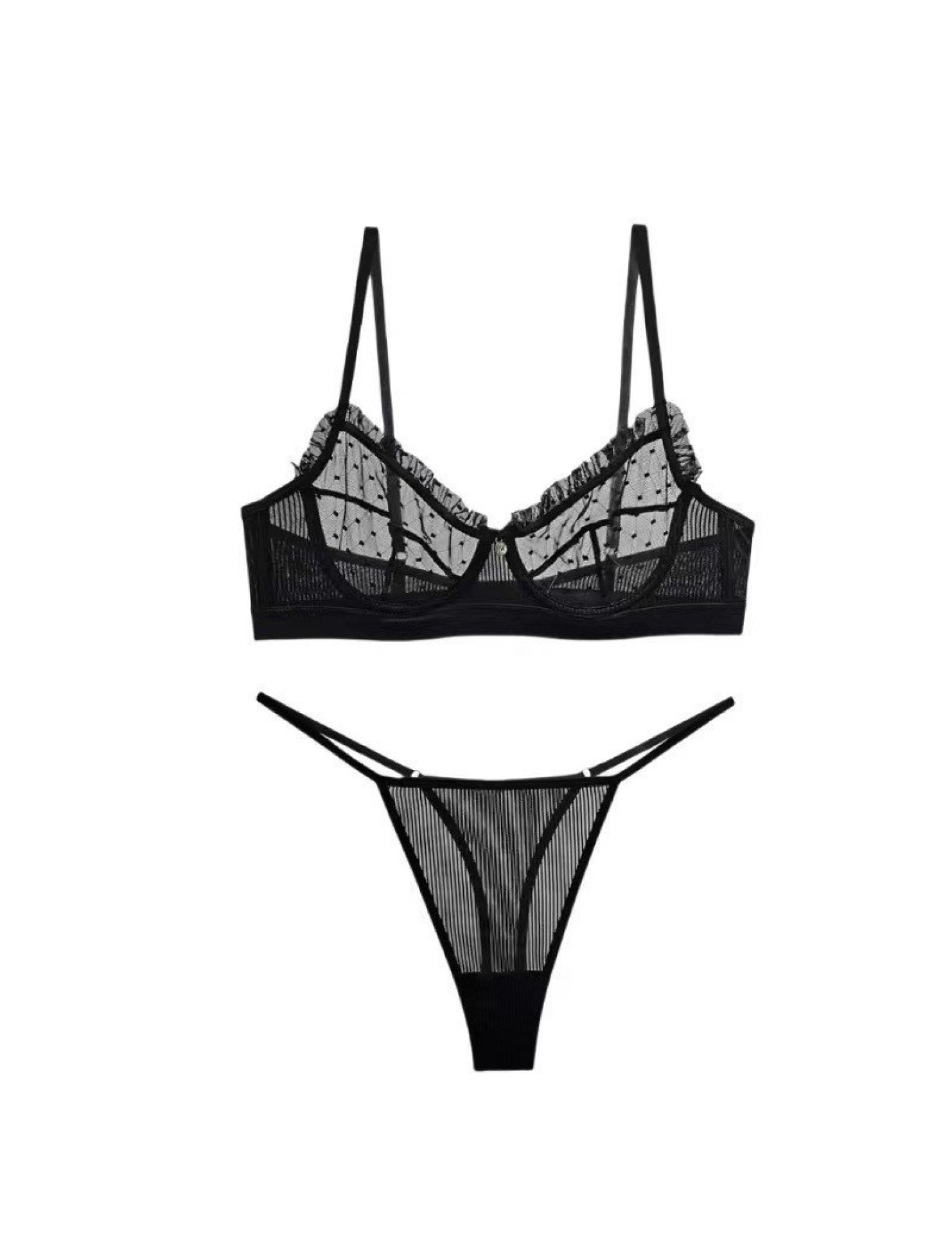 WLMZ113100138 法式性感內衣超薄透視大胸顯小大碼內衣情趣誘惑T褲蕾絲文胸套裝