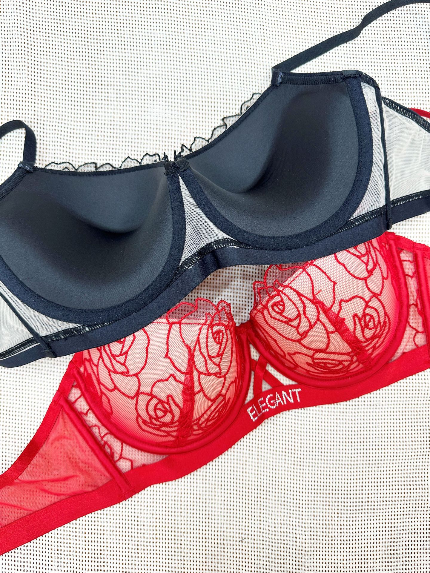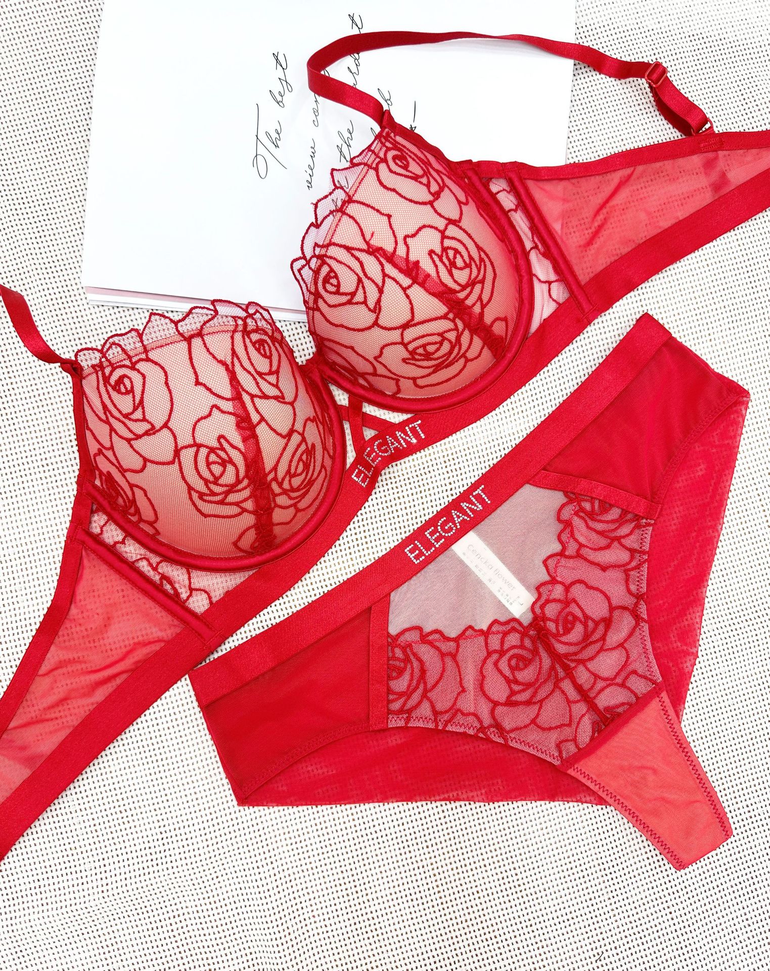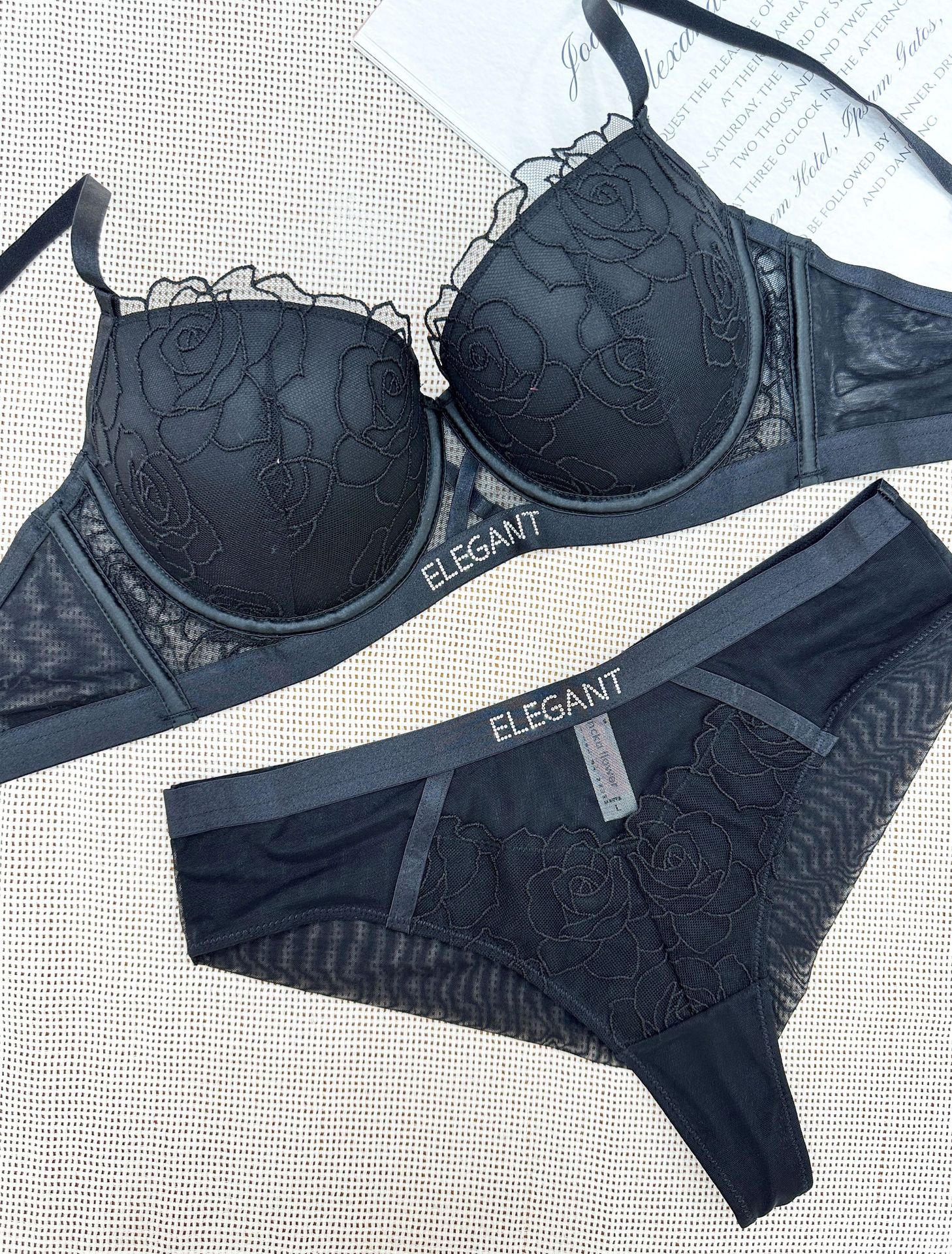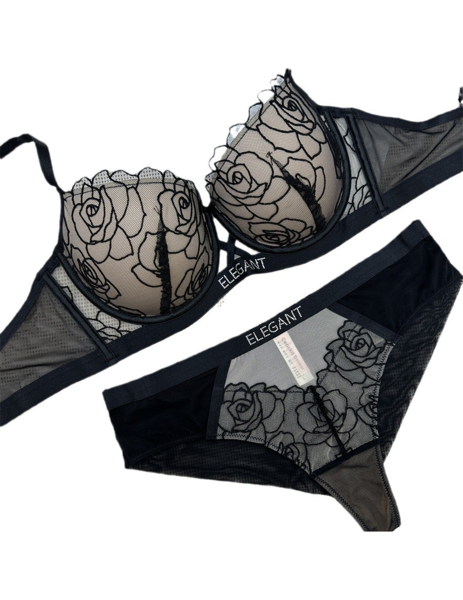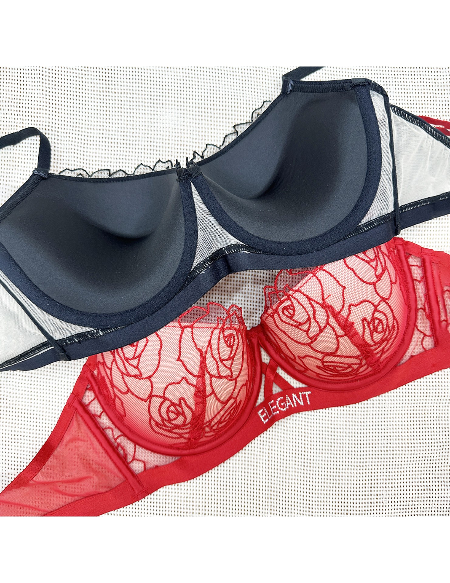 WLMZ113100148 法式性感內衣小胸顯大聚攏收副乳內衣玫瑰花刺繡蕾絲文胸套裝