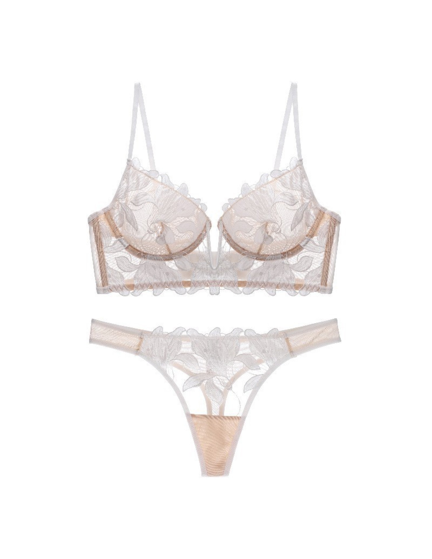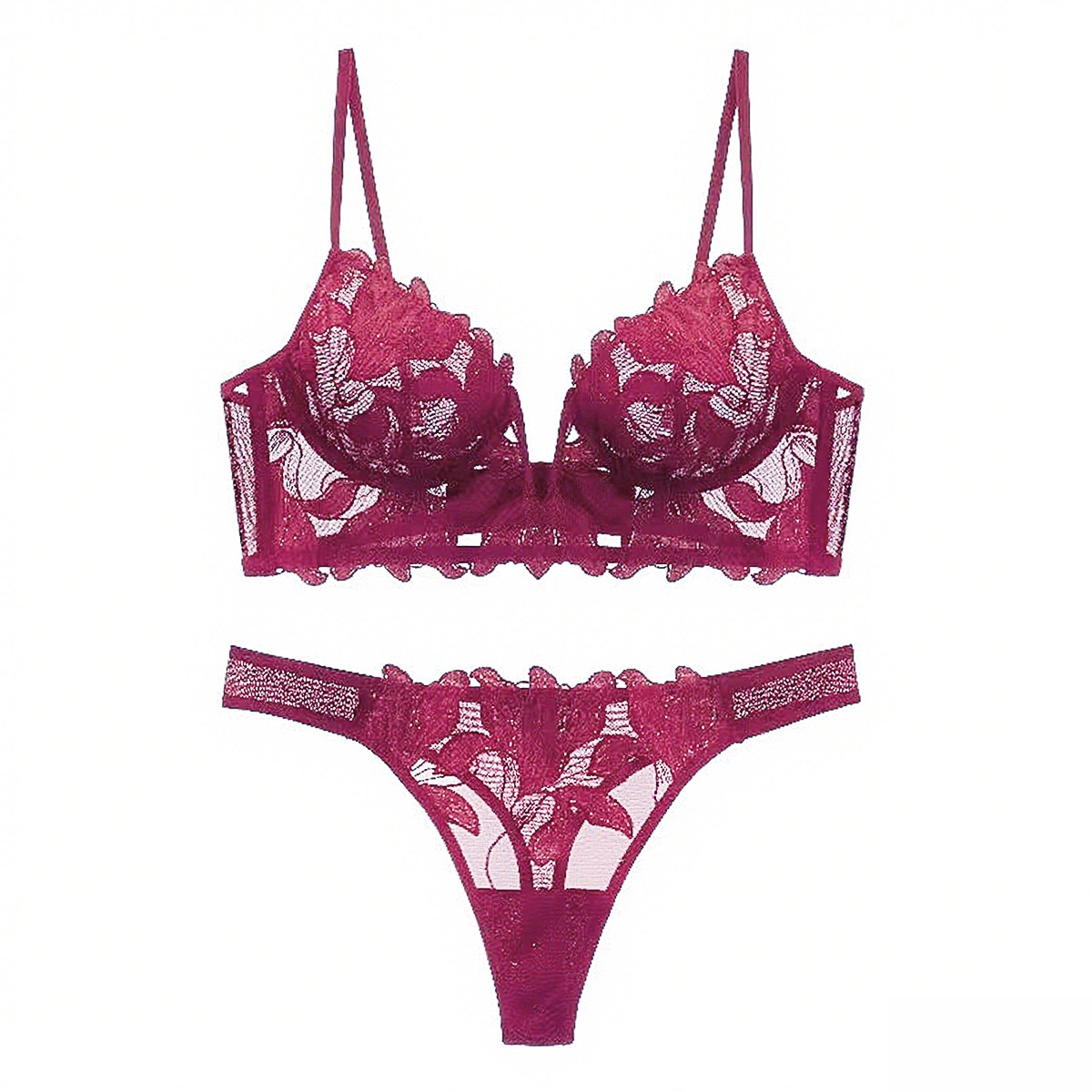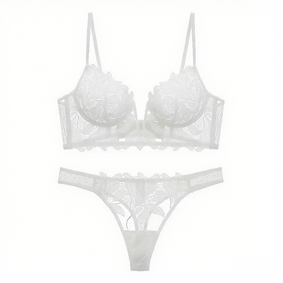 WLMZ113100149 爆款性感內衣大胸顯小大碼內衣法式超薄深V刺繡蕾絲文胸套裝