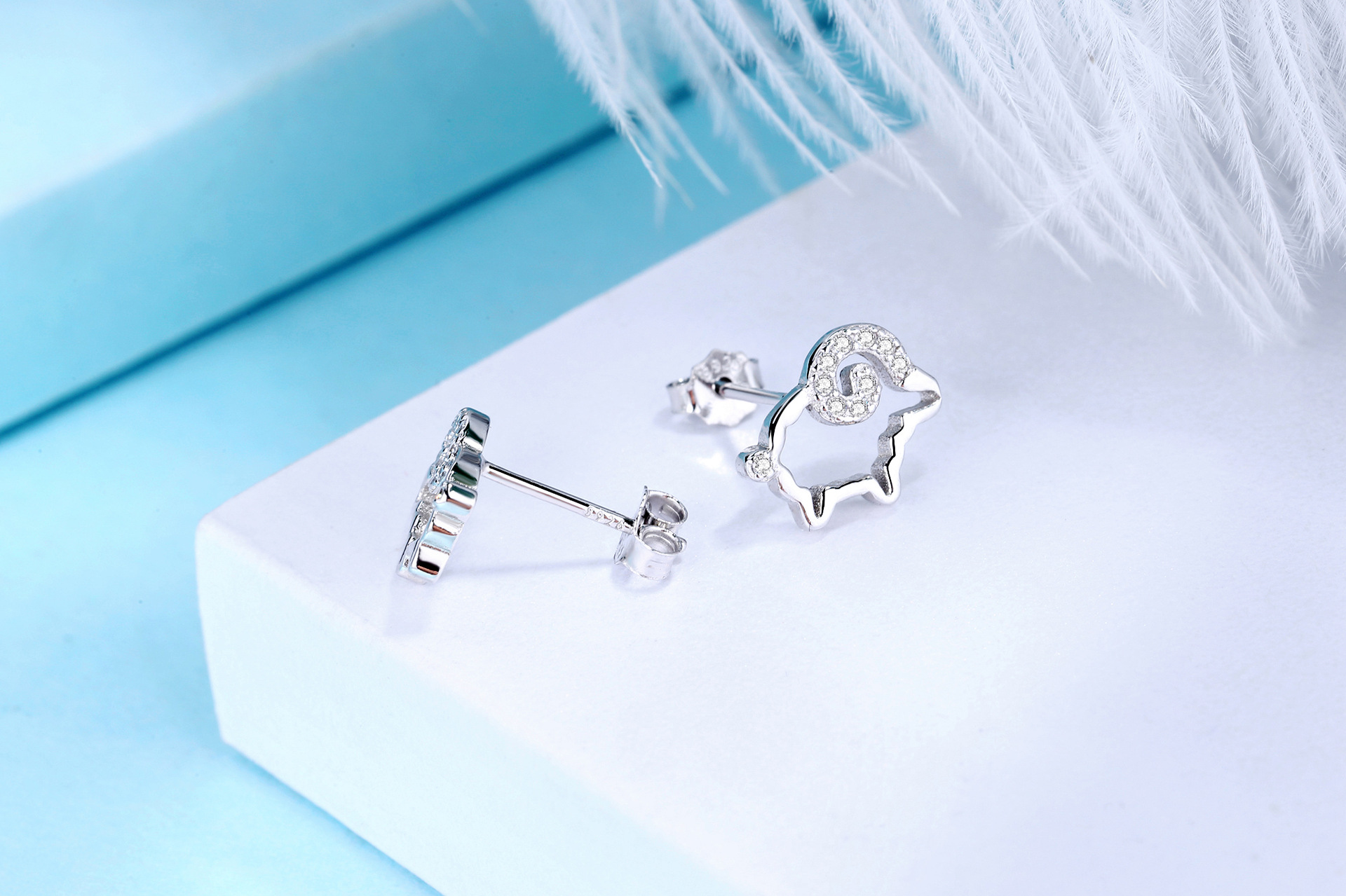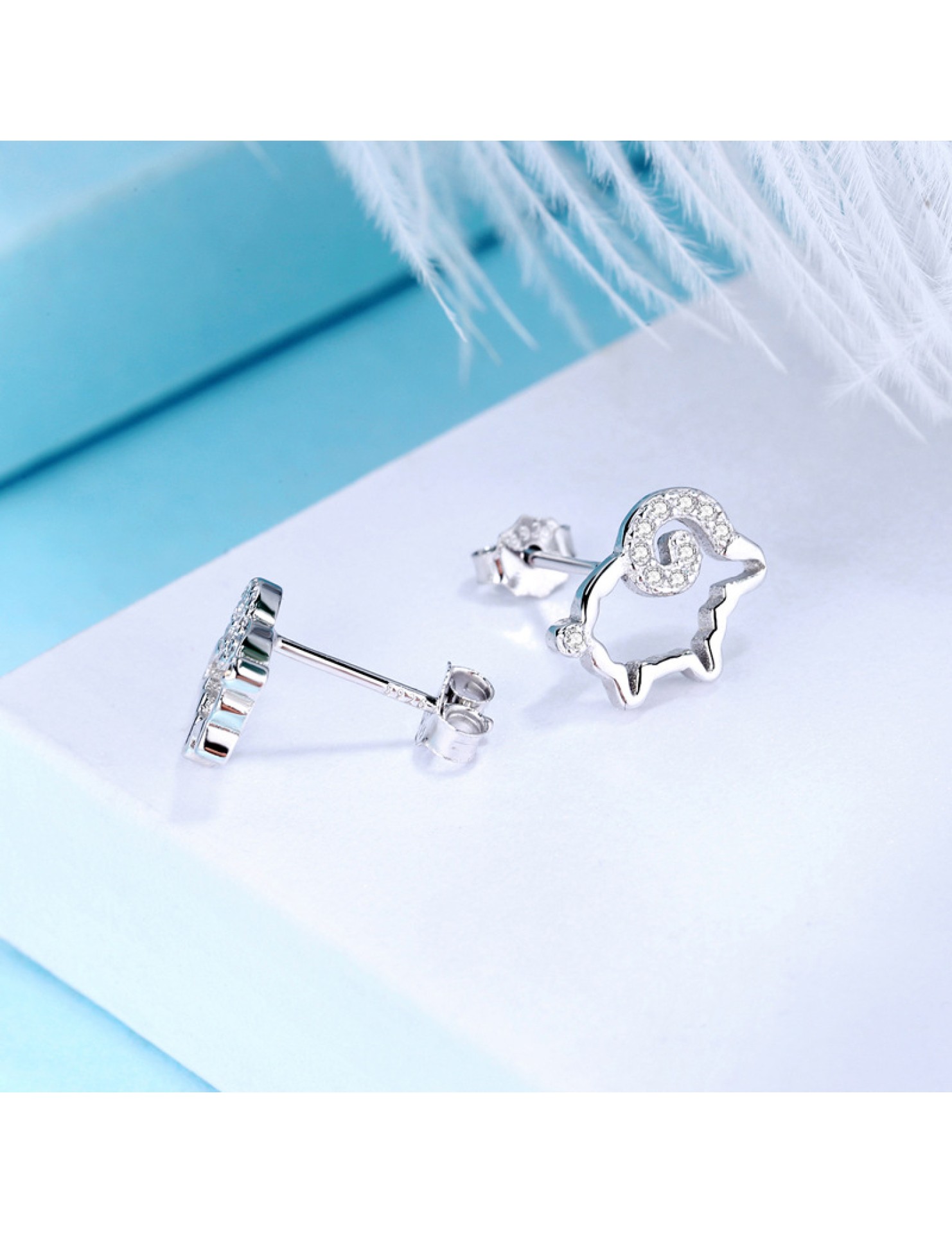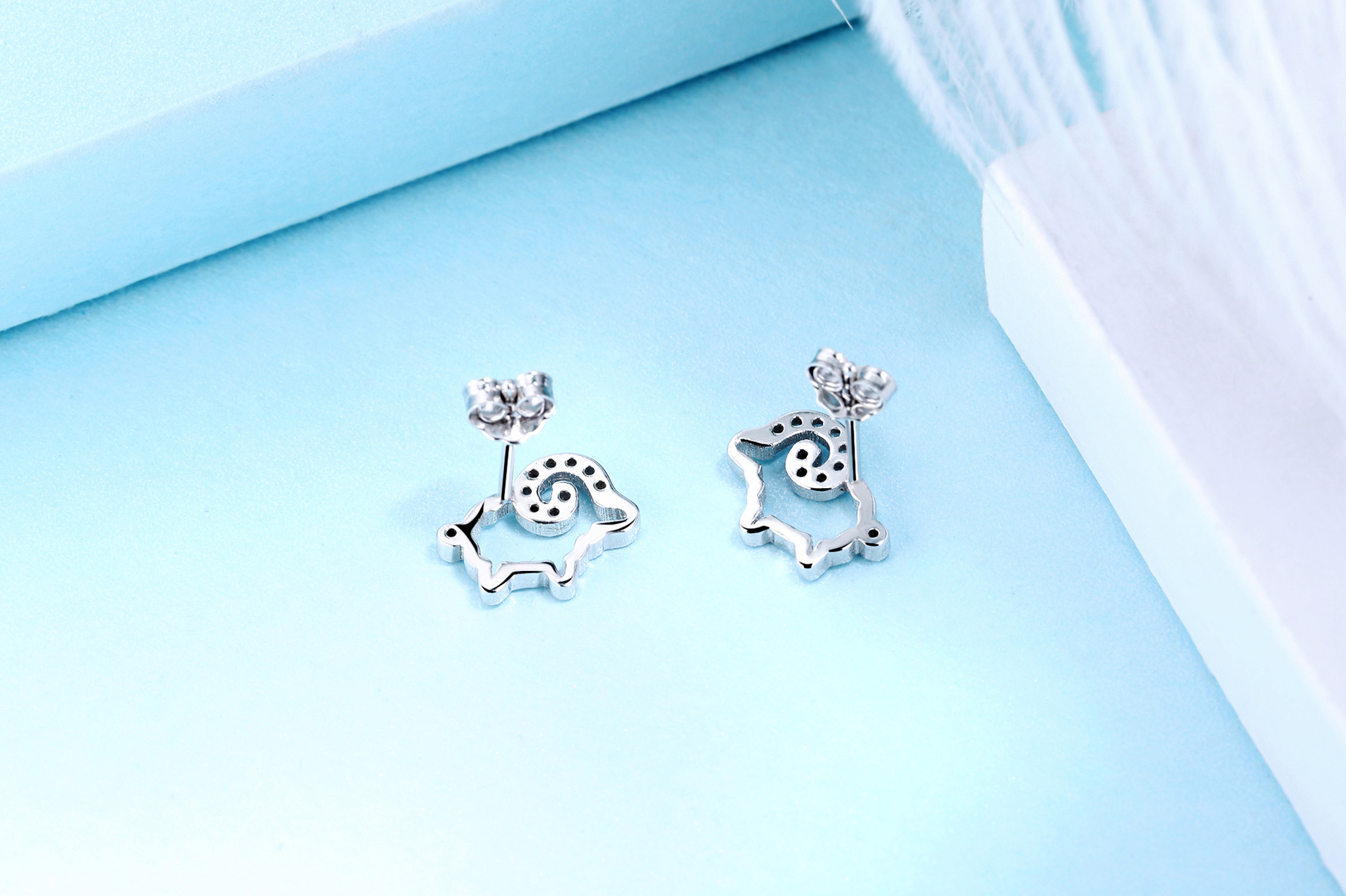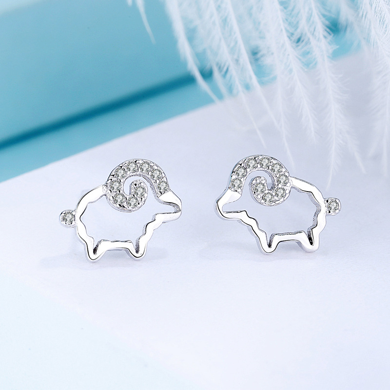 SATN122E100371 S925純銀小綿羊耳環女生ins可愛耳釘耳飾一周耳釘