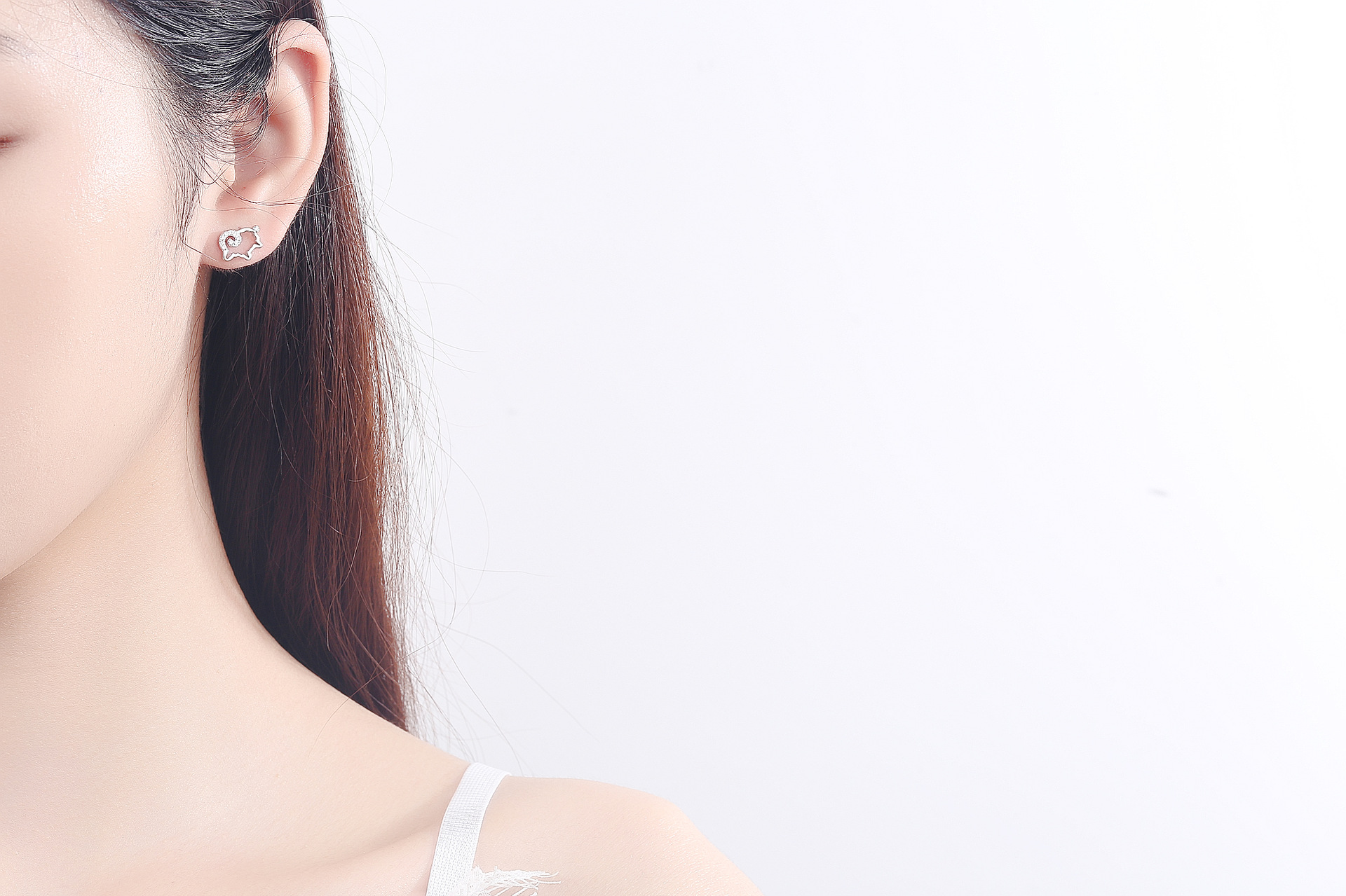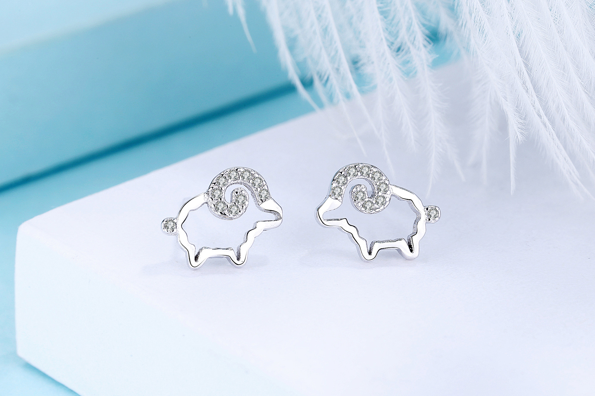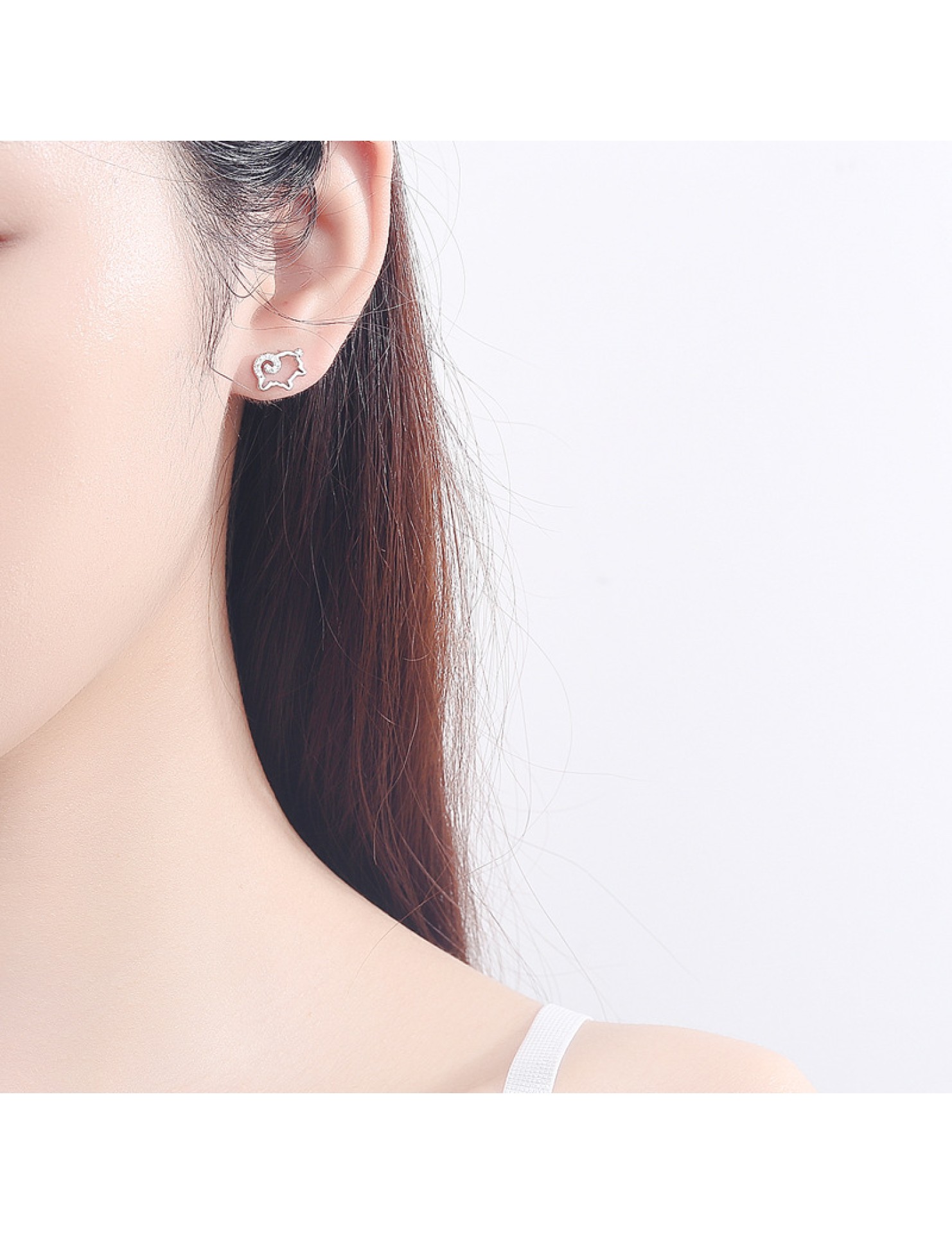 SATN122E100371 S925純銀小綿羊耳環女生ins可愛耳釘耳飾一周耳釘