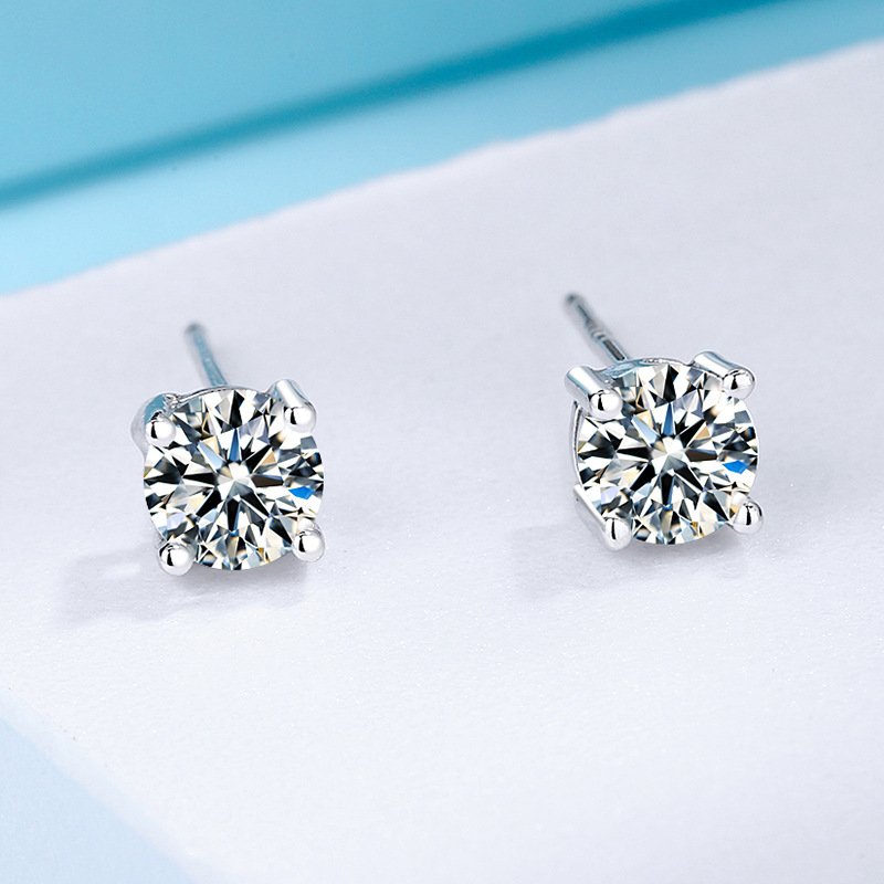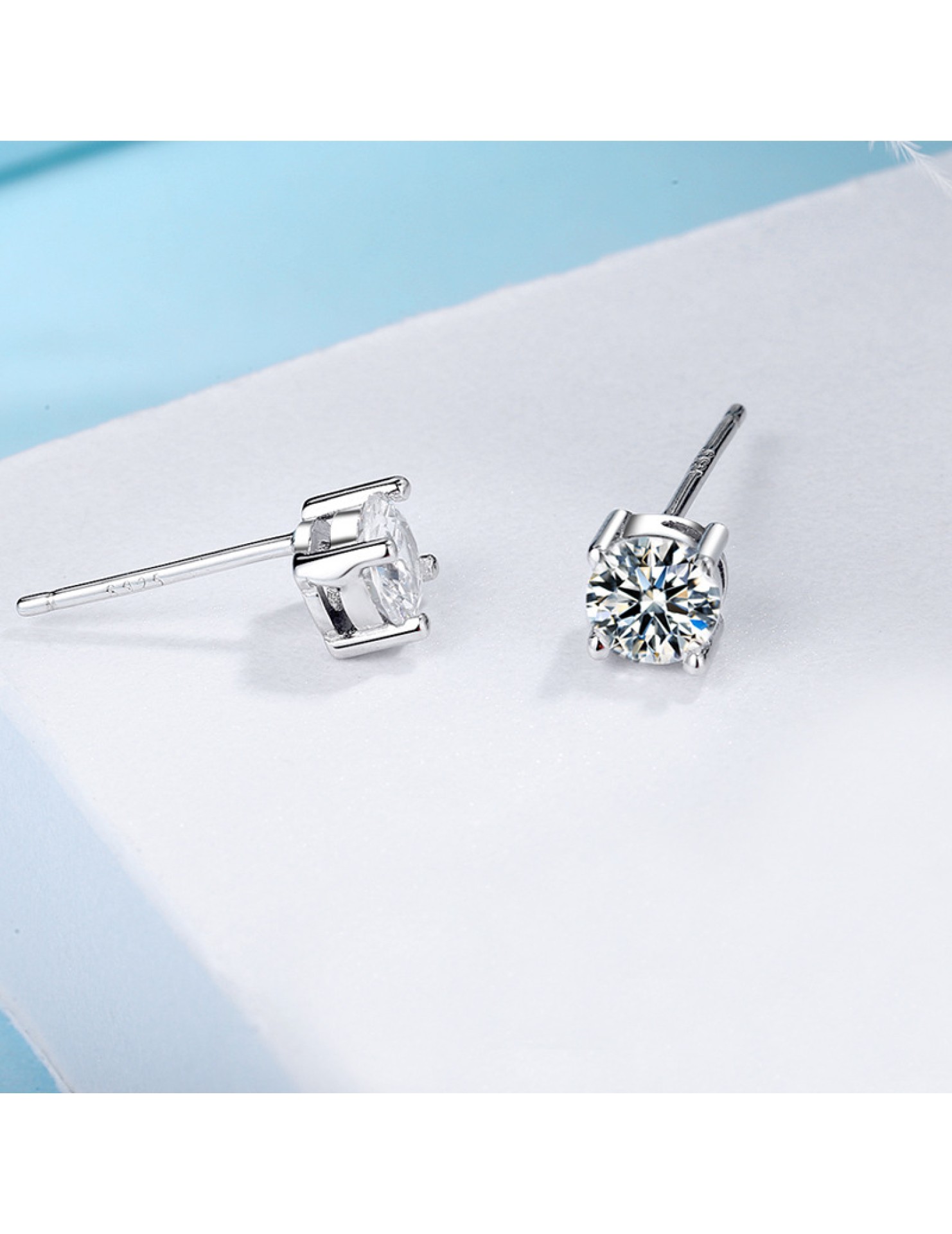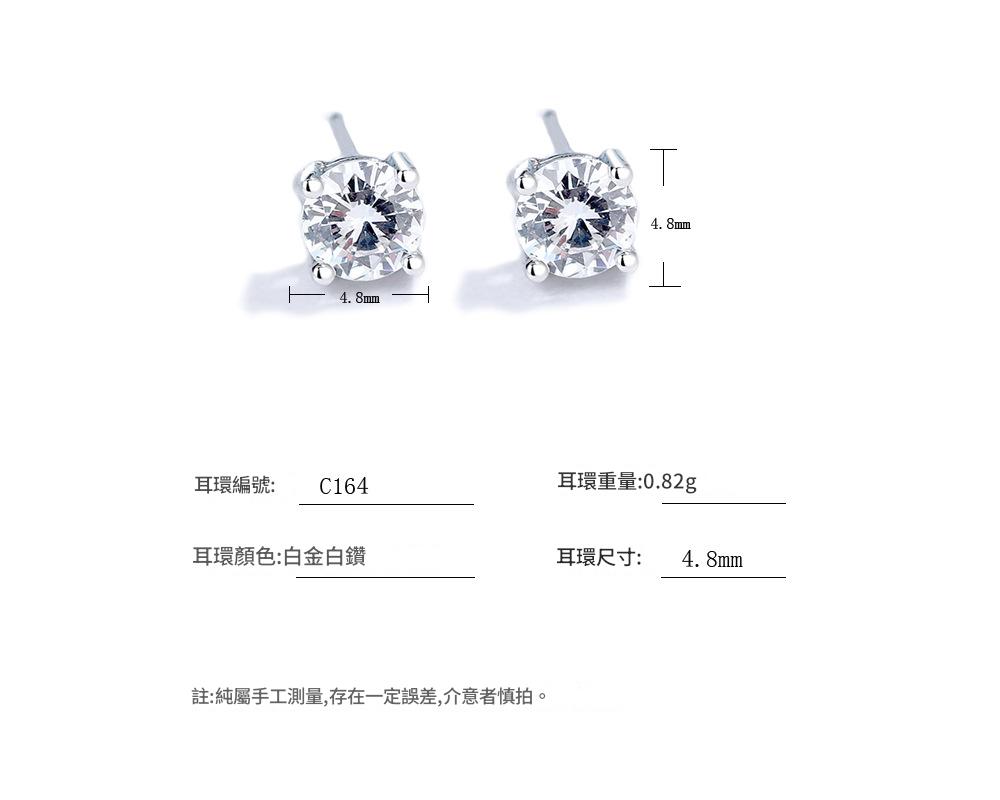SATN122E100373 S925純銀簡約時尚鑲鉆耳釘男女通用百搭耳飾創意個性潮小飾品耳環