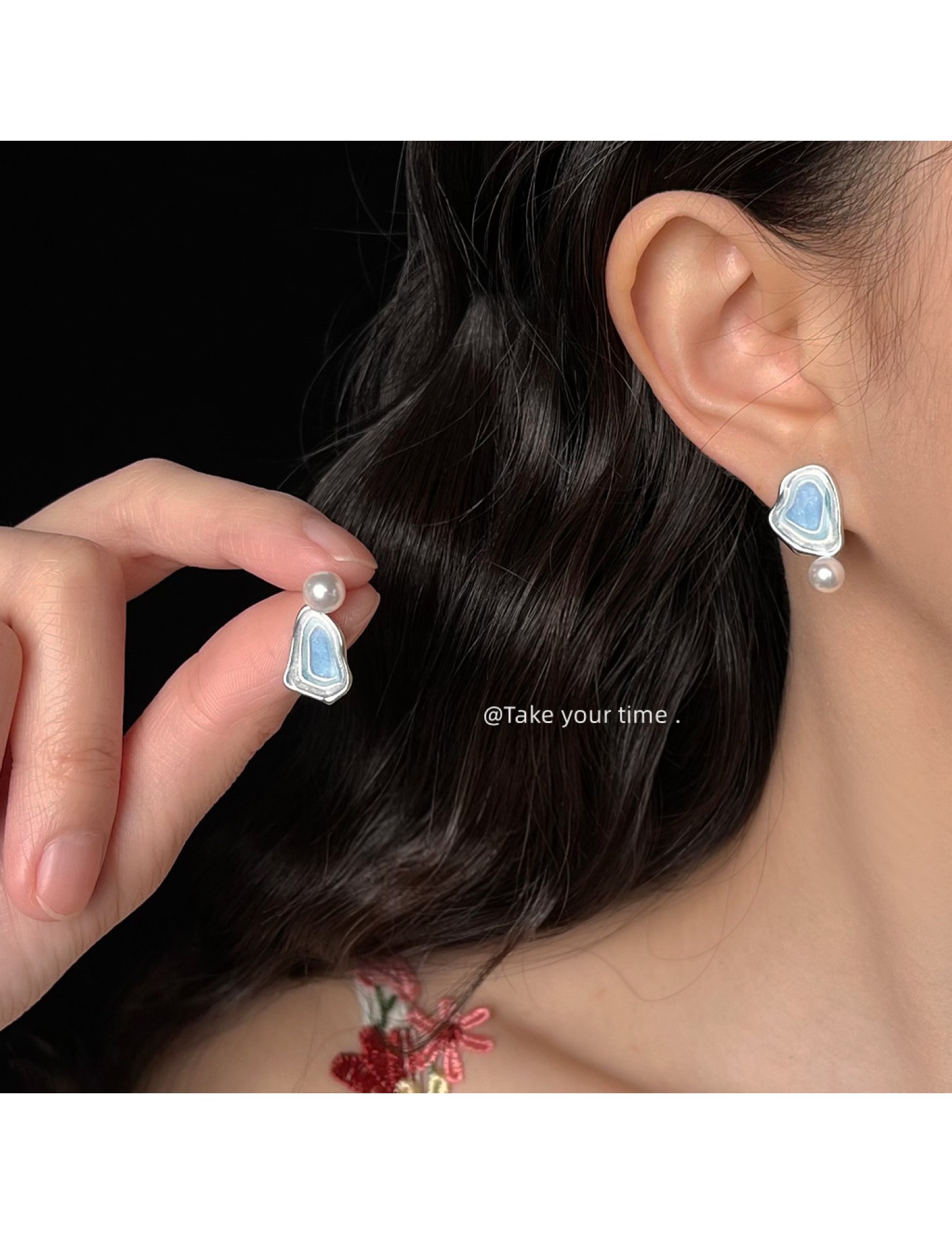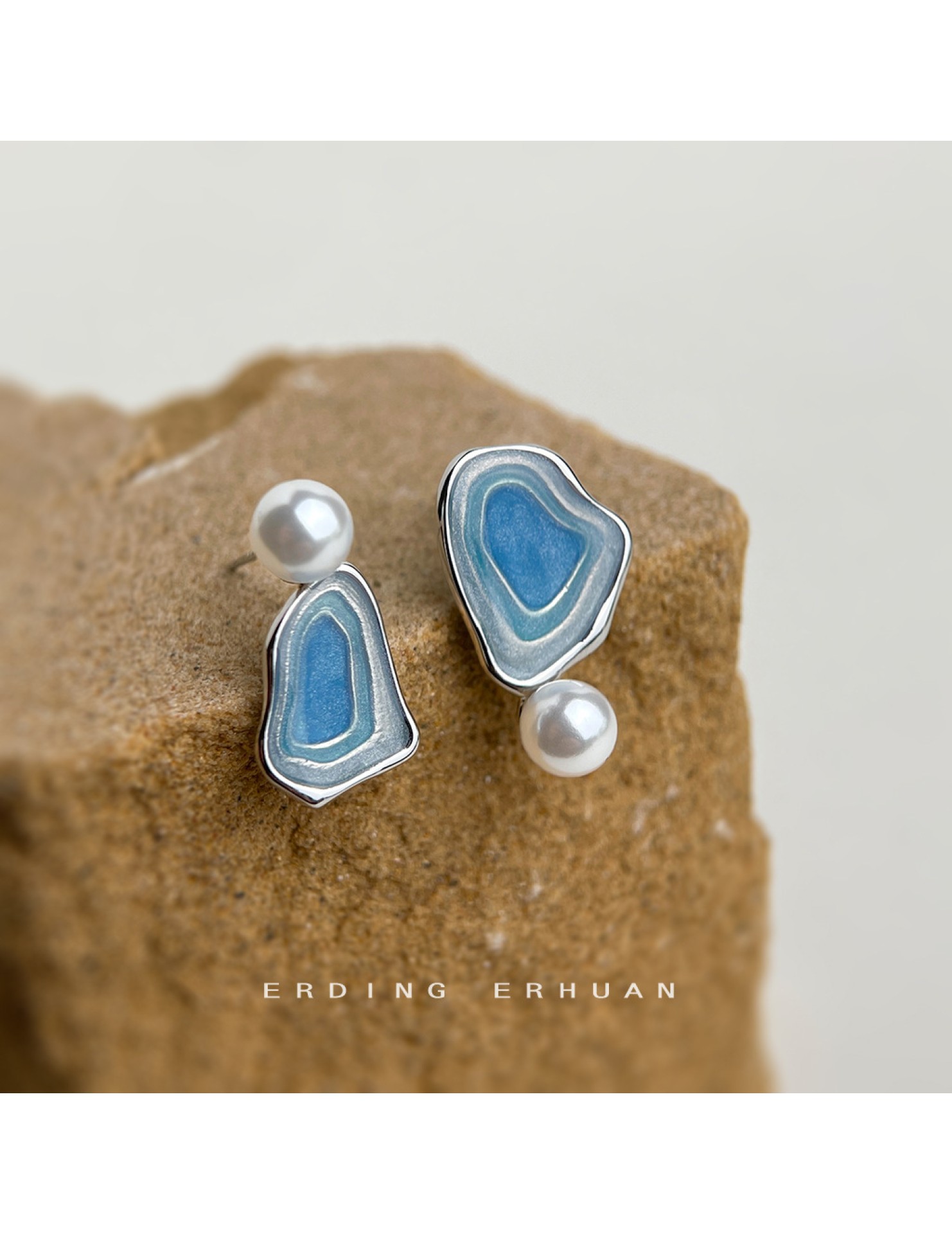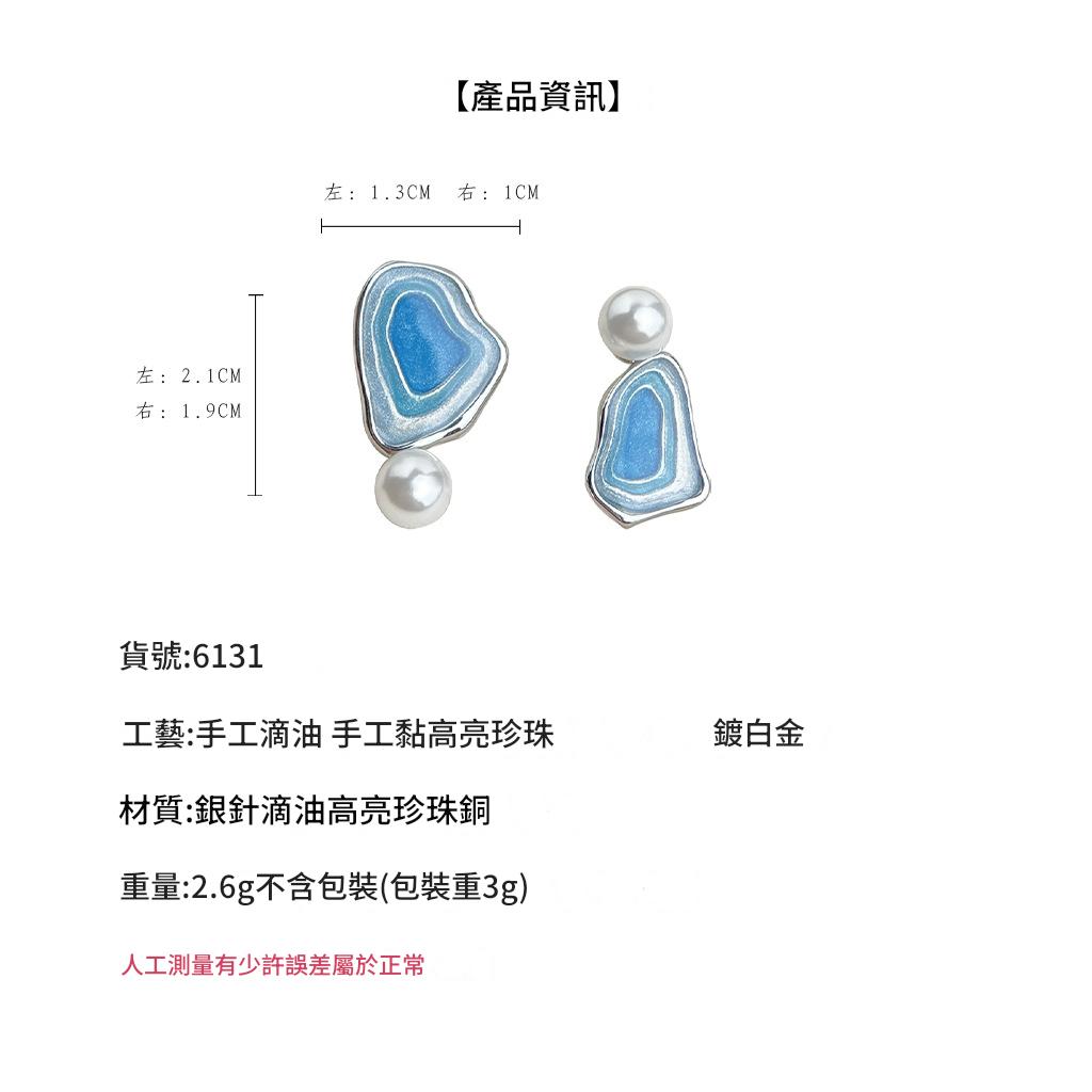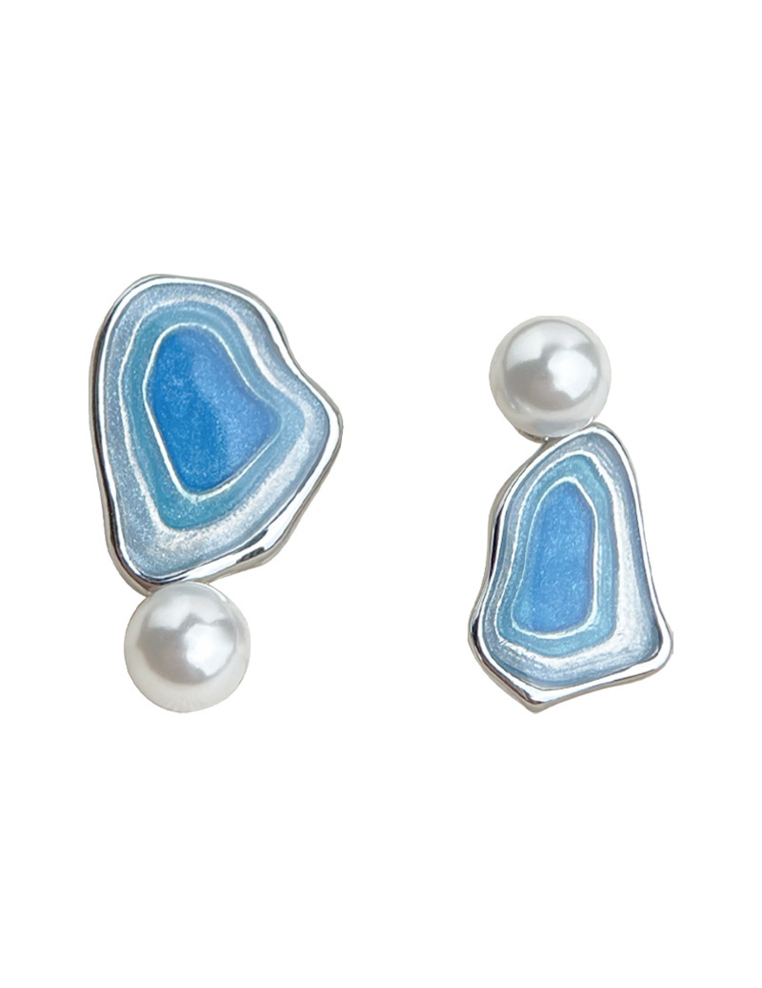 HELN124100016 【鹽湖系列】~設計師款925銀針琺瑯滴釉不對稱耳環女
