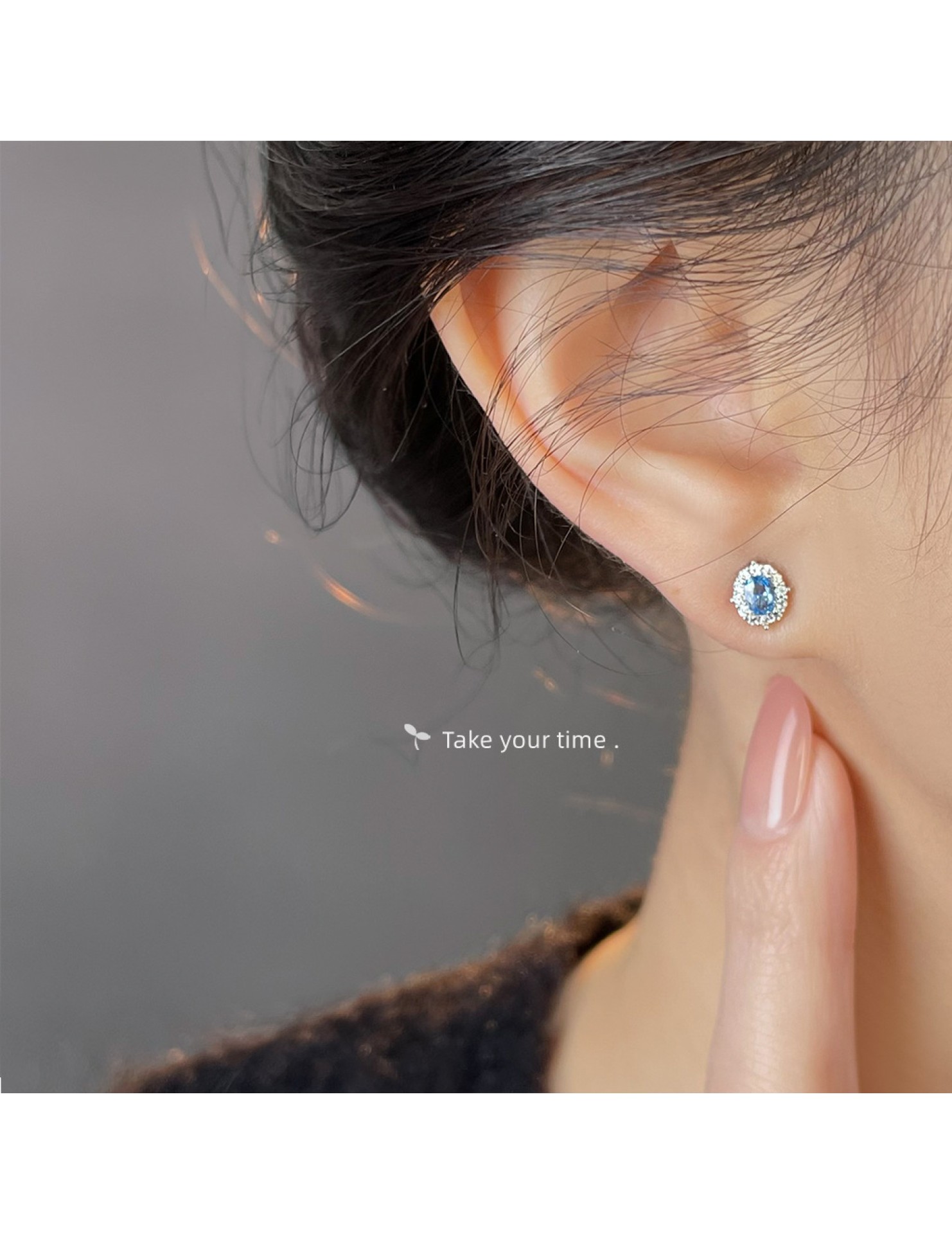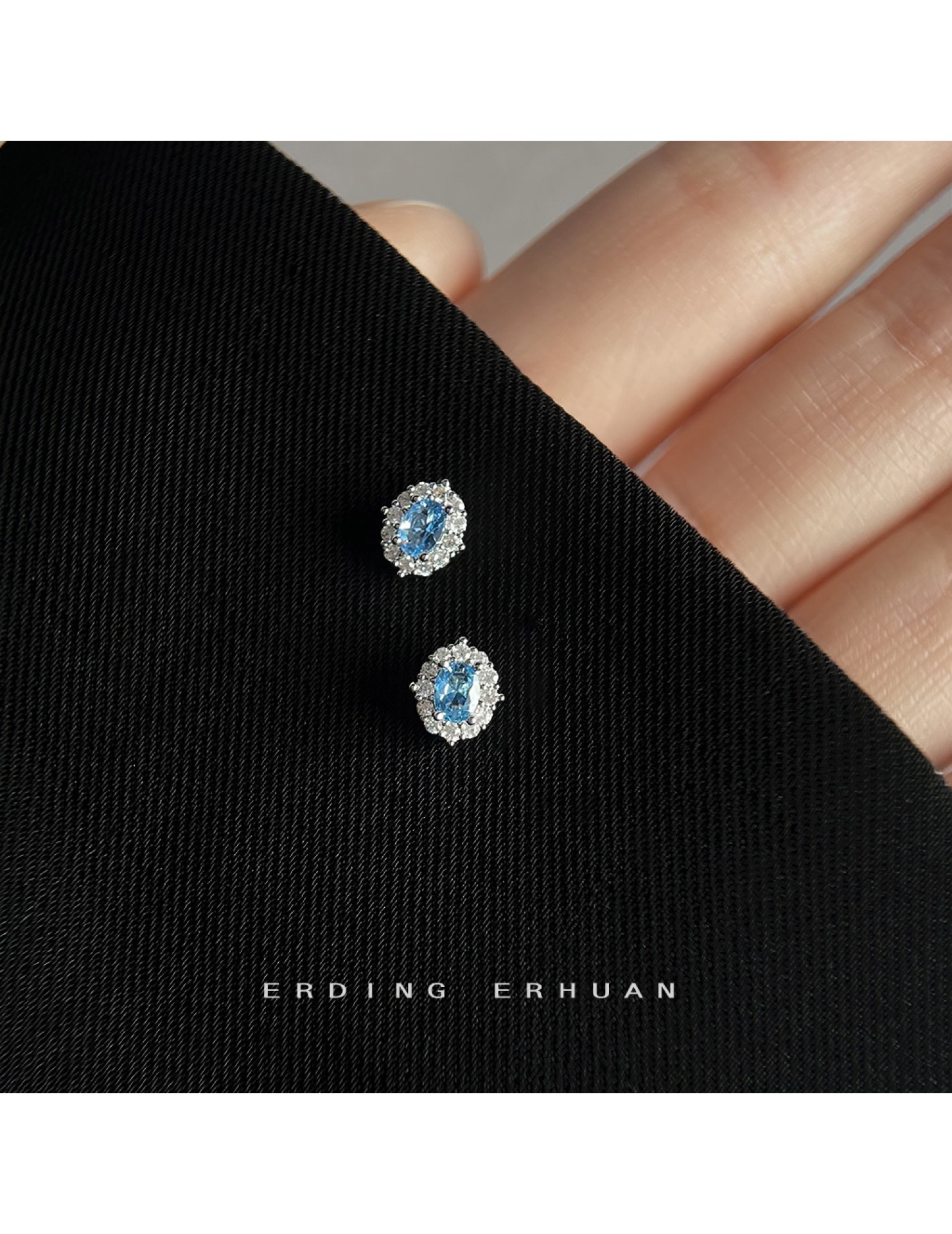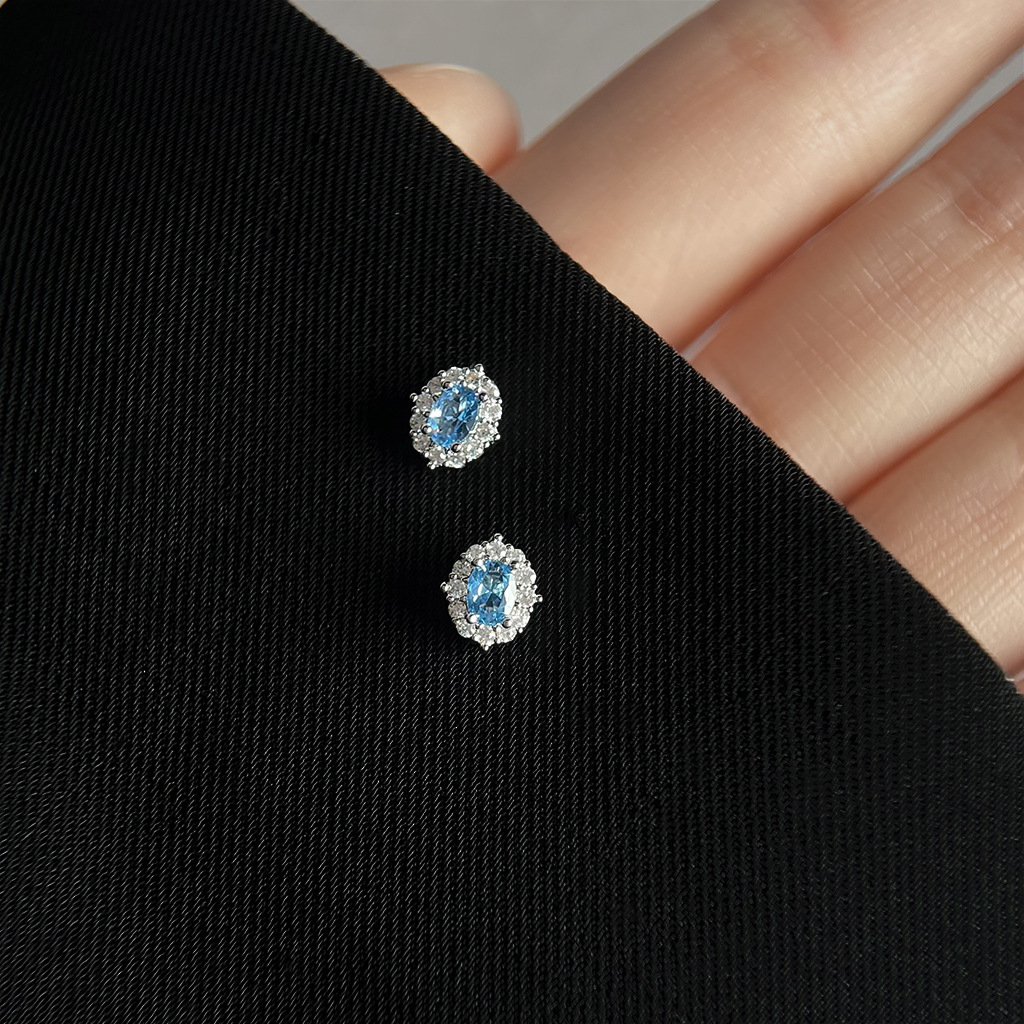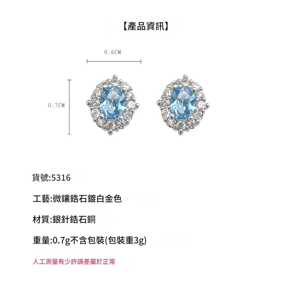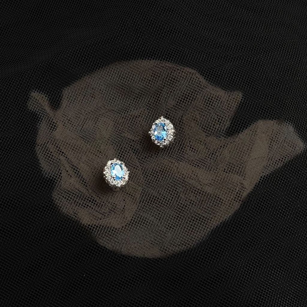 HELN124100019 海藍寶鋯石925銀針小巧簡約時尚通勤輕奢風百搭耳釘 氣質