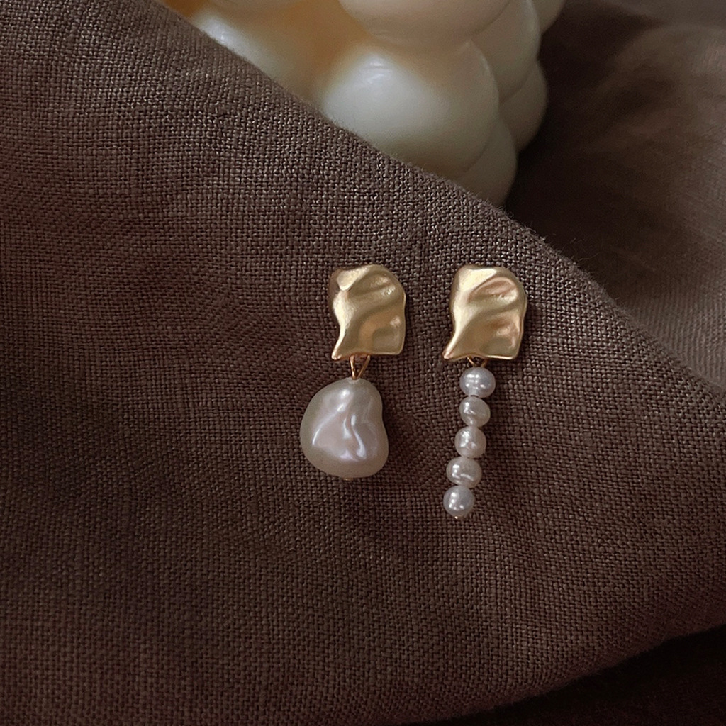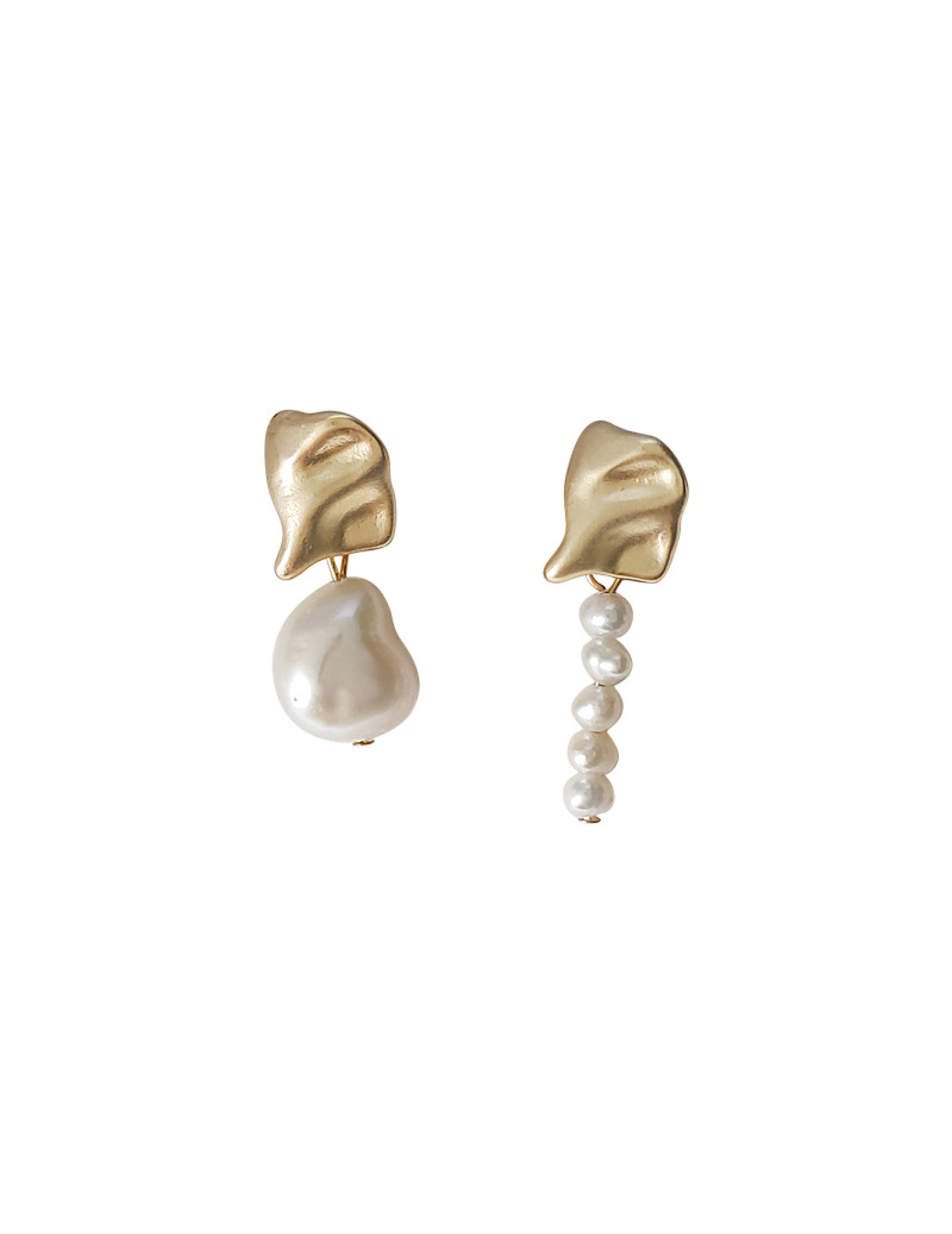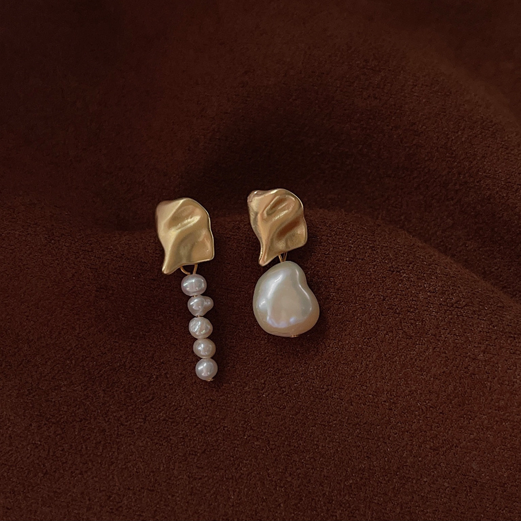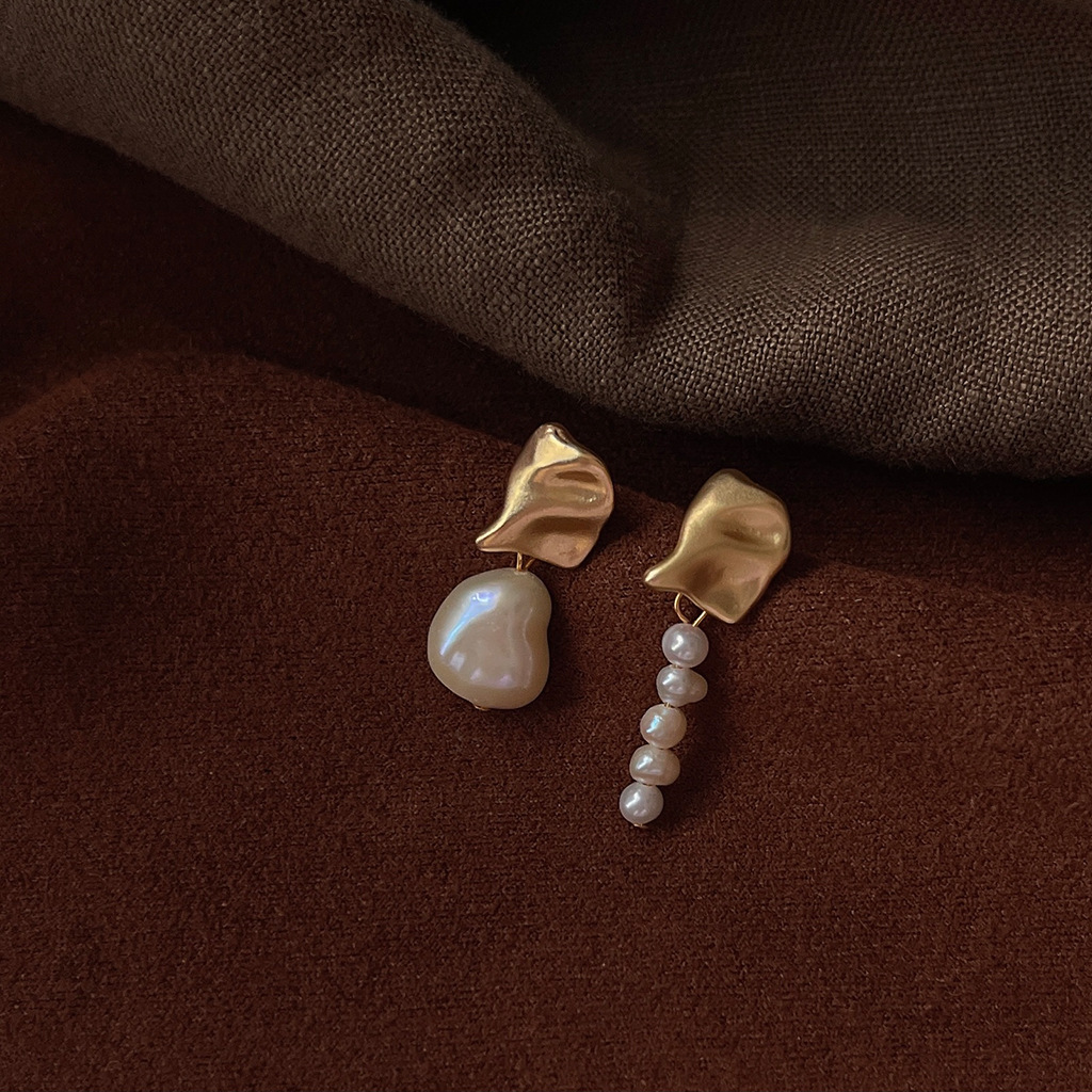HELN124100024 巴洛克異形淡水珍珠~手作設計感不對稱925銀針耳環法式高級感耳飾