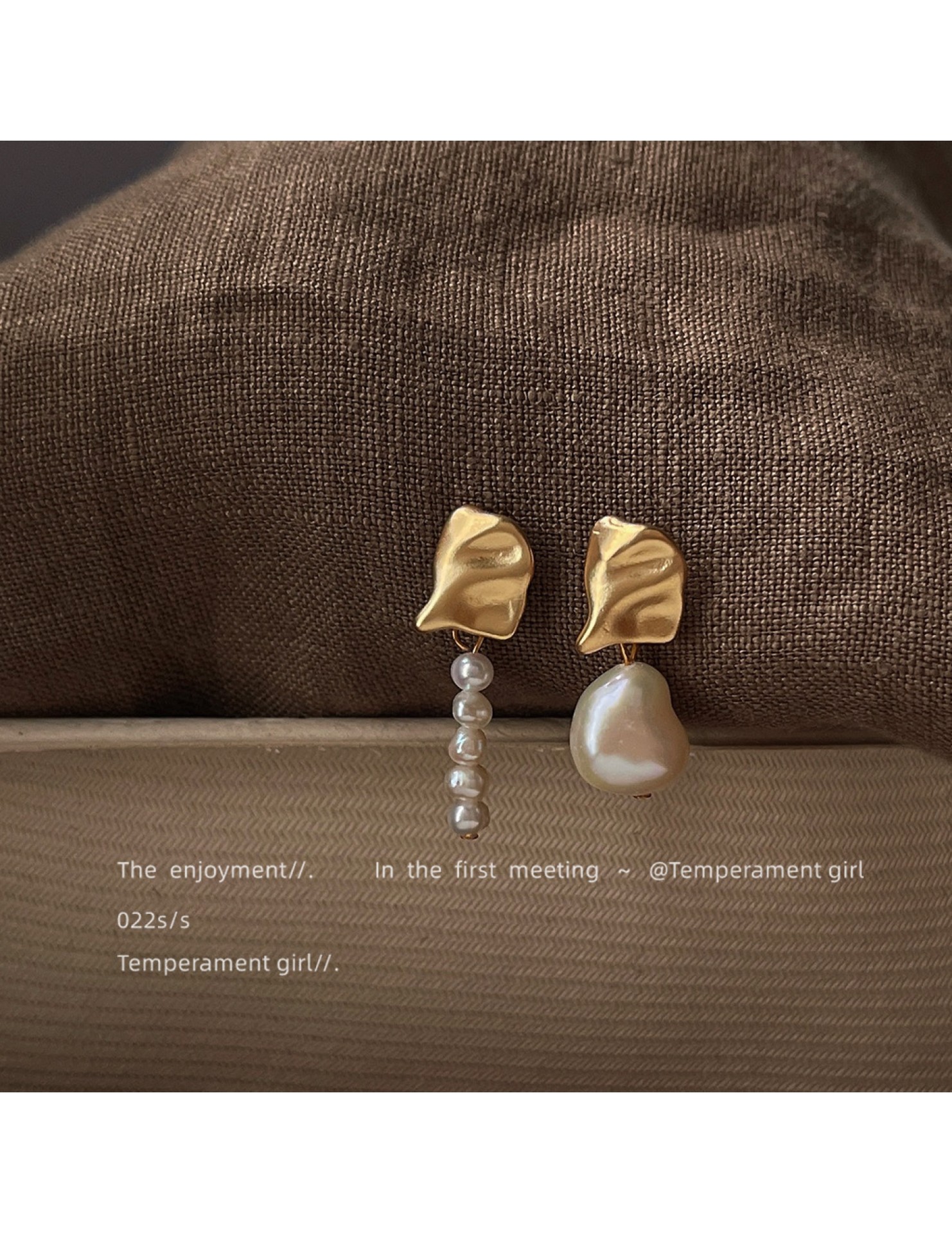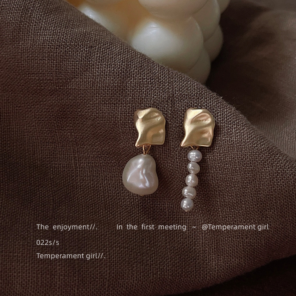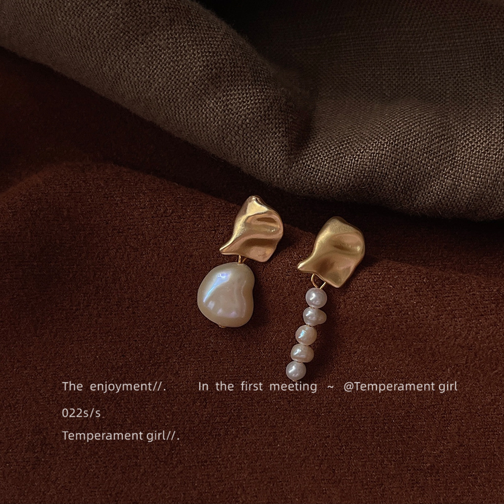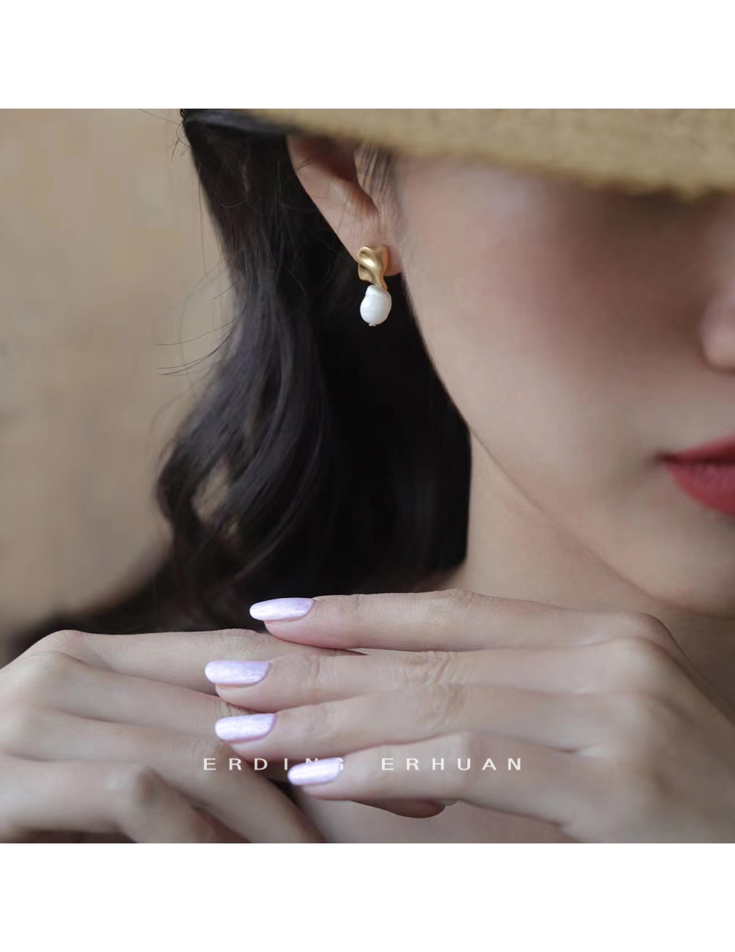 HELN124100024 巴洛克異形淡水珍珠~手作設計感不對稱925銀針耳環法式高級感耳飾