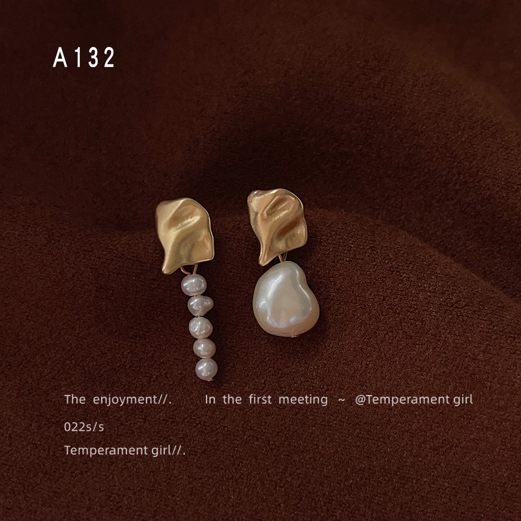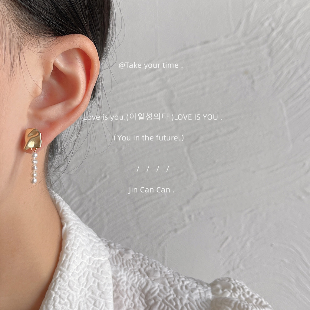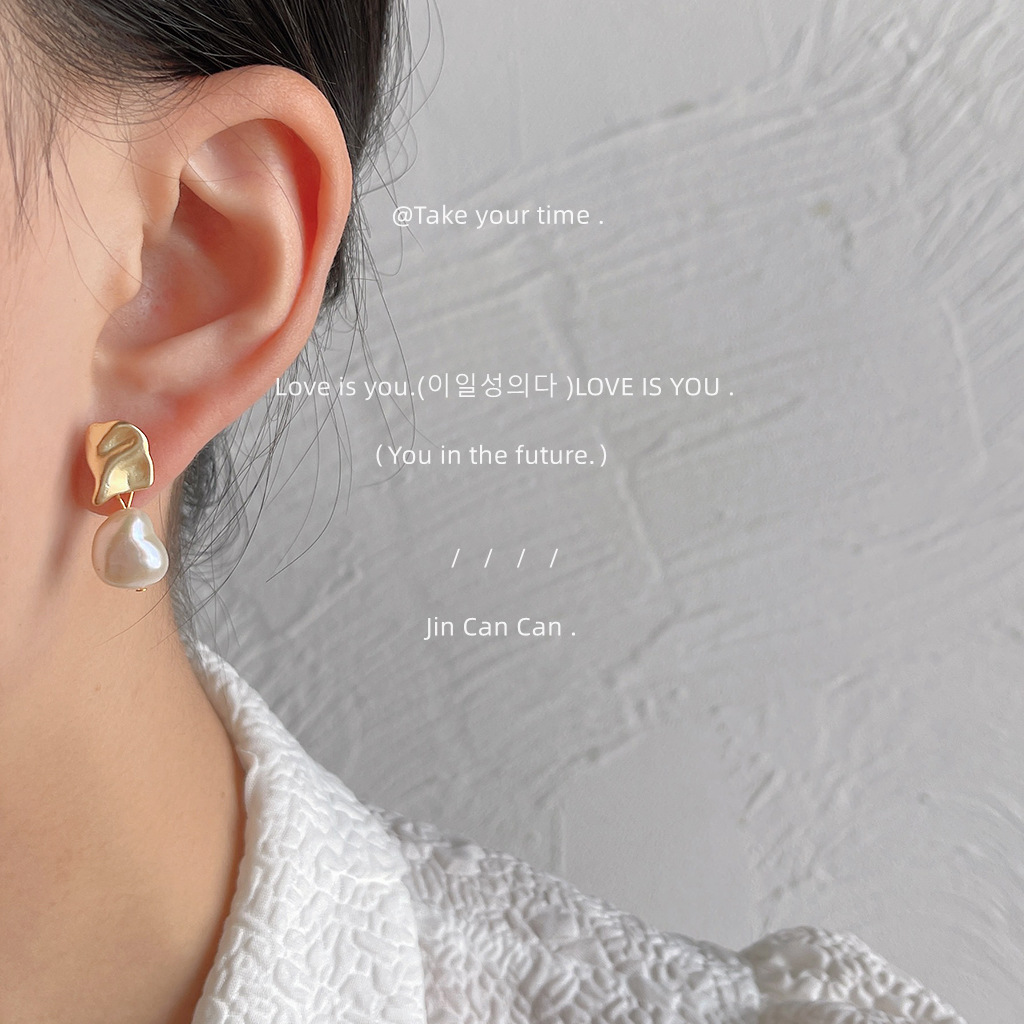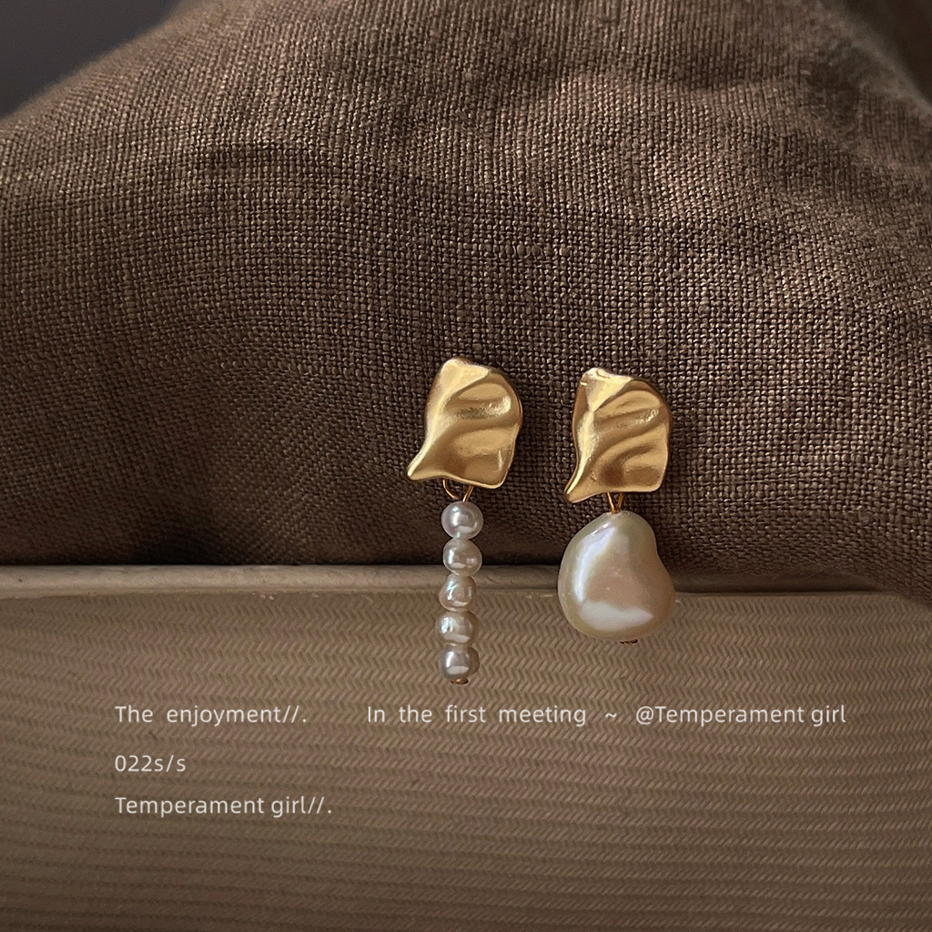 HELN124100024 巴洛克異形淡水珍珠~手作設計感不對稱925銀針耳環法式高級感耳飾