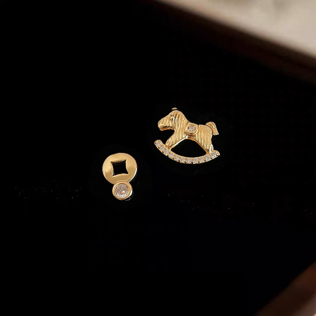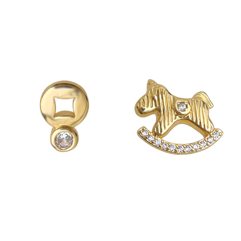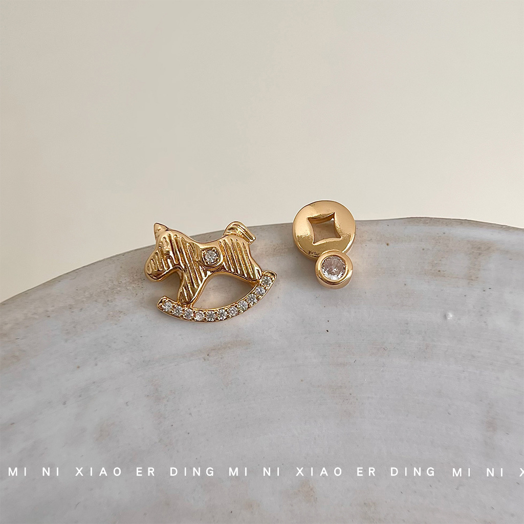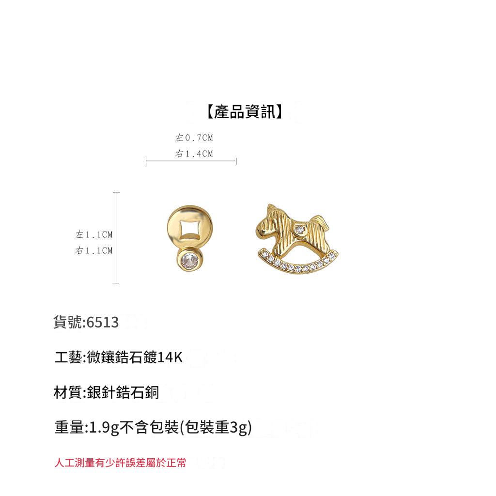 HELN124100025 馬上有錢!微鑲鋯石不對稱AB款925銀針鍍14K輕奢風耳釘女