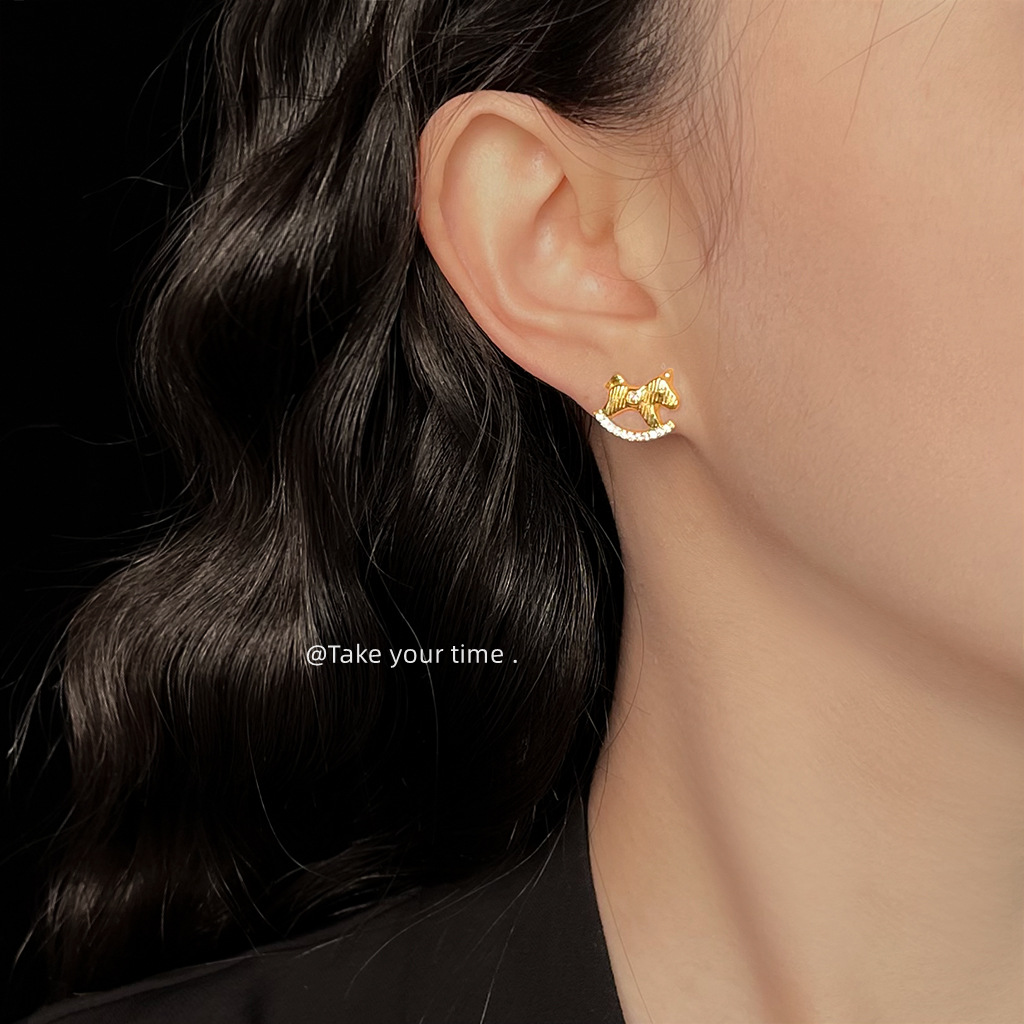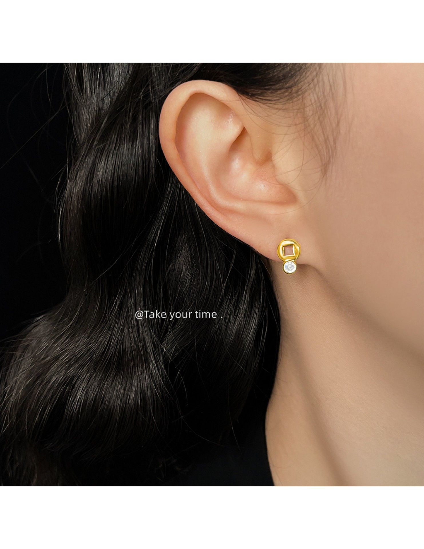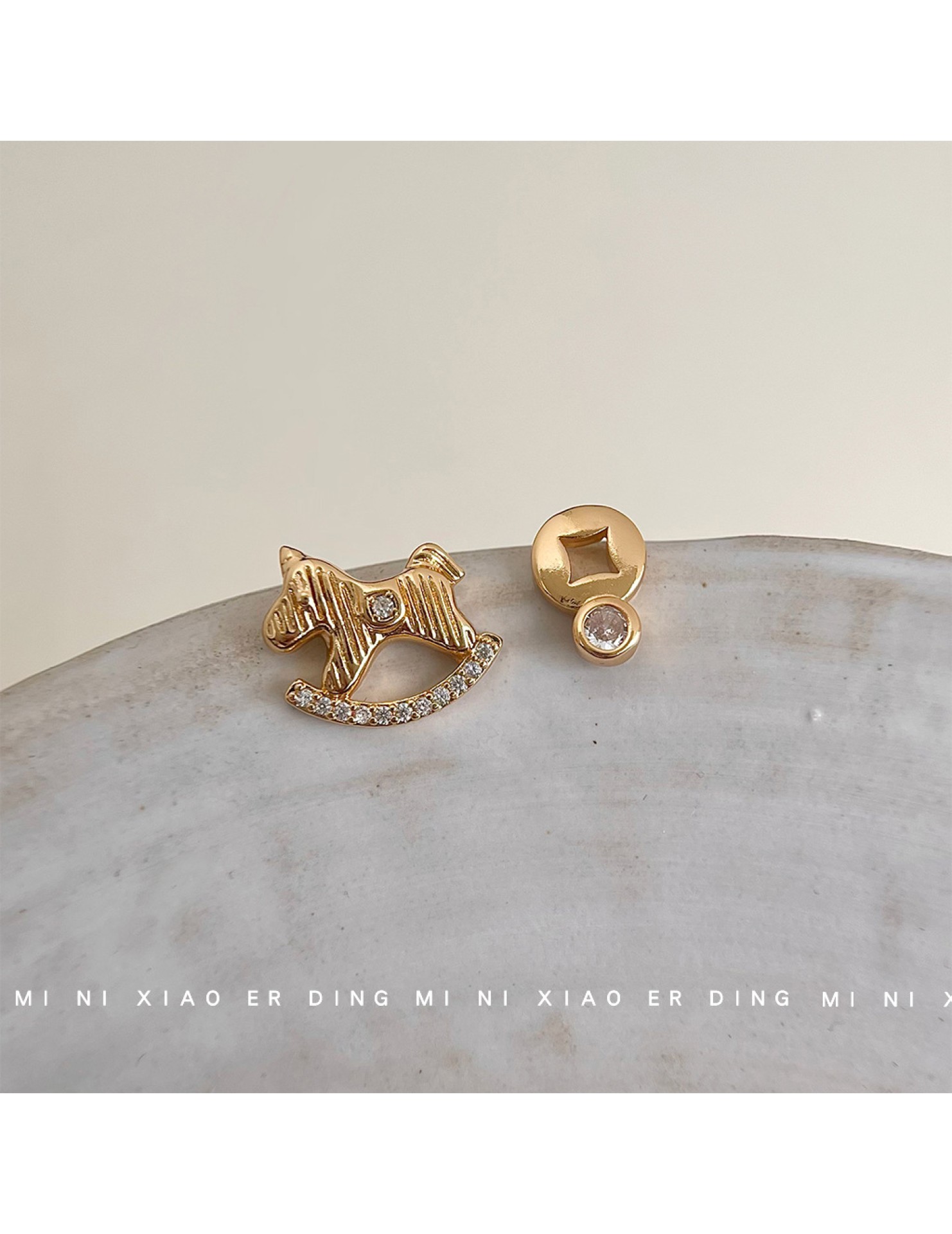 HELN124100025 馬上有錢!微鑲鋯石不對稱AB款925銀針鍍14K輕奢風耳釘女