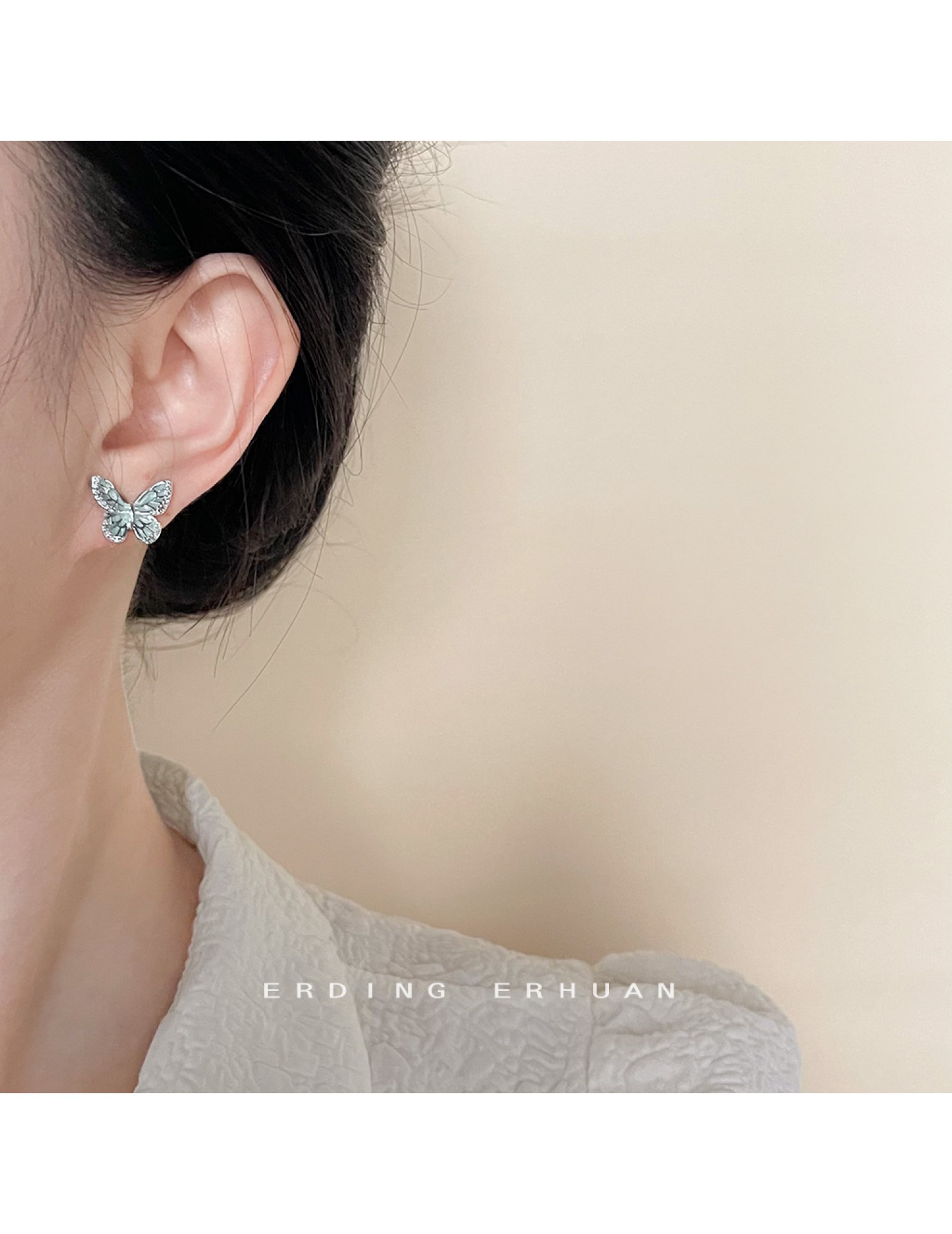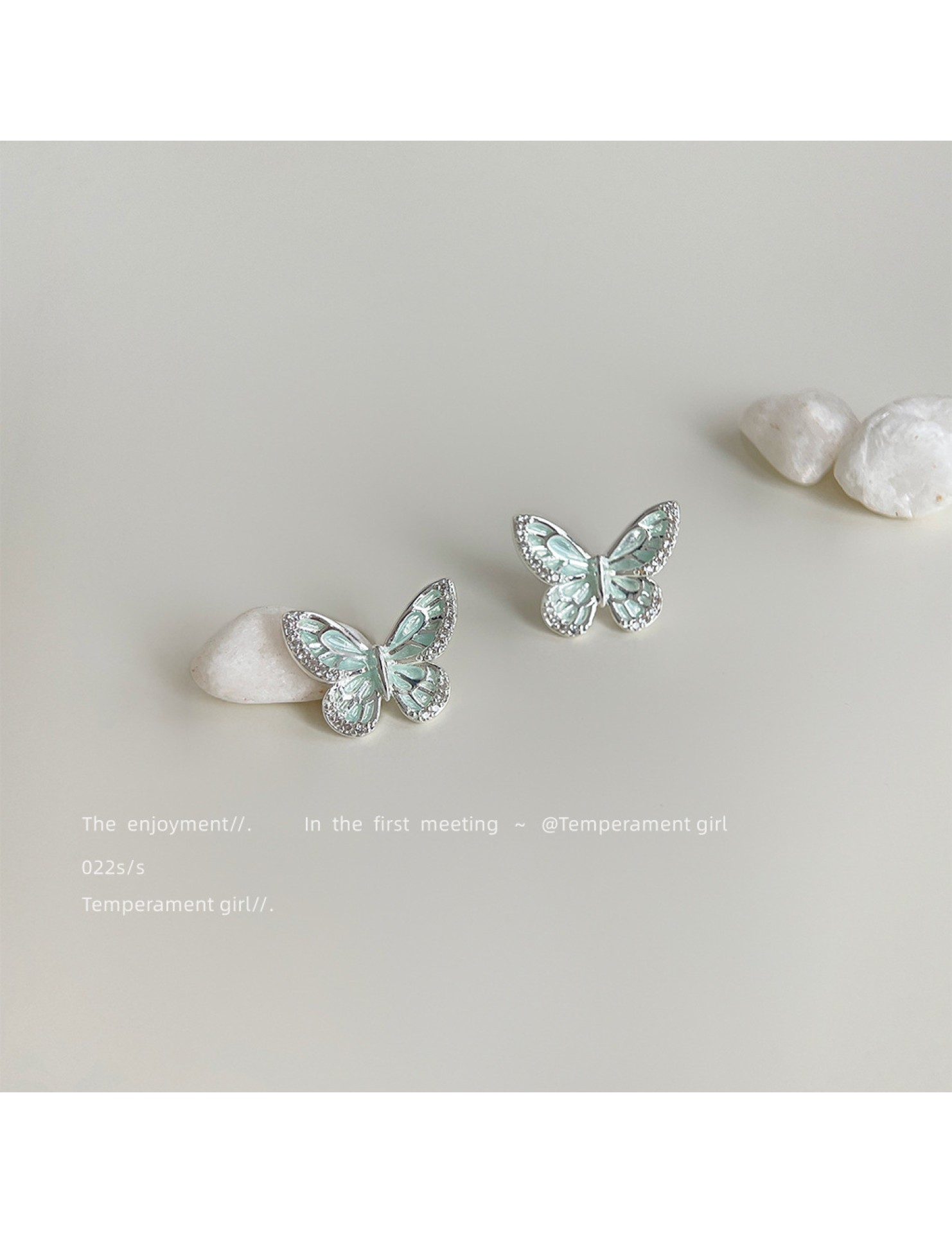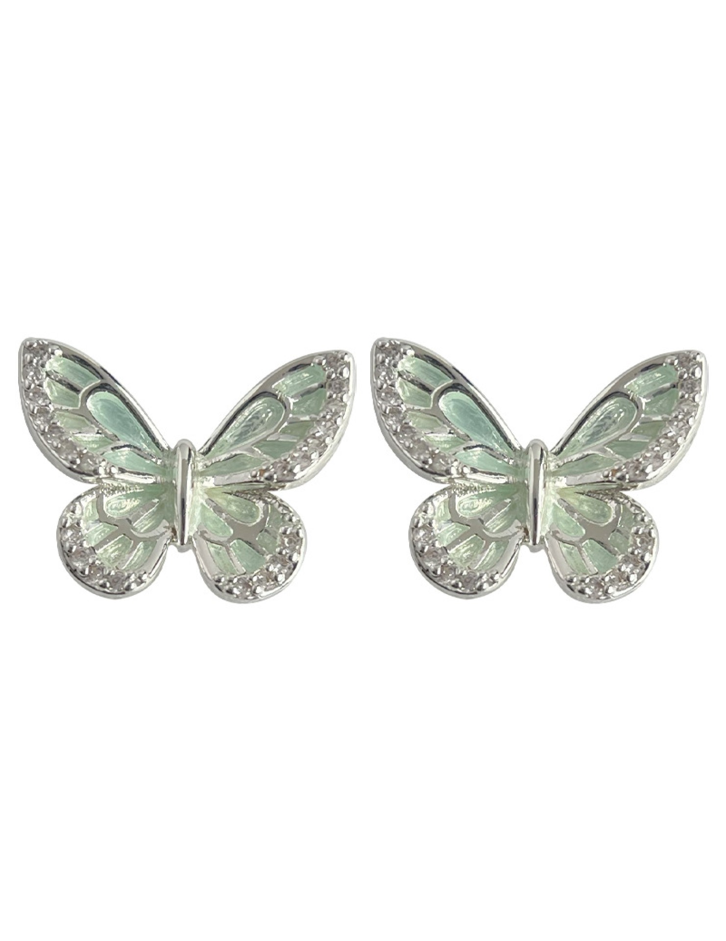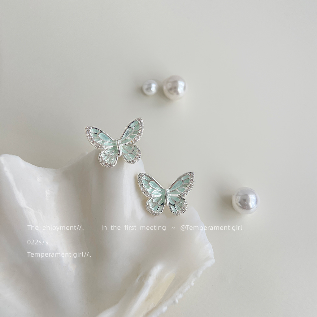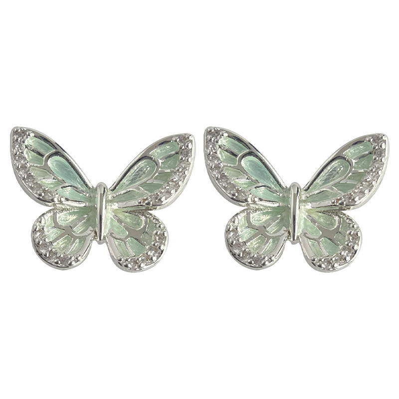 HELN124100030 微鑲鋯石薄荷曼波綠滴油銀針蝴蝶耳釘女清新甜美簡約夏日新款耳飾