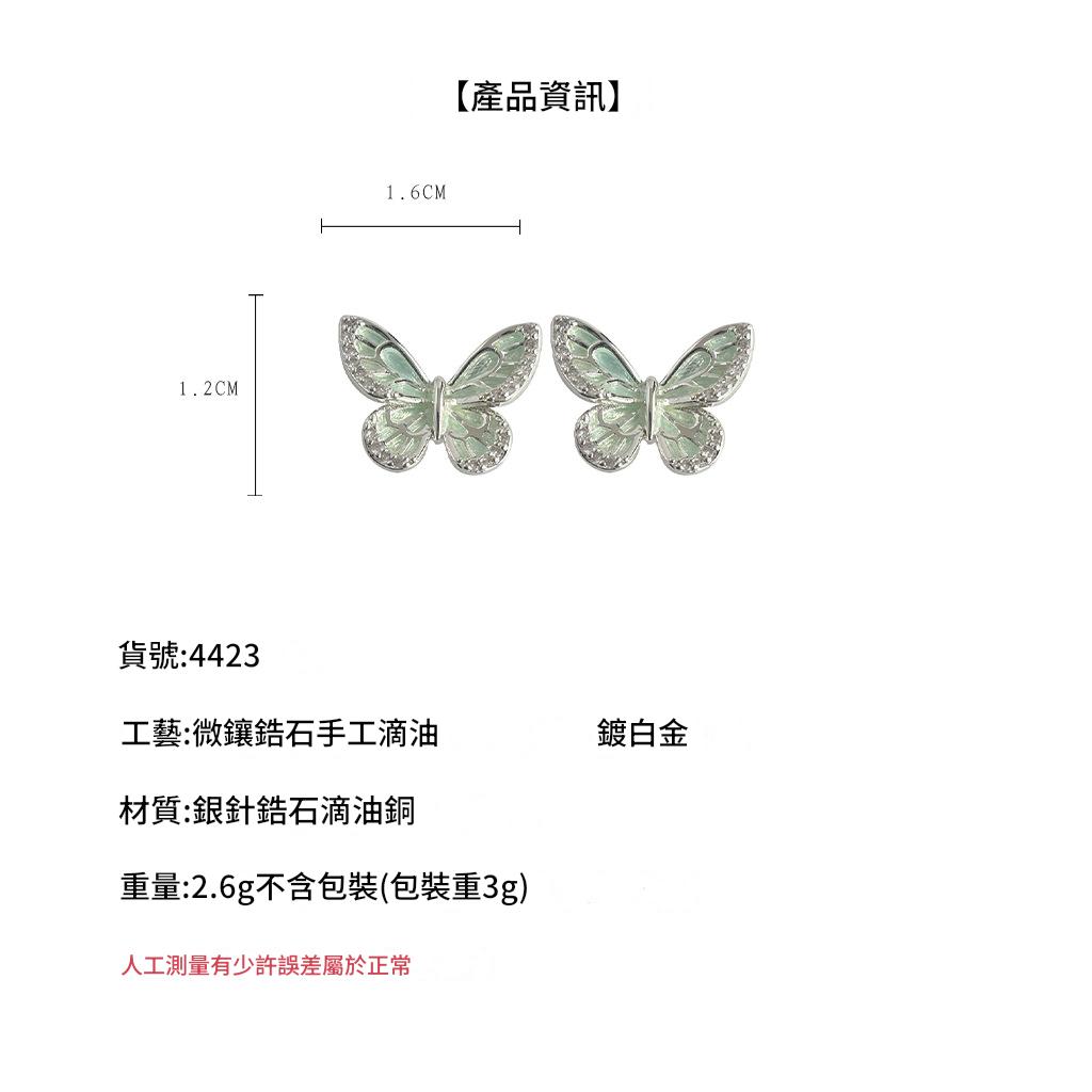 4423銀針曼巴綠蝴蝶耳釘