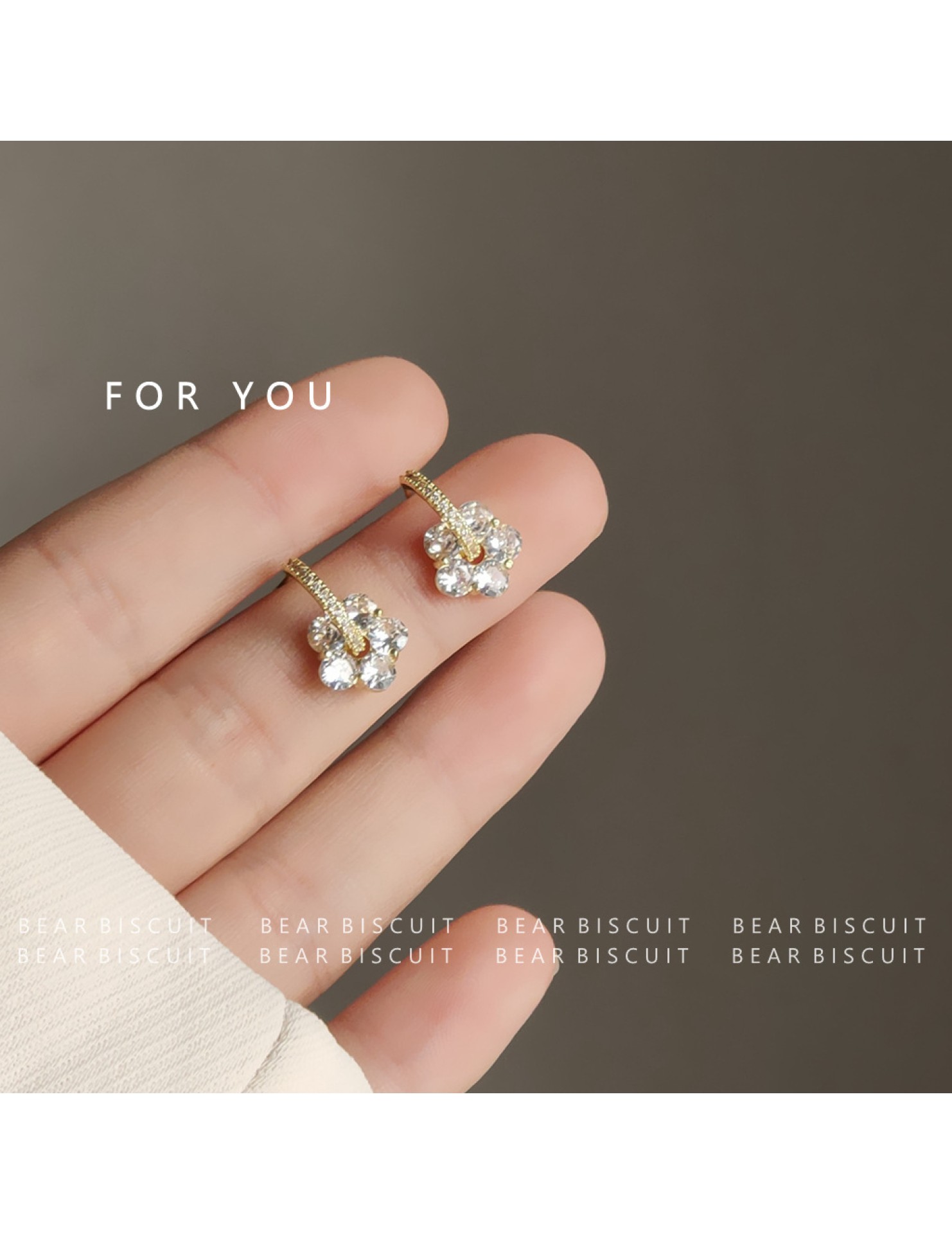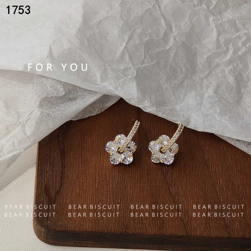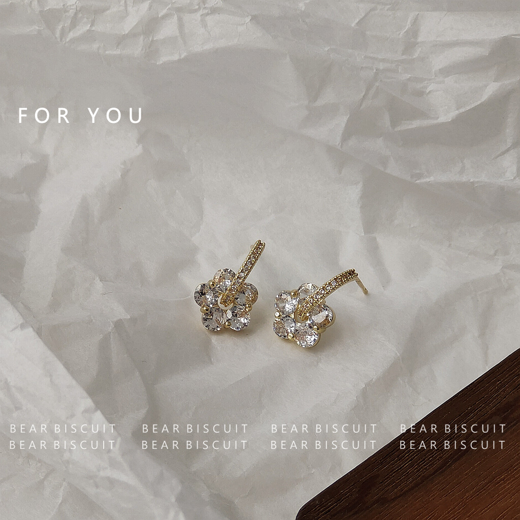 HELN124100031 鋯石花925銀針鍍14K日韓ins甜美耳飾女耳釘潮耳環