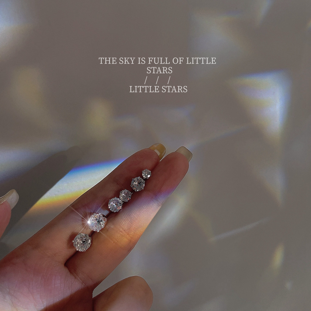 HELN124100035 睡覺不用摘的耳釘!!超閃一粒鉆鋯石s925銀耳骨釘簡約小巧耳飾女