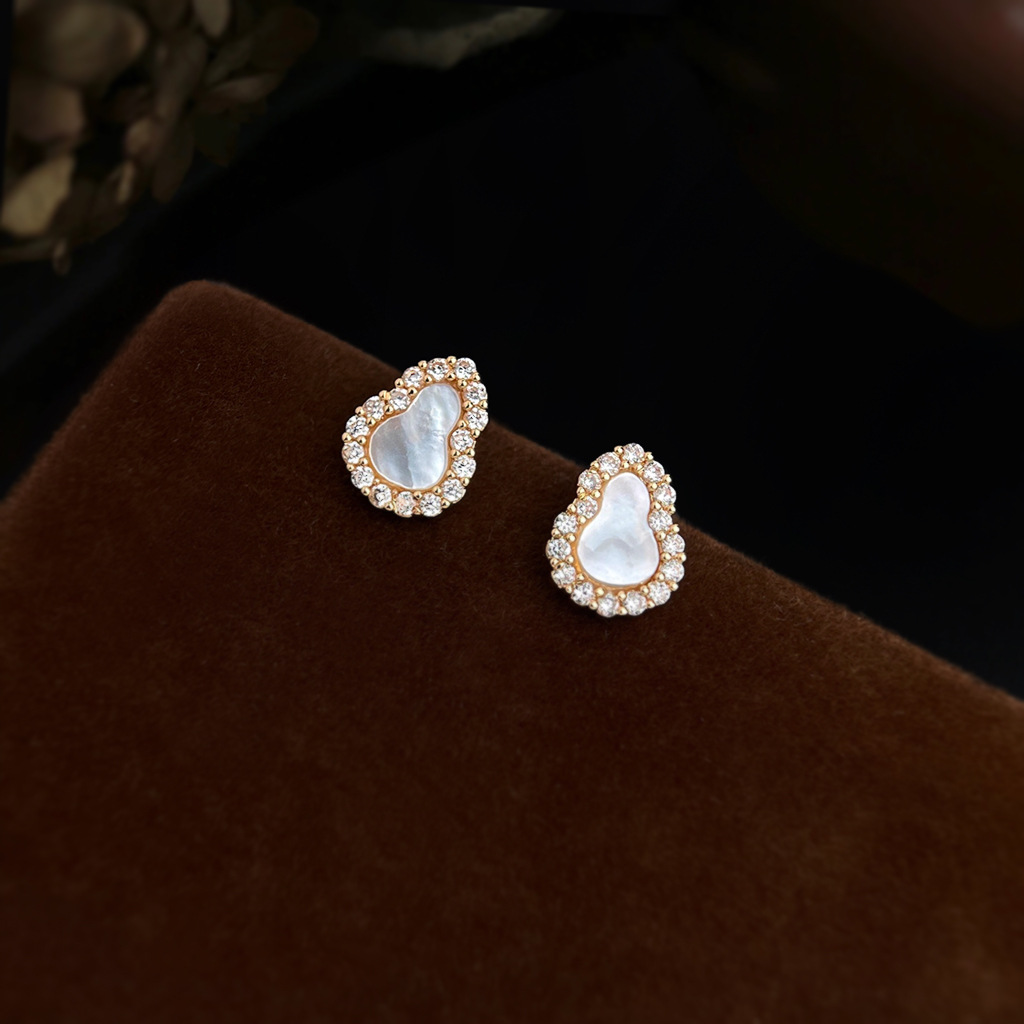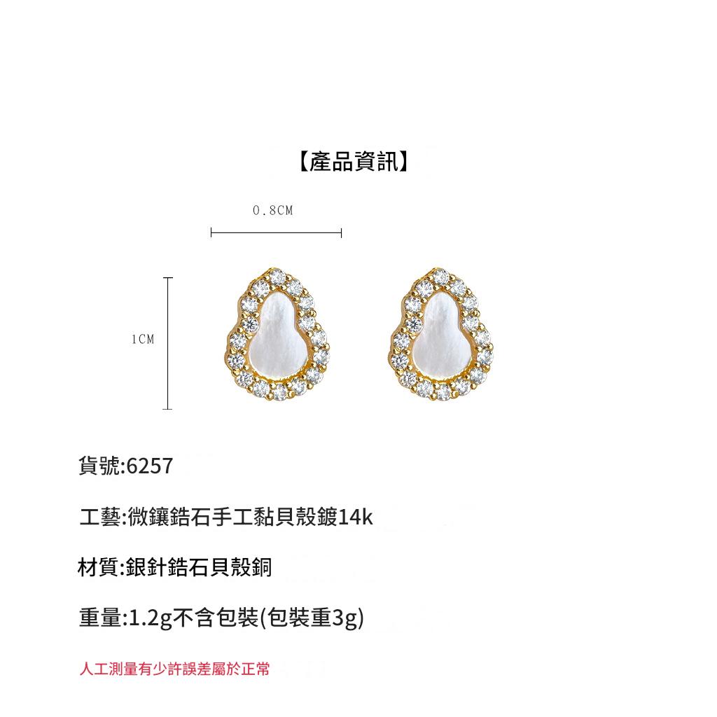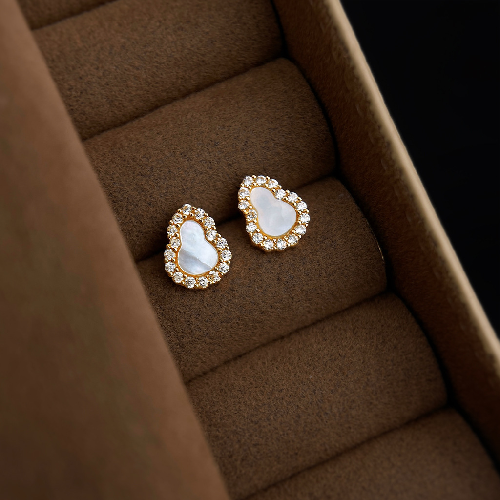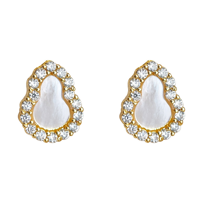 HELN124100036 微鑲鋯石真貝殼925銀針小葫蘆耳釘簡約時尚通勤百搭 新款爆款耳飾