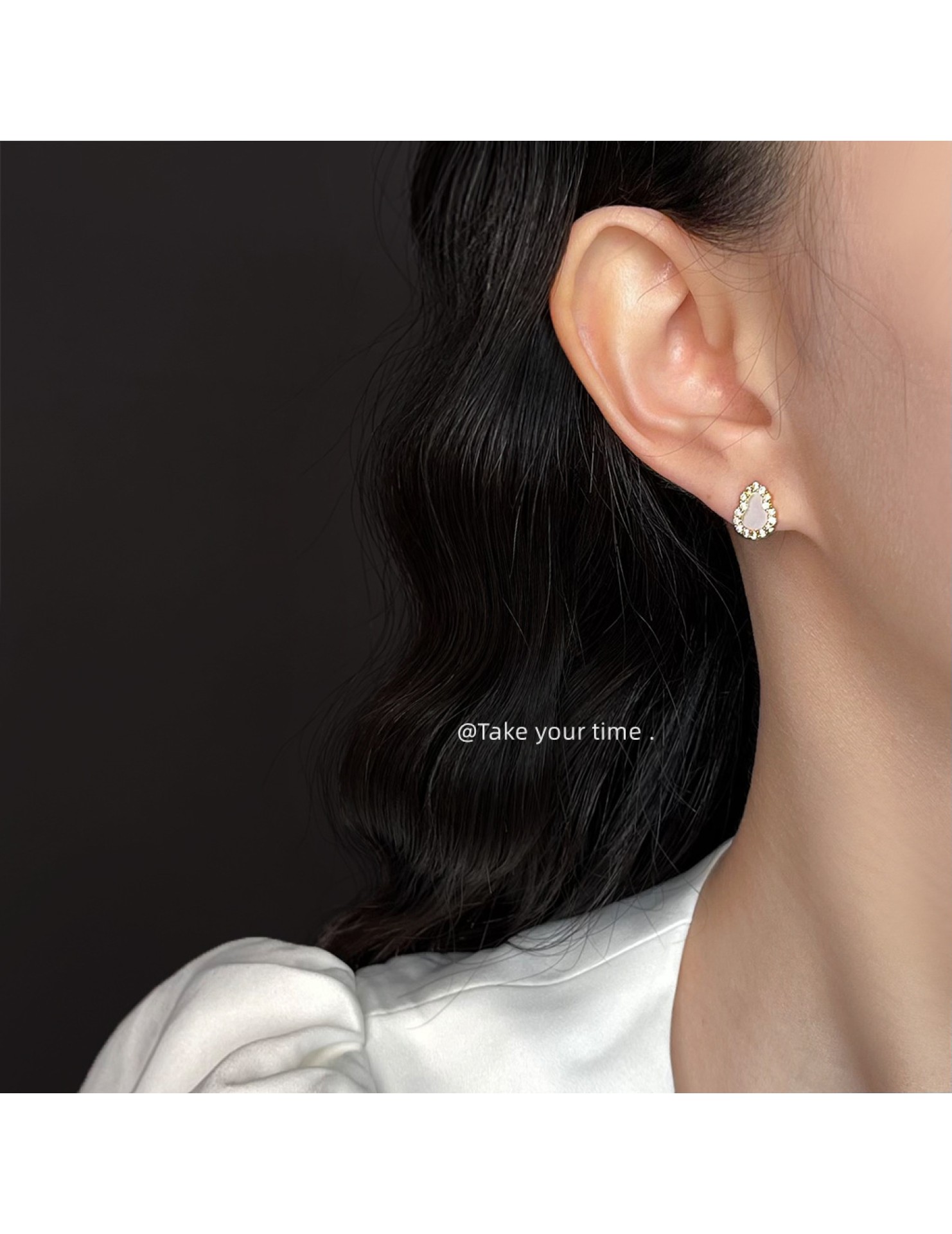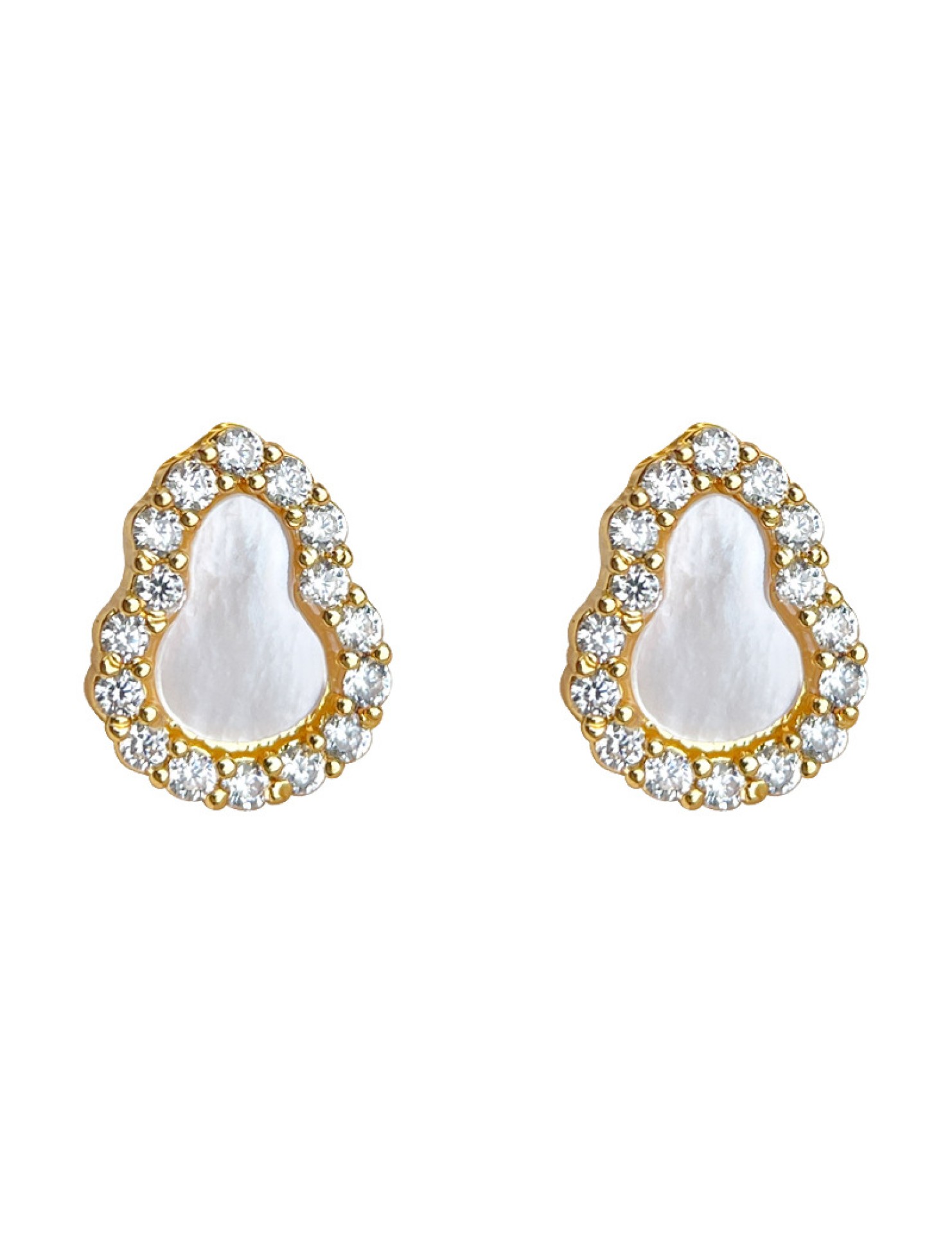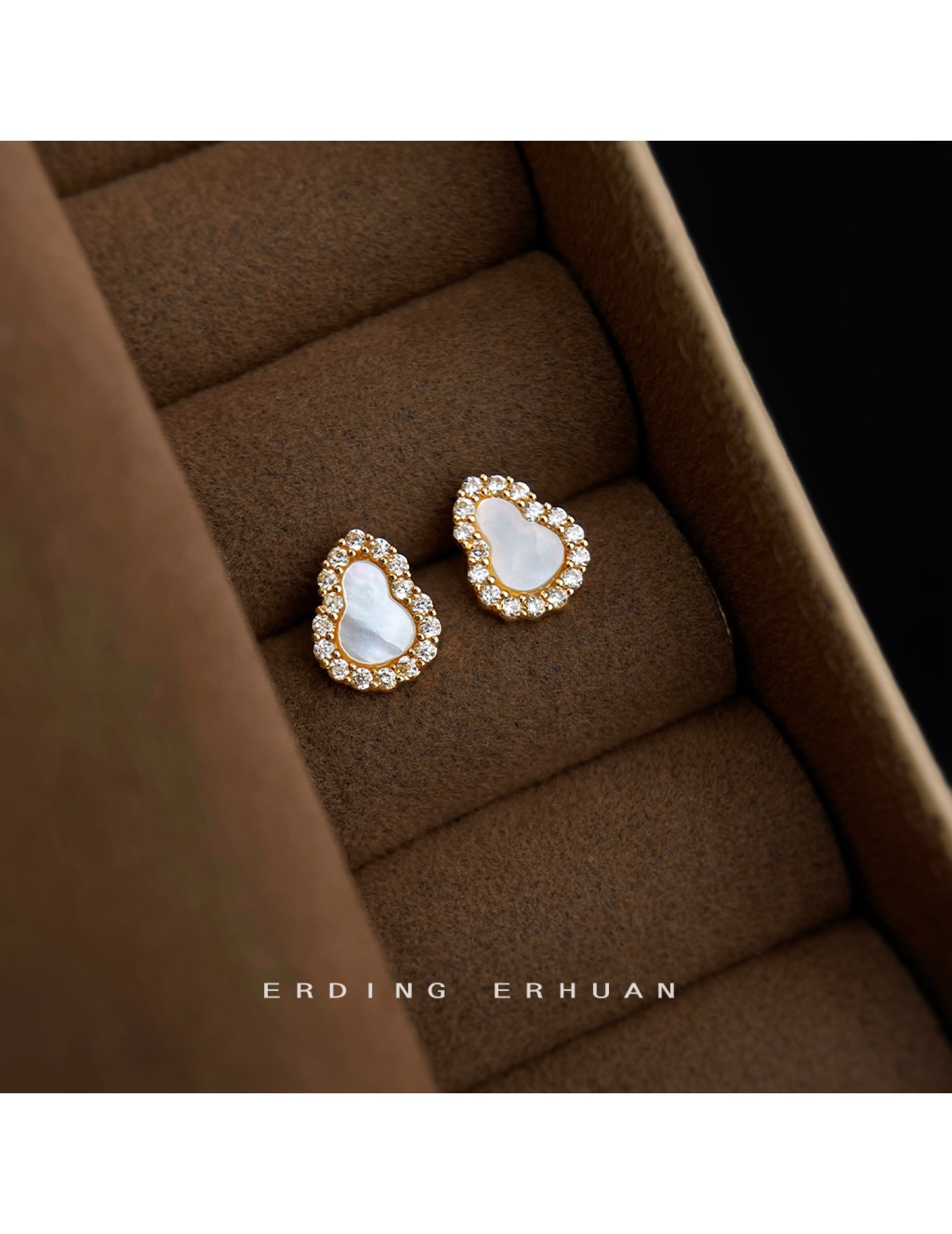 HELN124100036 微鑲鋯石真貝殼925銀針小葫蘆耳釘簡約時尚通勤百搭 新款爆款耳飾