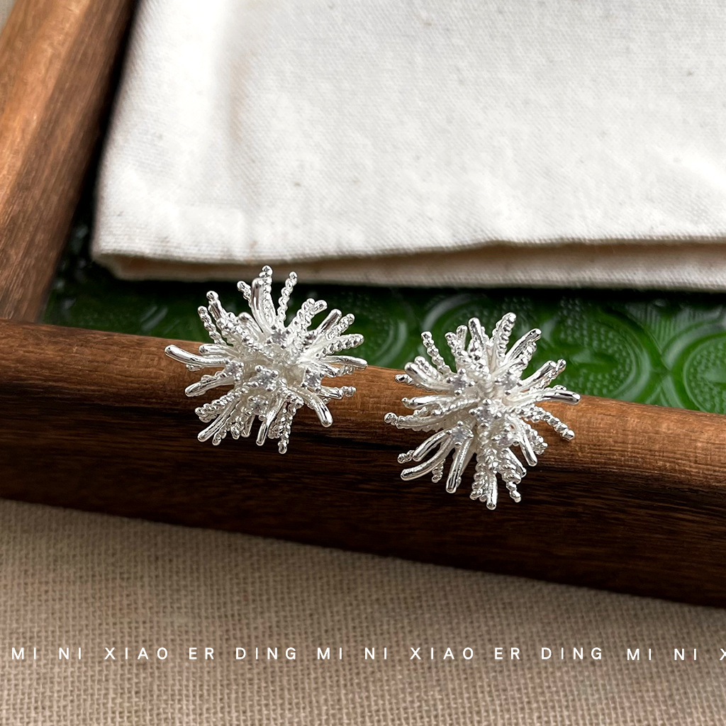 HELN124100037 春天925銀針蒲公英藝術氣息設計師款簡約新款耳釘