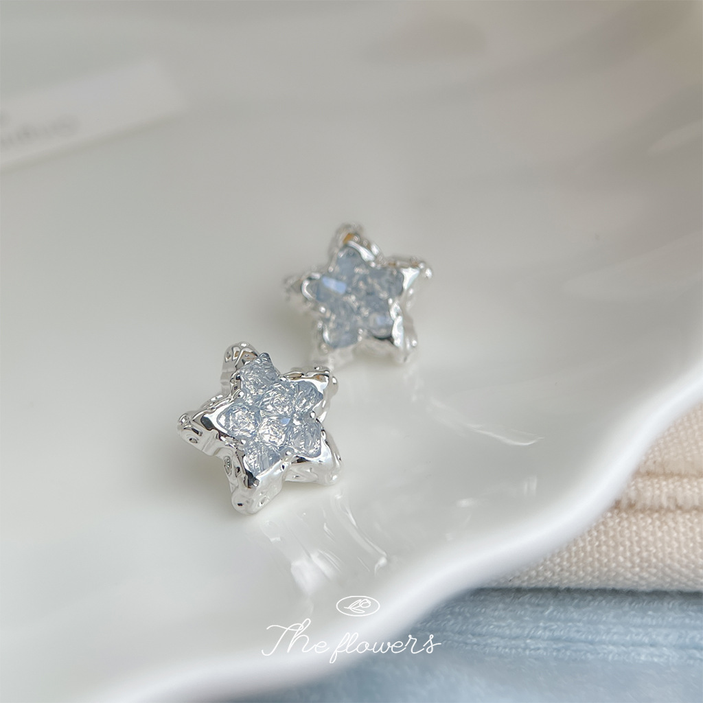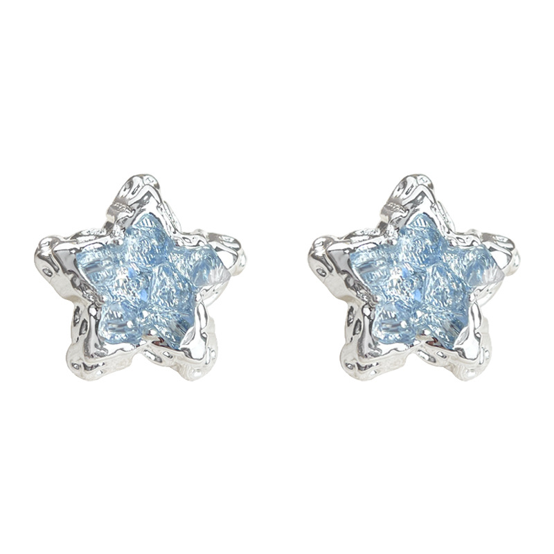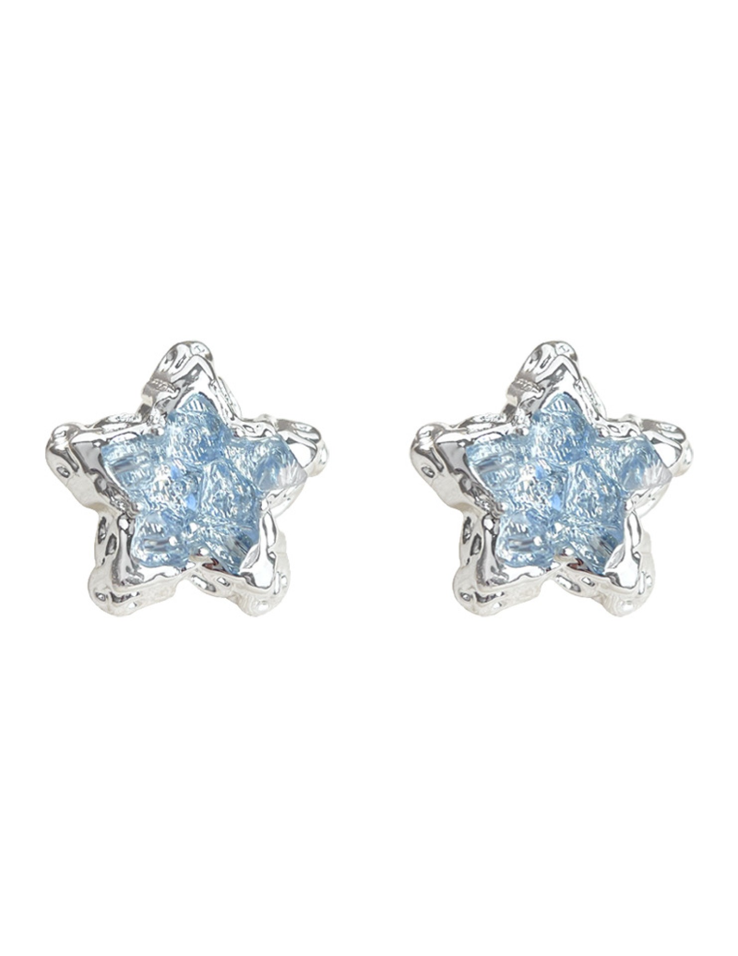 HELN124100040 藍色冰晶~清新甜美五角星925銀針液態耳釘女氣質優雅夏日爆款耳飾