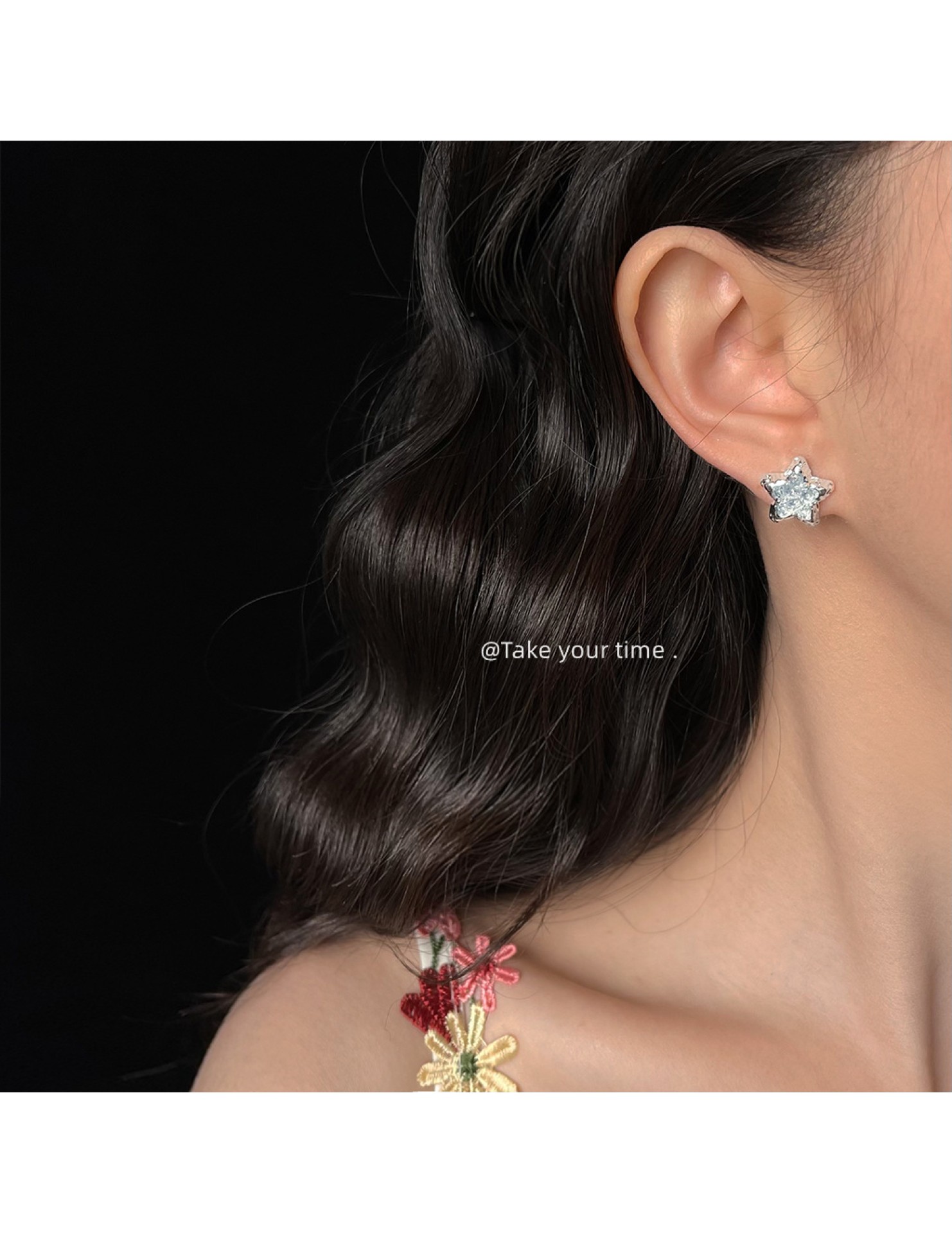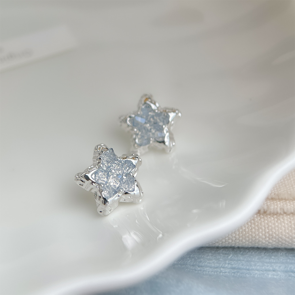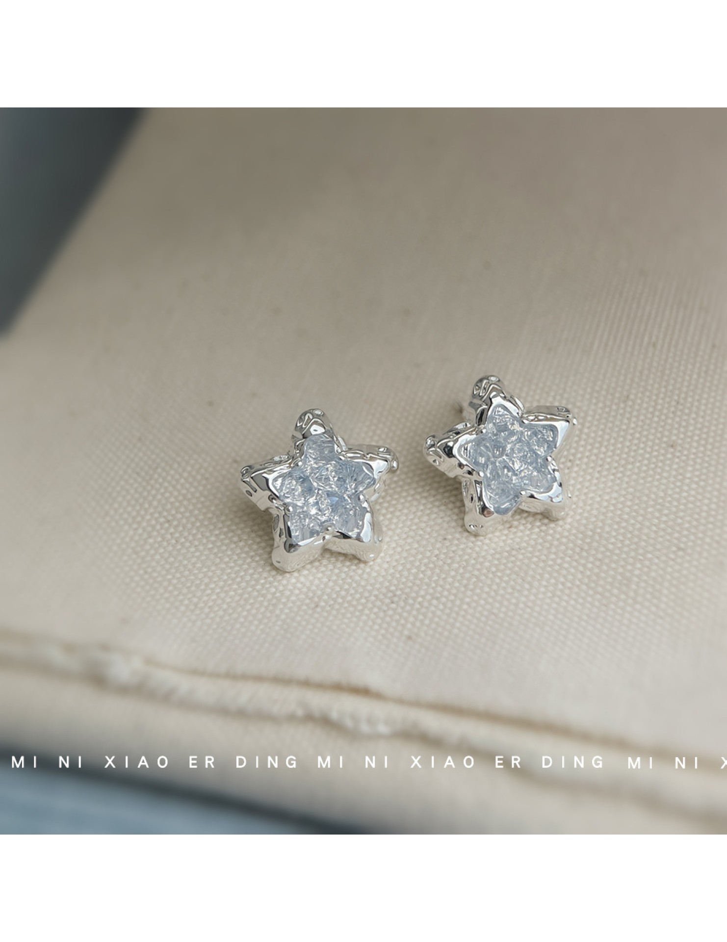 HELN124100040 藍色冰晶~清新甜美五角星925銀針液態耳釘女氣質優雅夏日爆款耳飾