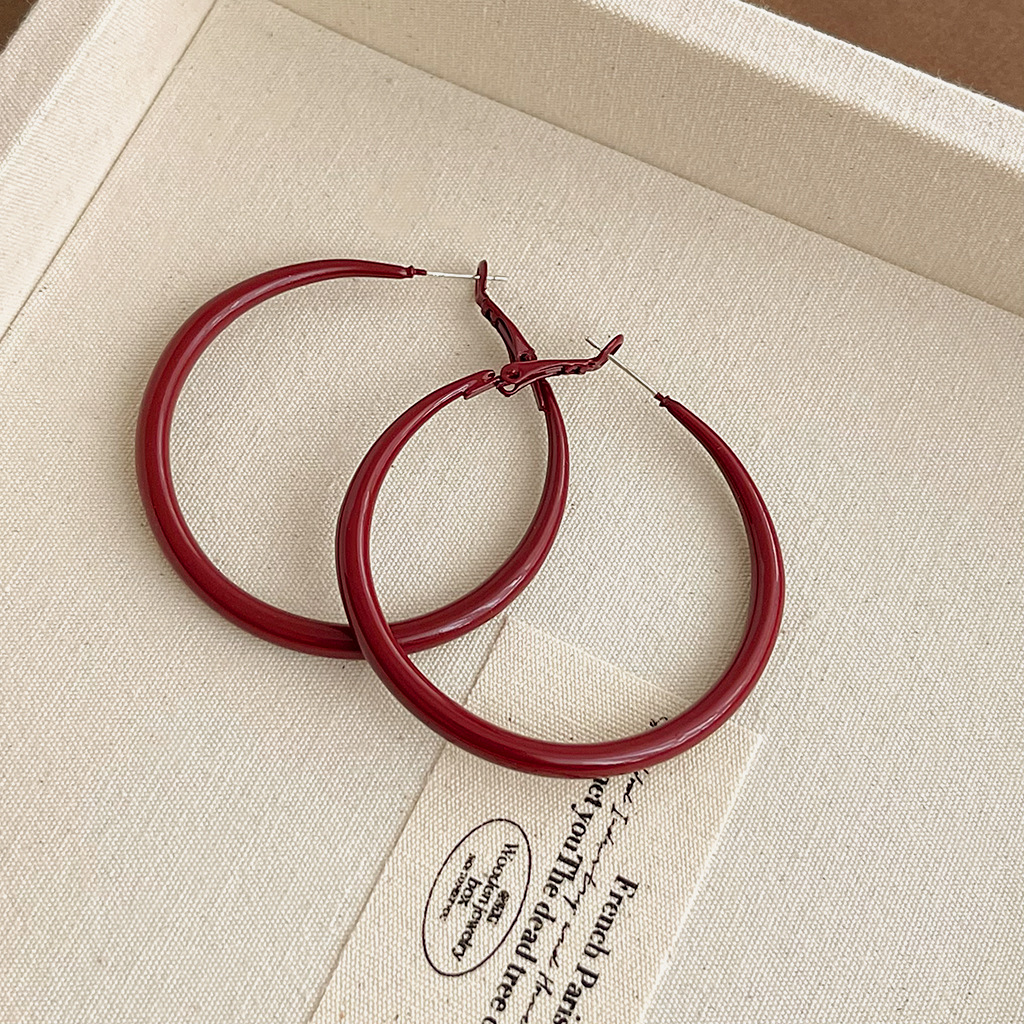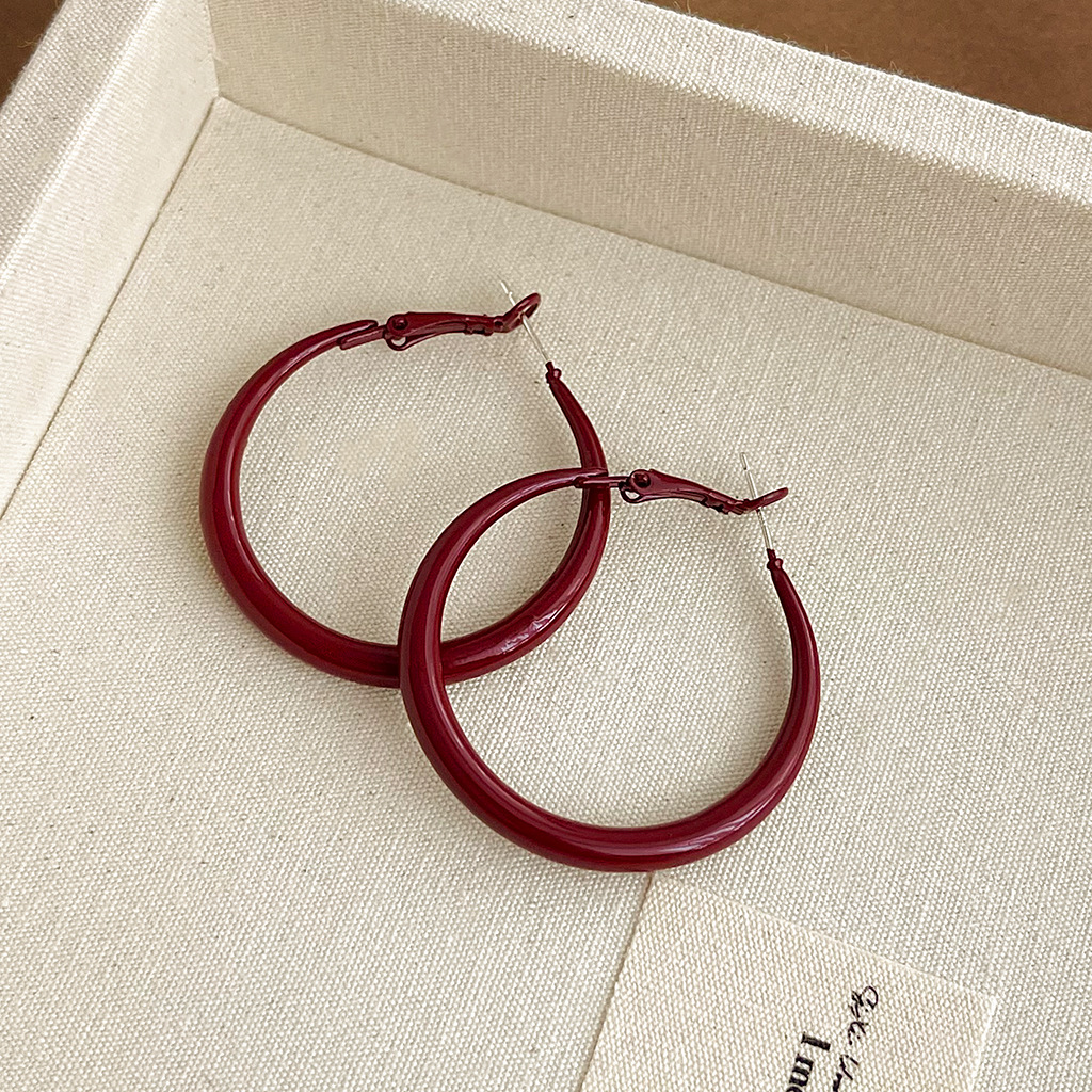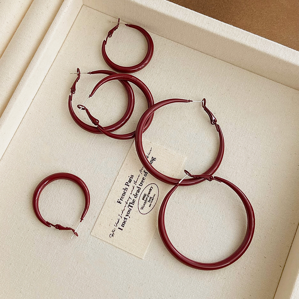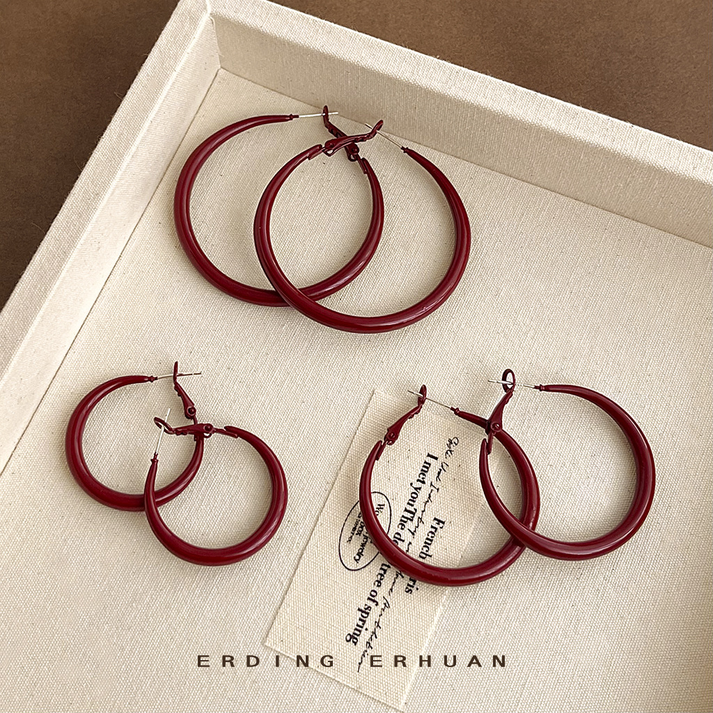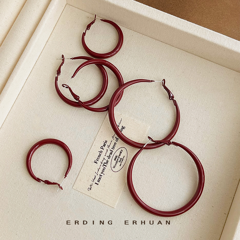 HELN124100049 港風復古顯白酒紅色素圈耳環女2025新款爆款高級感夸張大耳圈耳飾
