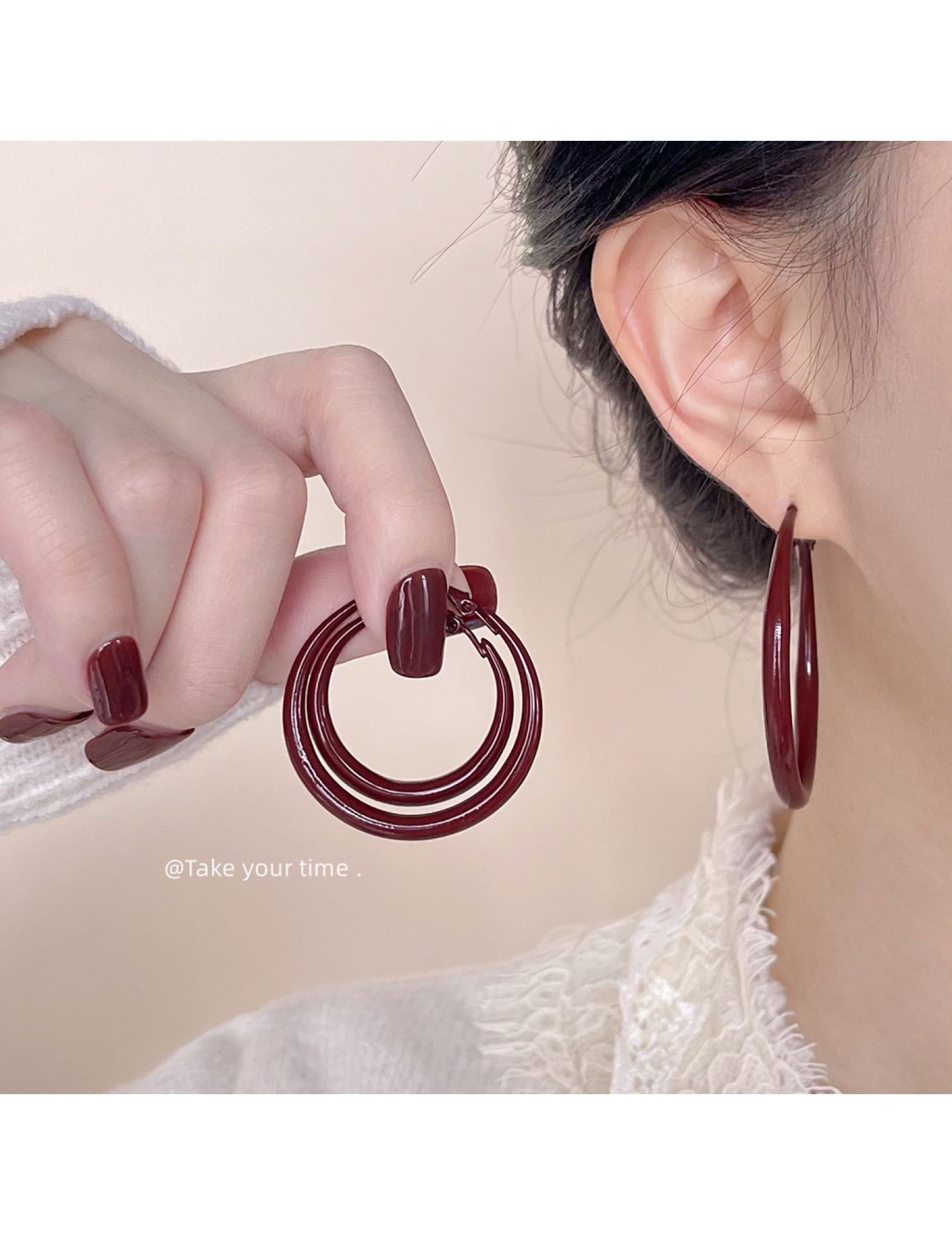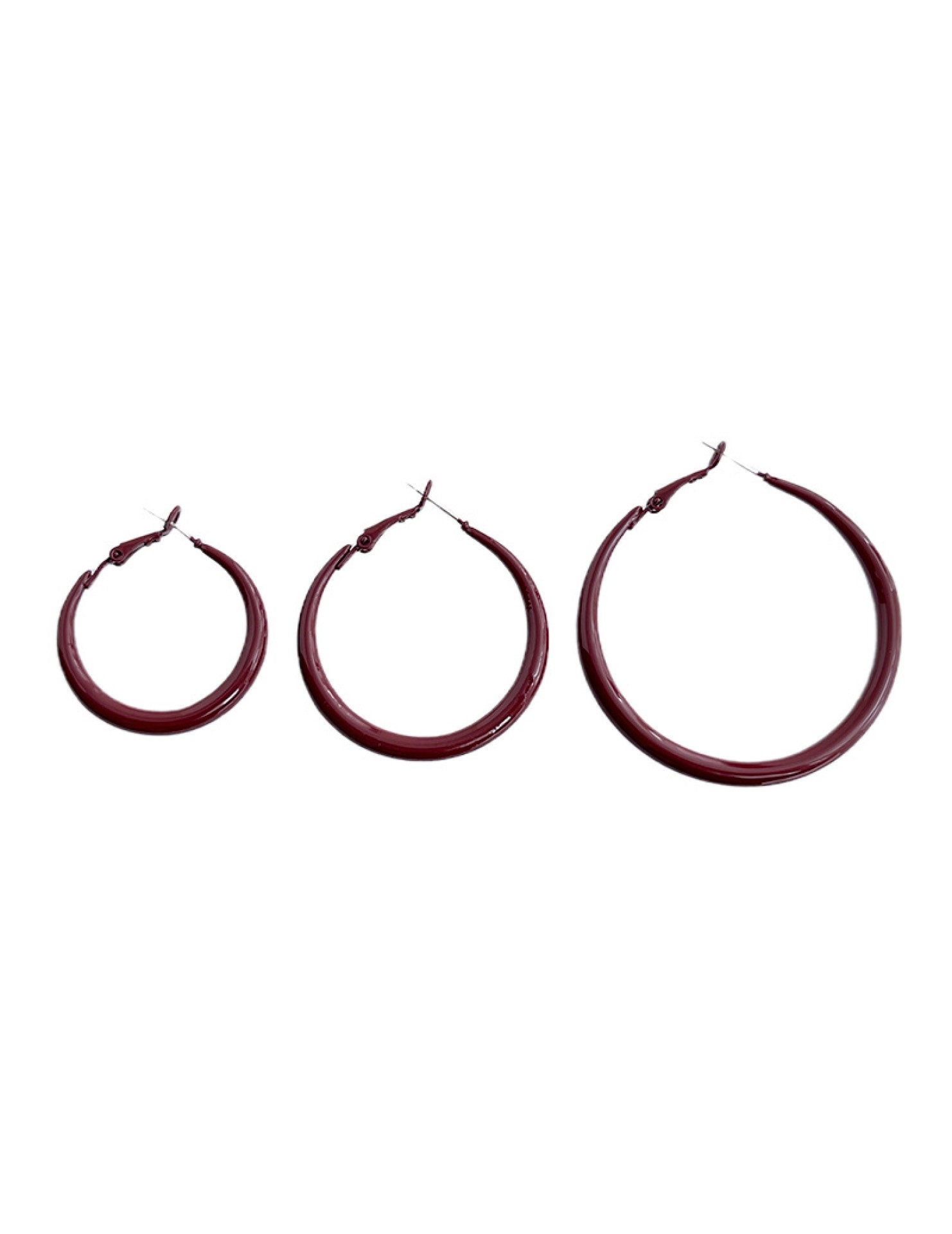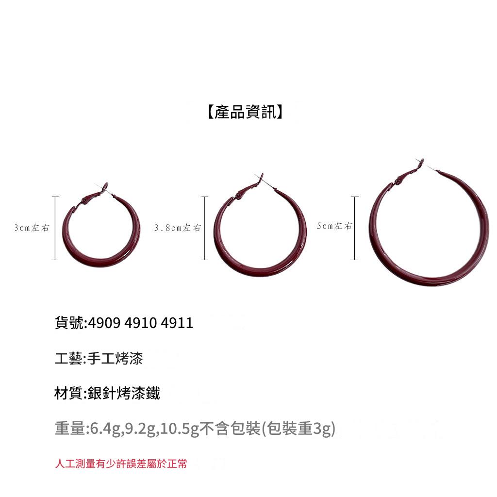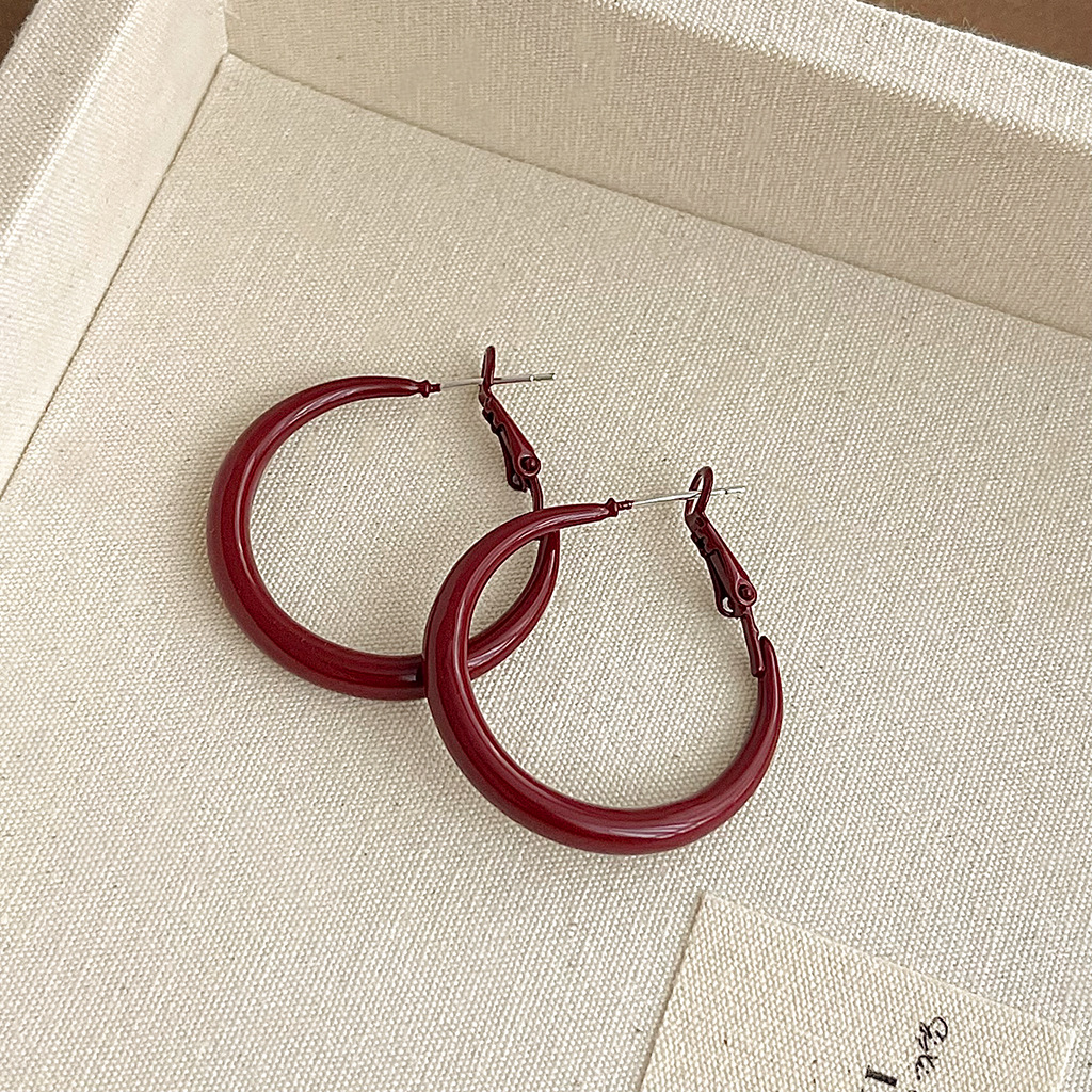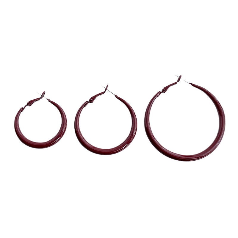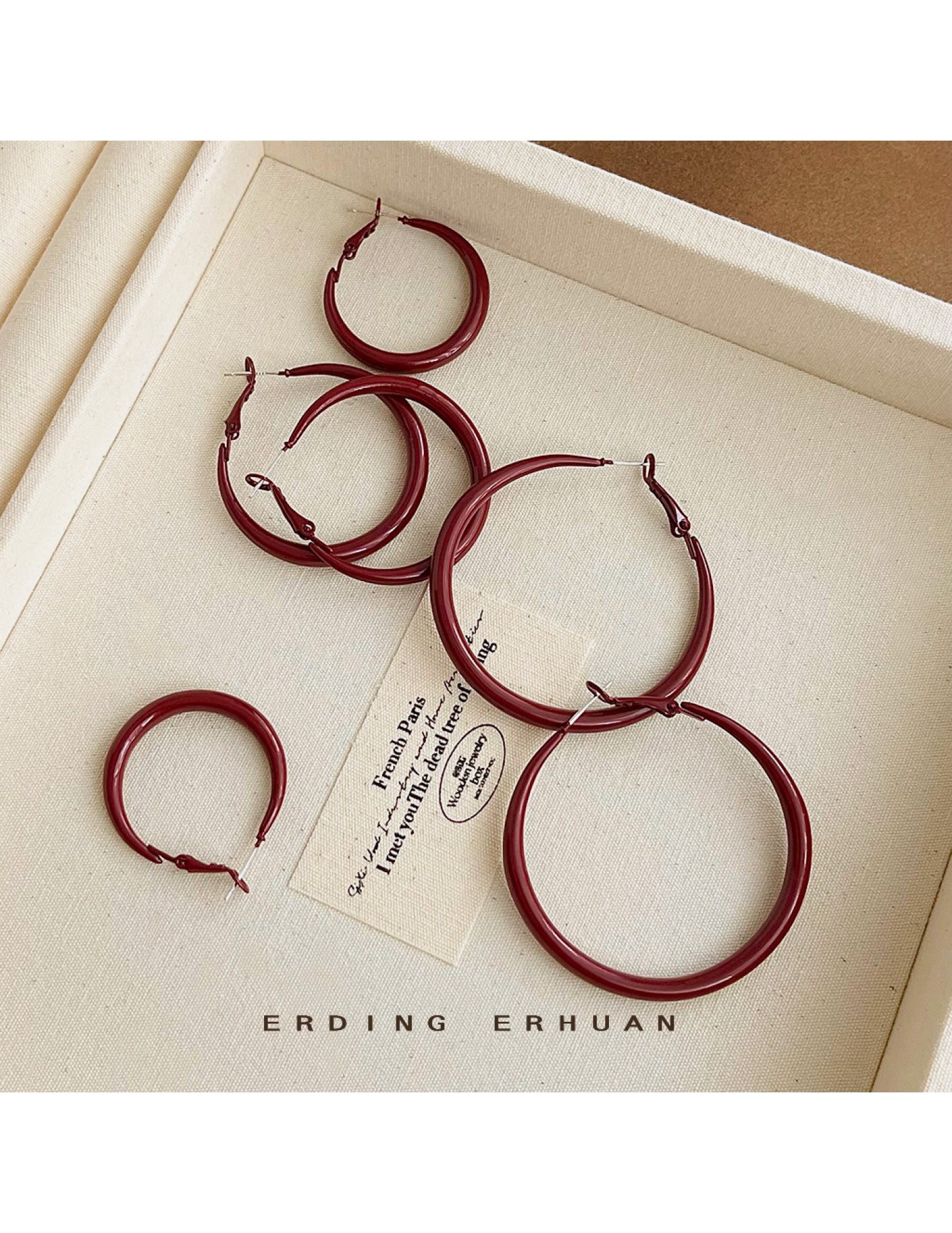 HELN124100049 港風復古顯白酒紅色素圈耳環女2025新款爆款高級感夸張大耳圈耳飾