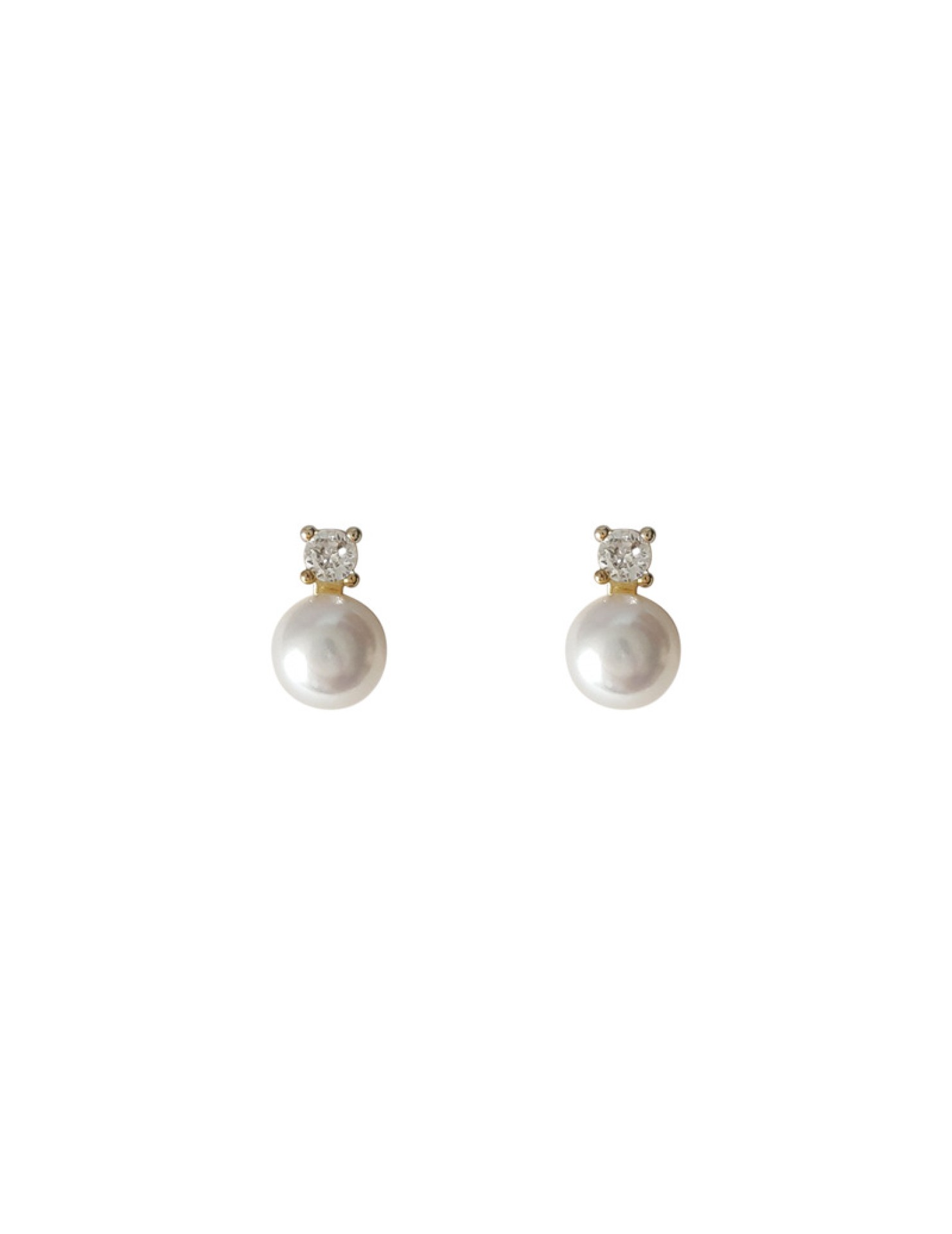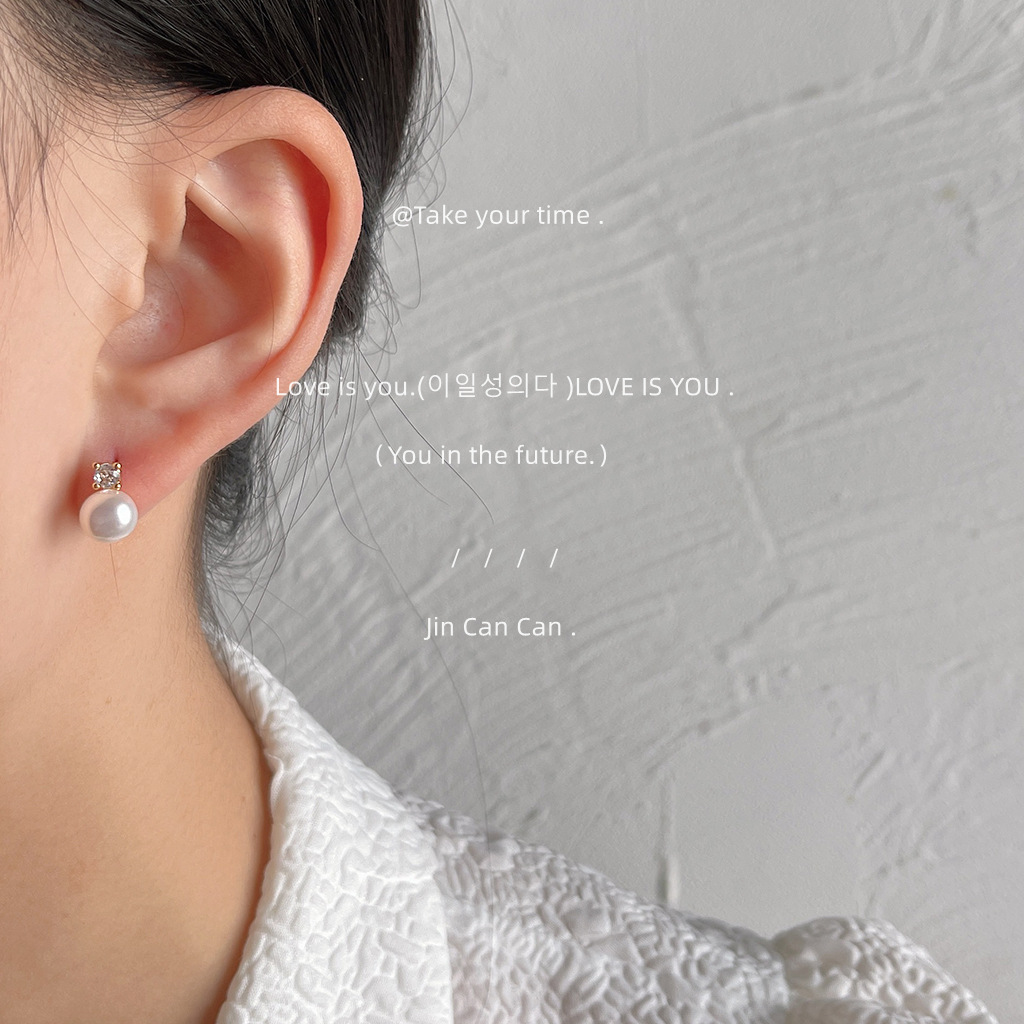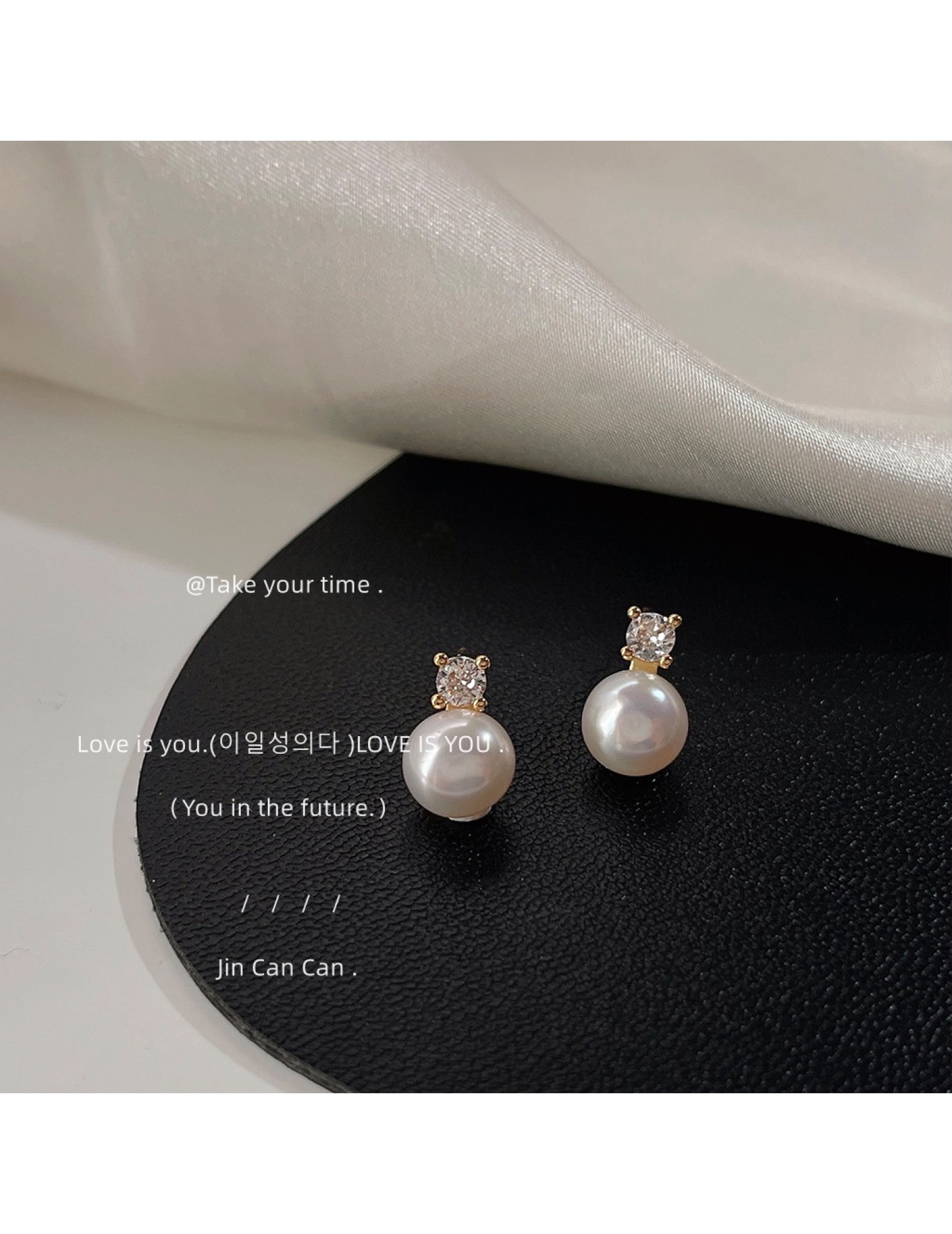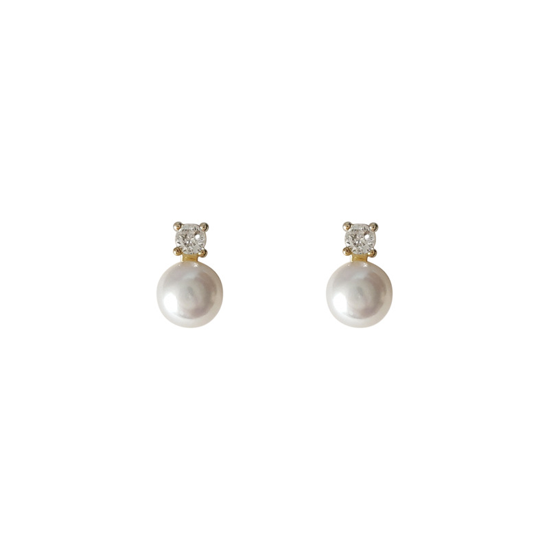 HELN124100050 淡水珍珠~微鑲鋯石925銀針鍍14K簡約百搭高級感耳釘 飾品