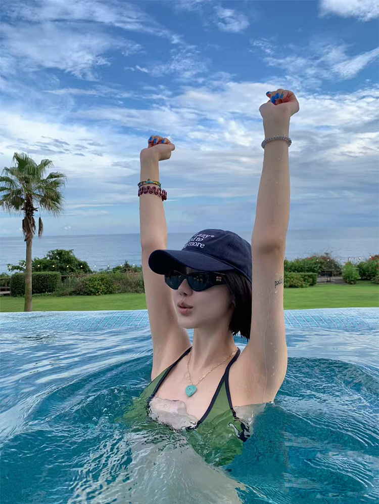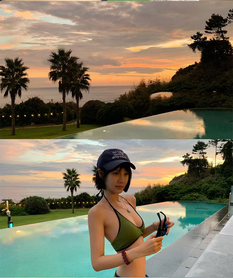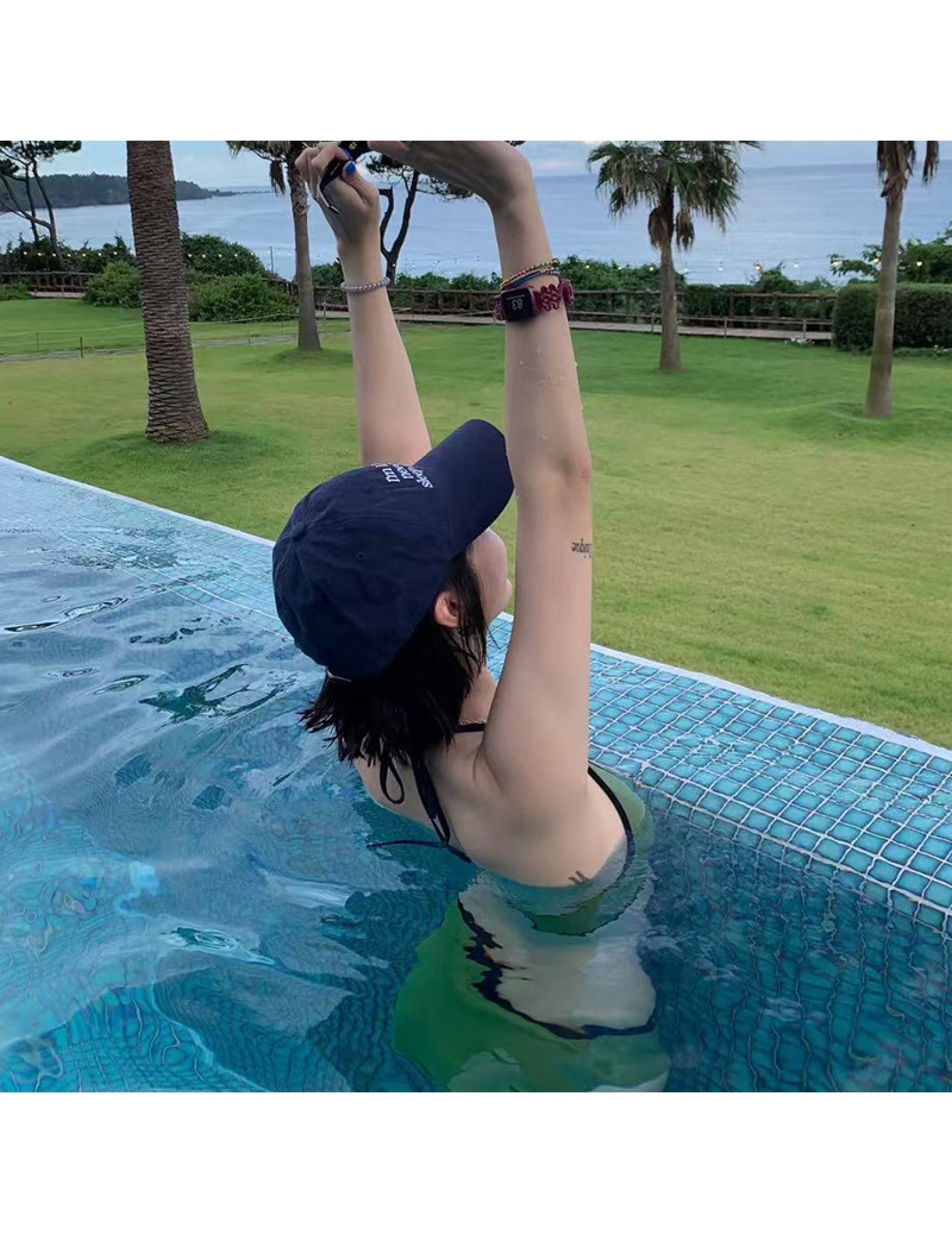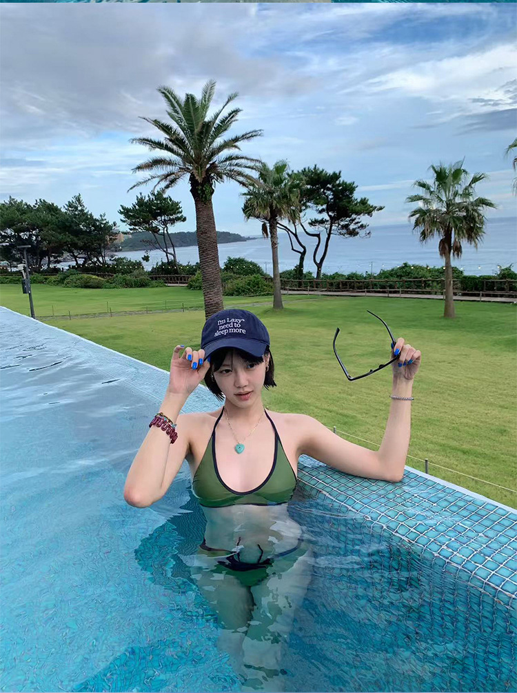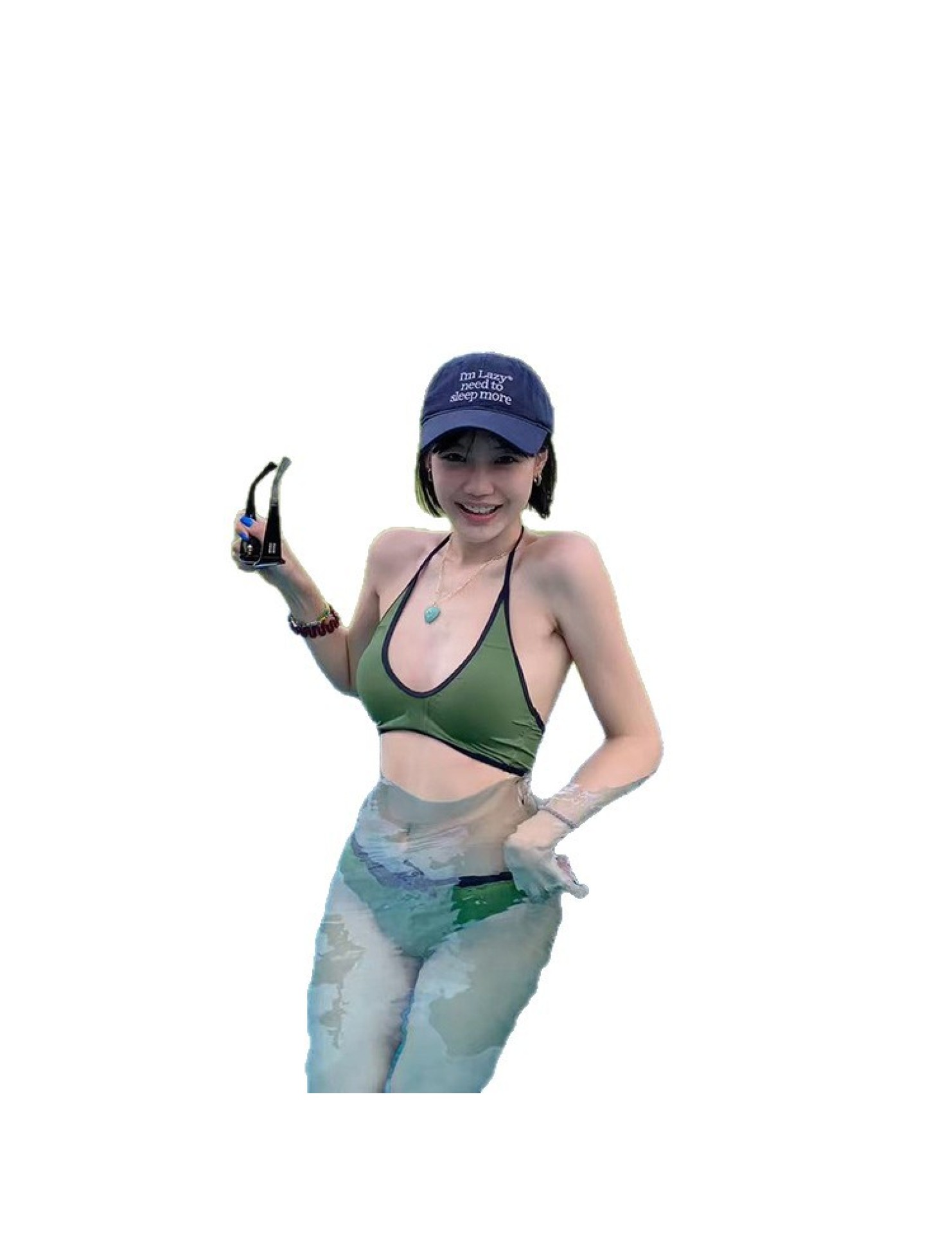 HSPN129100003 橄欖綠撞色黑邊掛脖分體泳衣度假溫泉高顏值島嶼出片