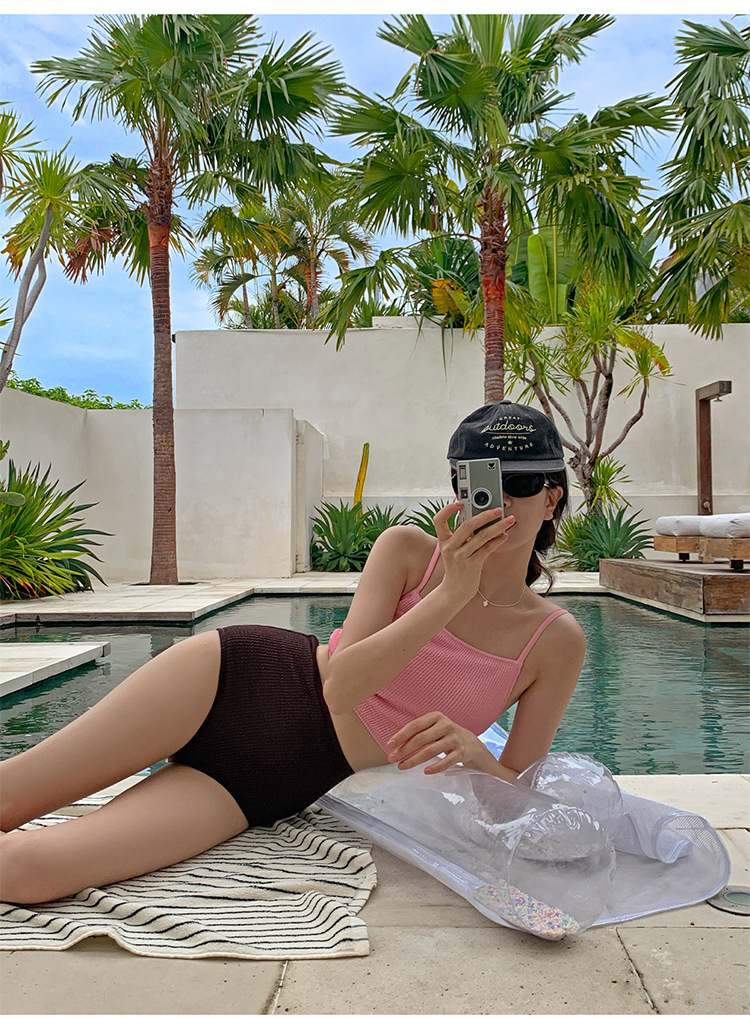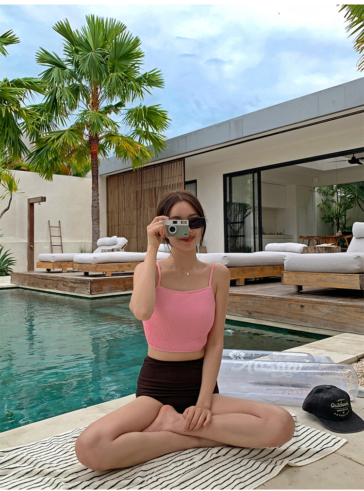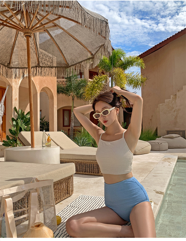 HSPN129100004 海鹽蘇打水吊帶高腰三角褲分體遮肉顯瘦海邊度假泳衣高顏值顯白