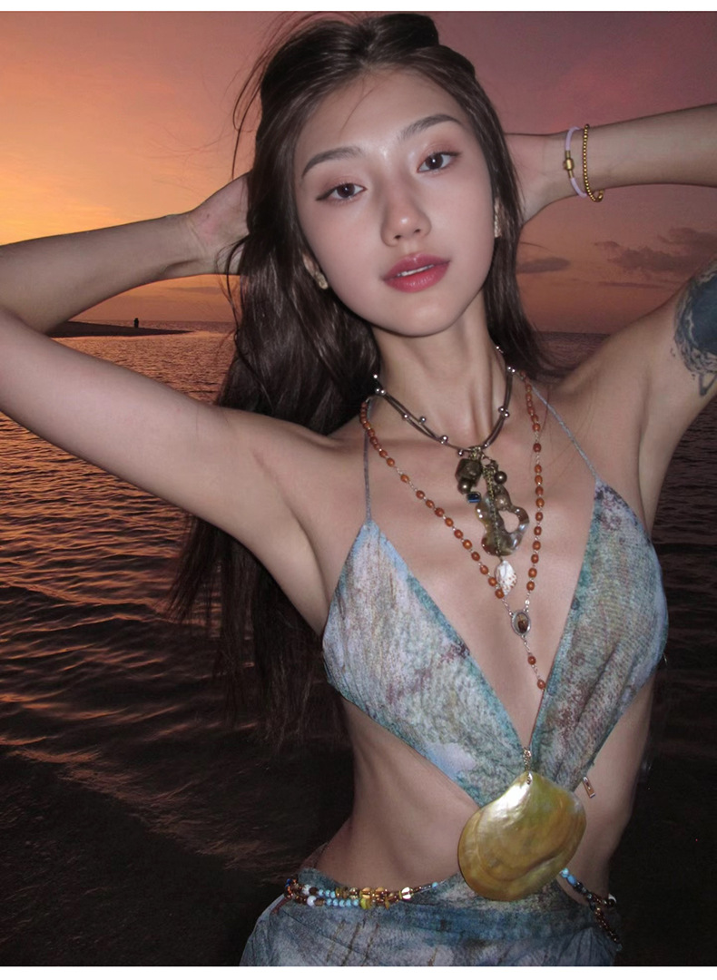 HSPN129100006 海妖復古部落風度假性感辣妹比基尼長裙高級小眾
