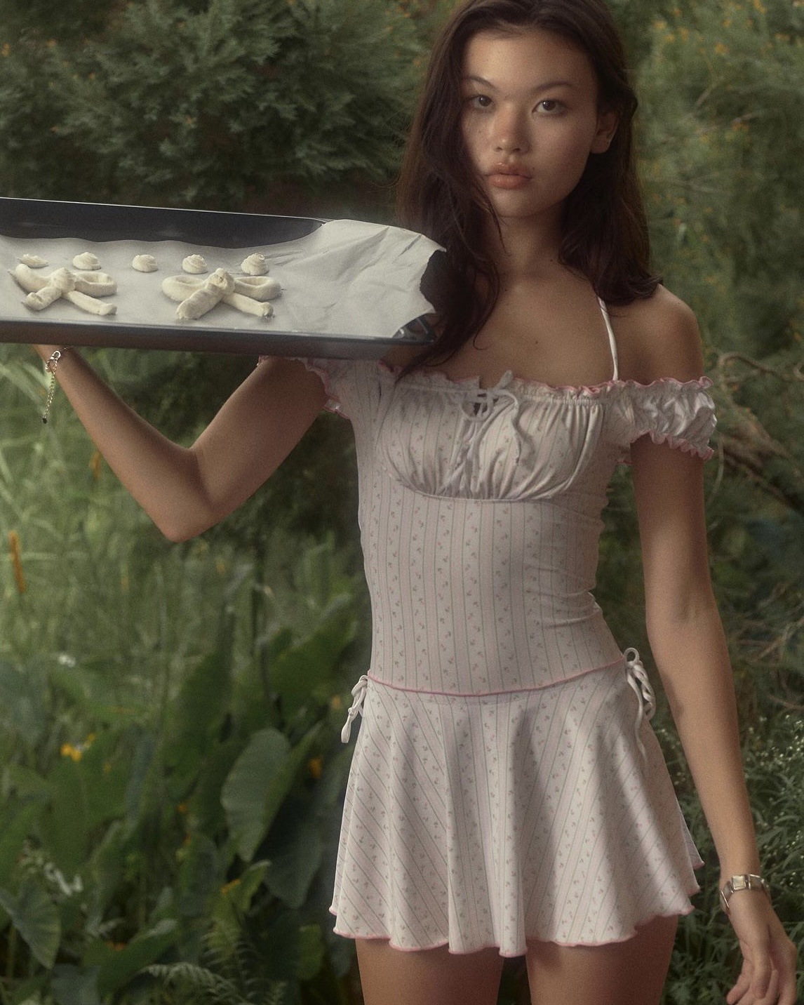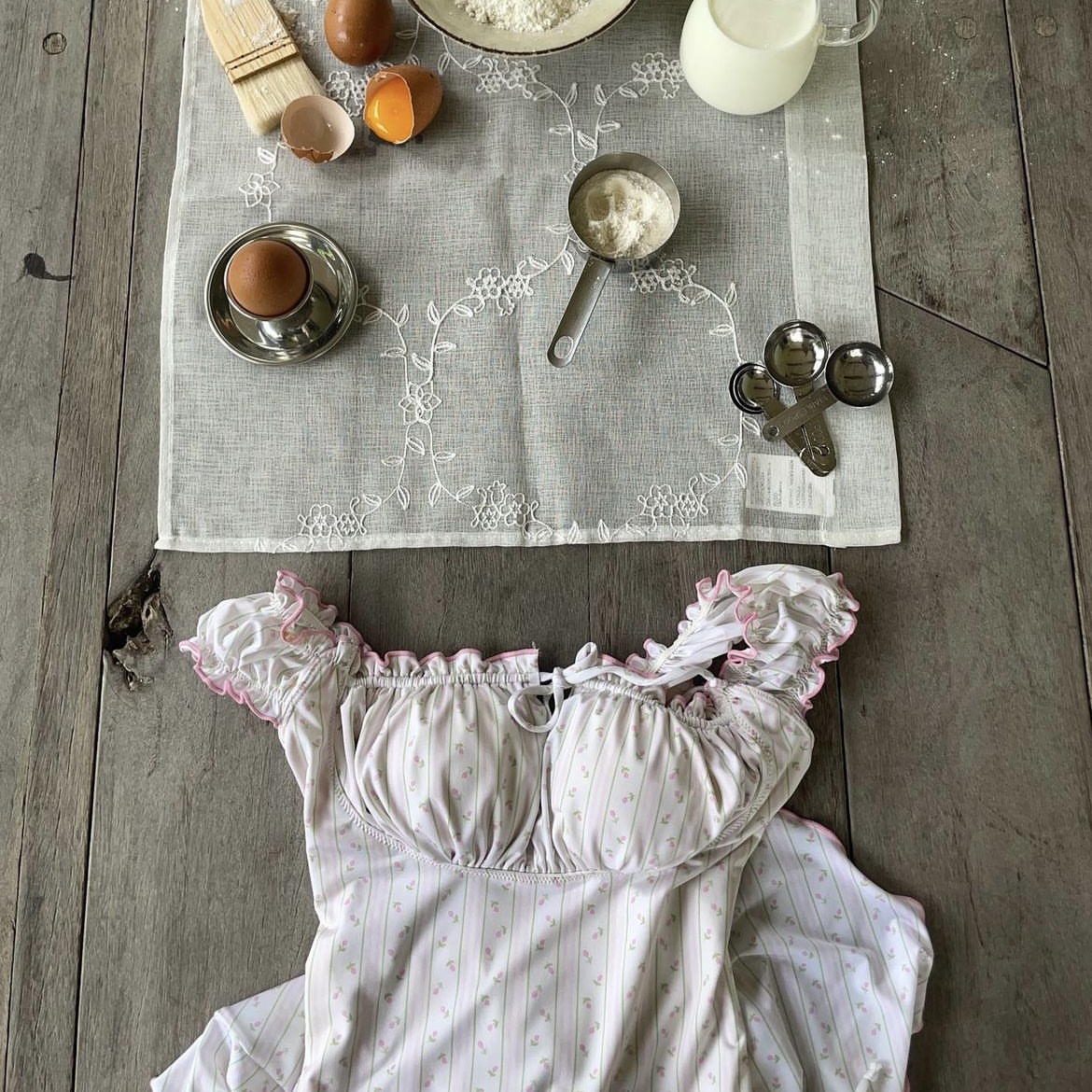 HSPN204100001 莫奈花園ins復古少女遮肚顯瘦漏背連體泳衣度假溫泉