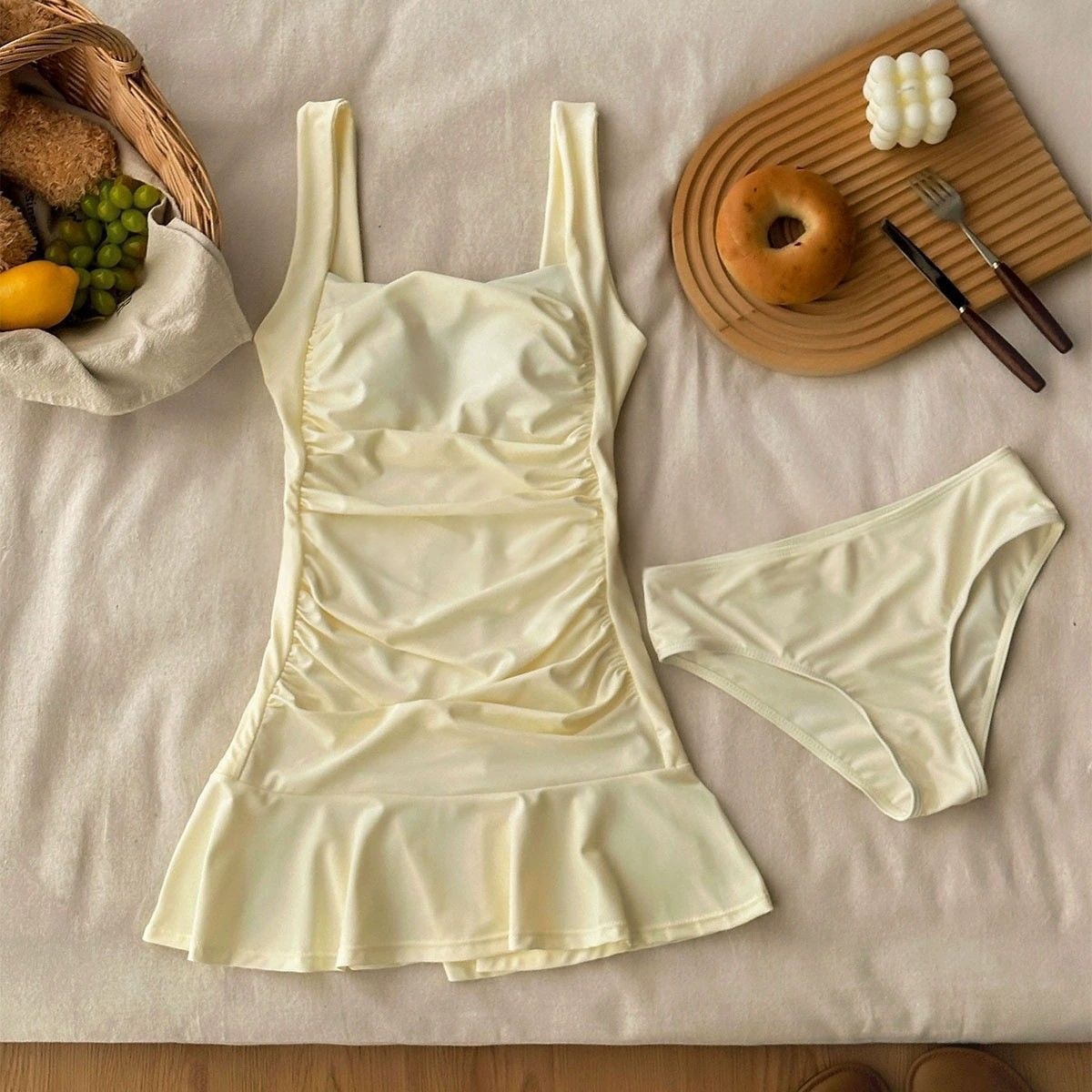 HSPN204100006 奶酪陷阱涼爽遮肉寬肩吊帶裙分體泳衣顯瘦小胸聚攏遮肚沙灘度假