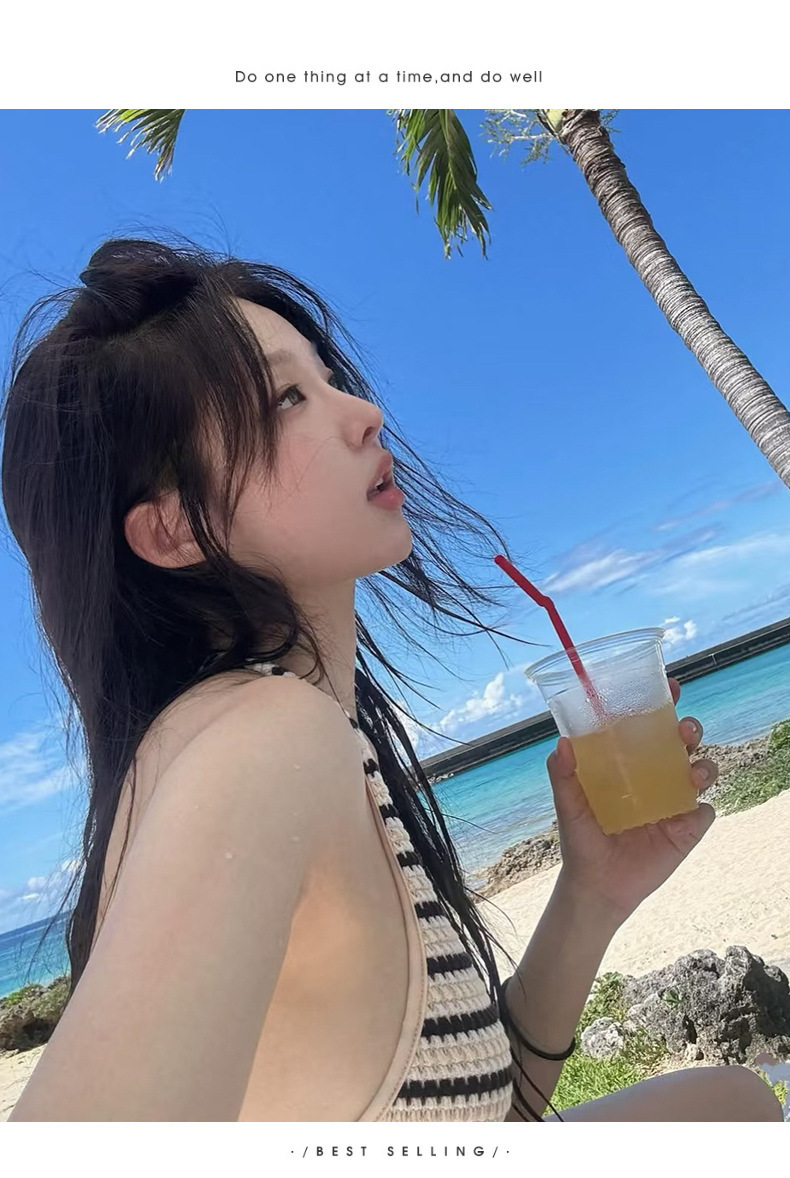HSPN205100002 黑白韓系小眾掛脖綁帶分體度假泳衣性感高顏值拍照出片