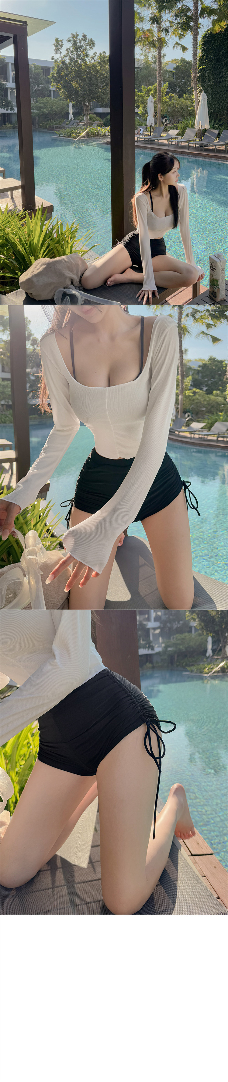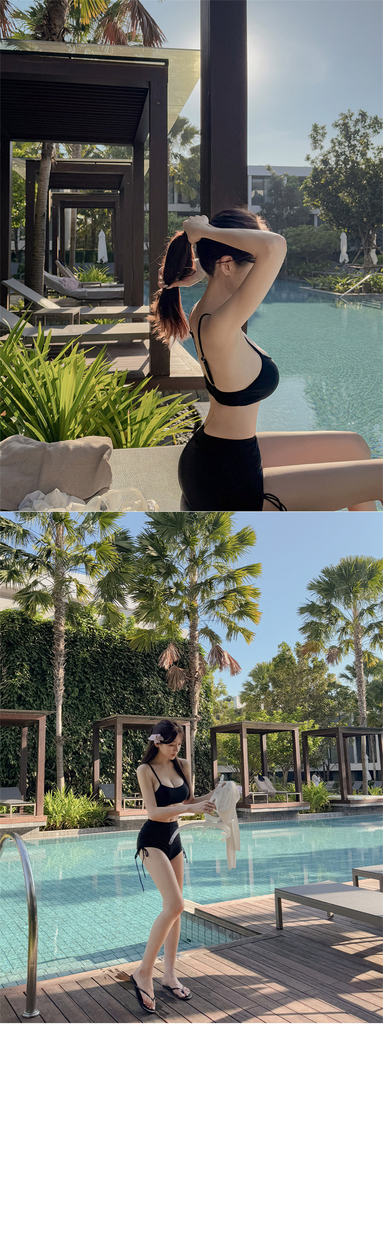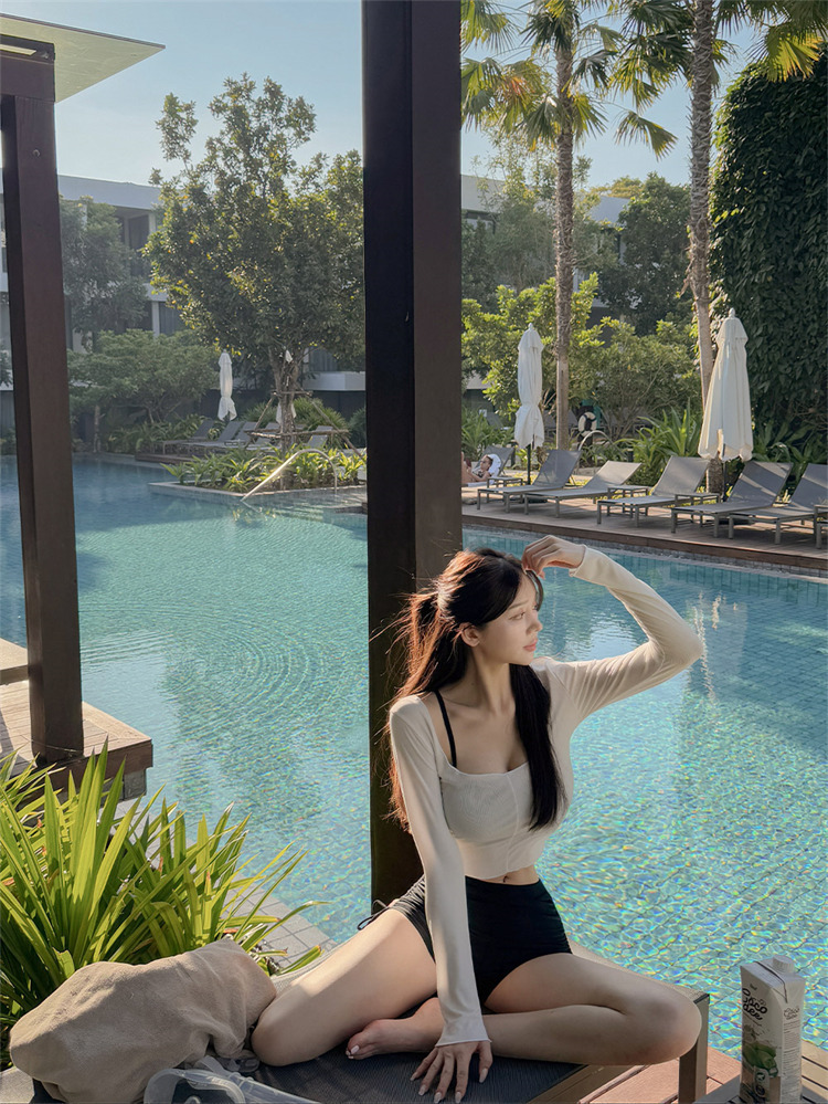 HSPN205100003 韓女黑色吊帶分體泳衣溫柔罩衫性感純欲顯白顯瘦島嶼度假溫泉