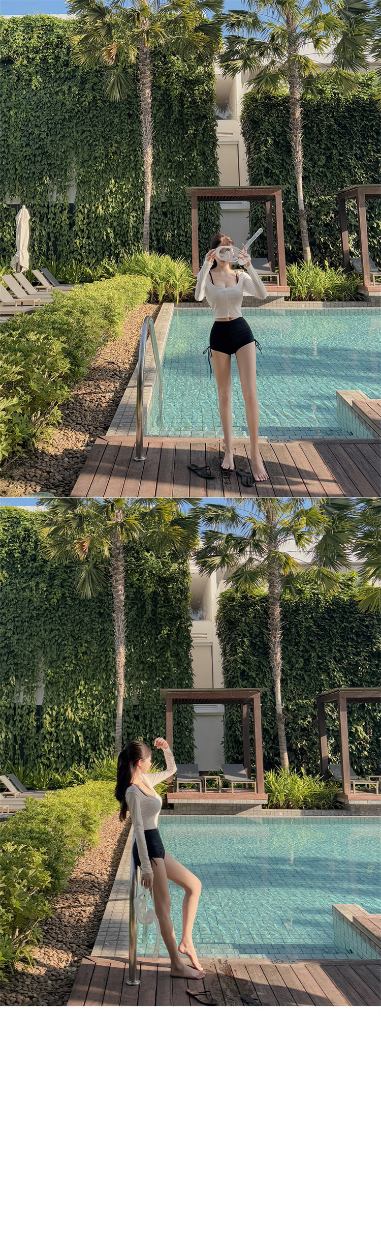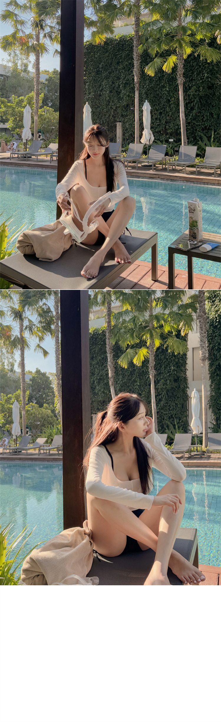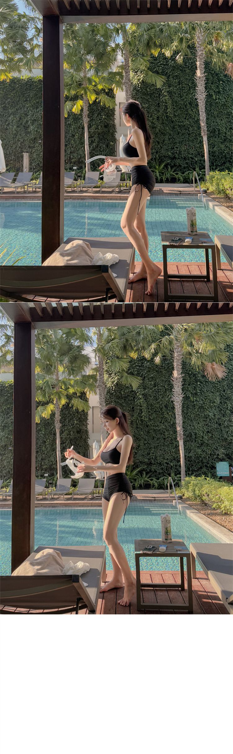 HSPN205100003 韓女黑色吊帶分體泳衣溫柔罩衫性感純欲顯白顯瘦島嶼度假溫泉