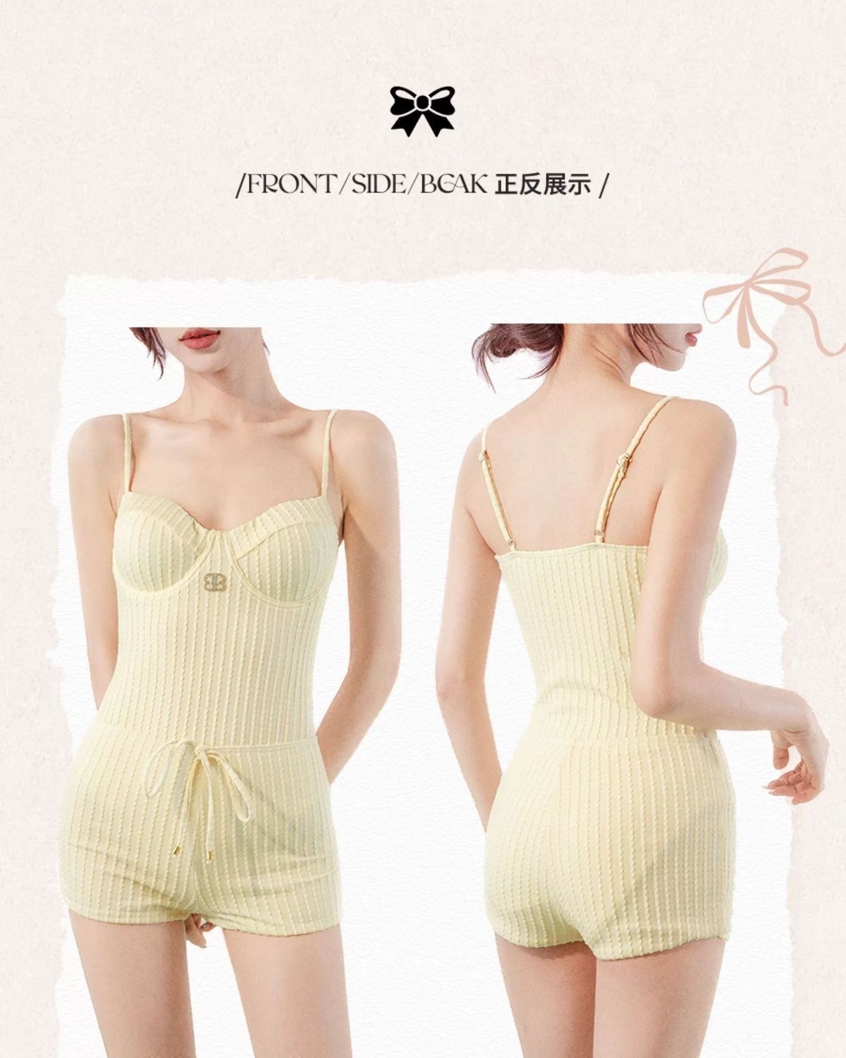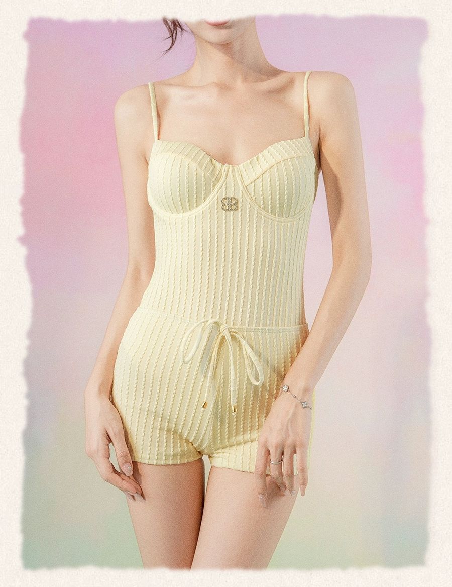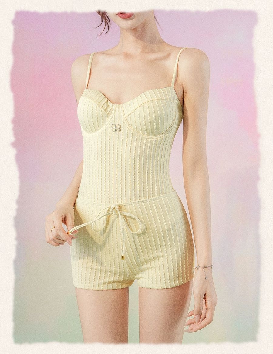 HSPN205A10000 奶油黃簡約高級顯瘦設計感度假溫泉泳衣海島拍照出片