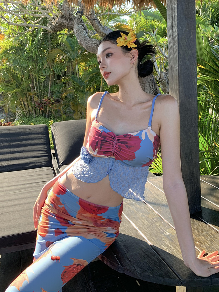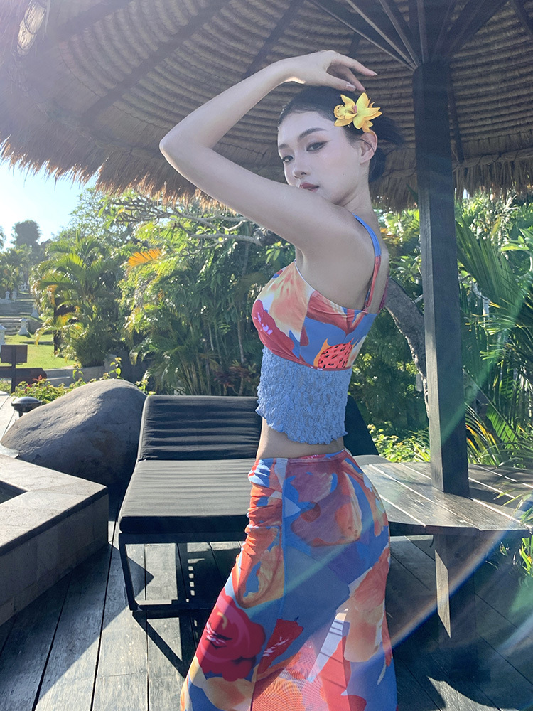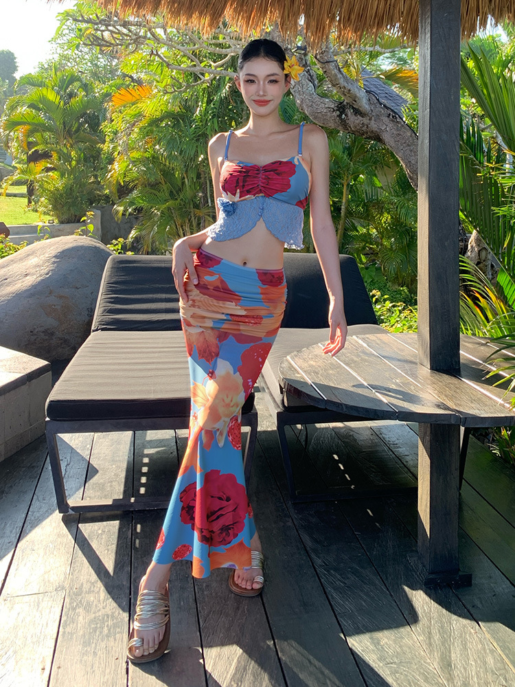 HSPN205B100001 多巴胺立體花分體抹胸長裙比基尼三件套