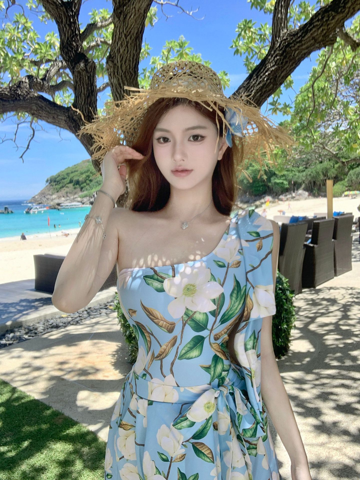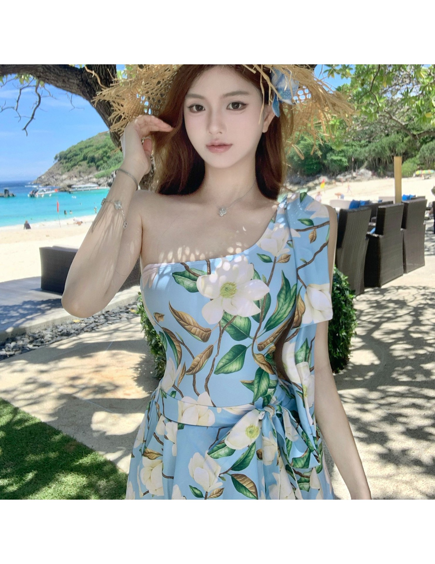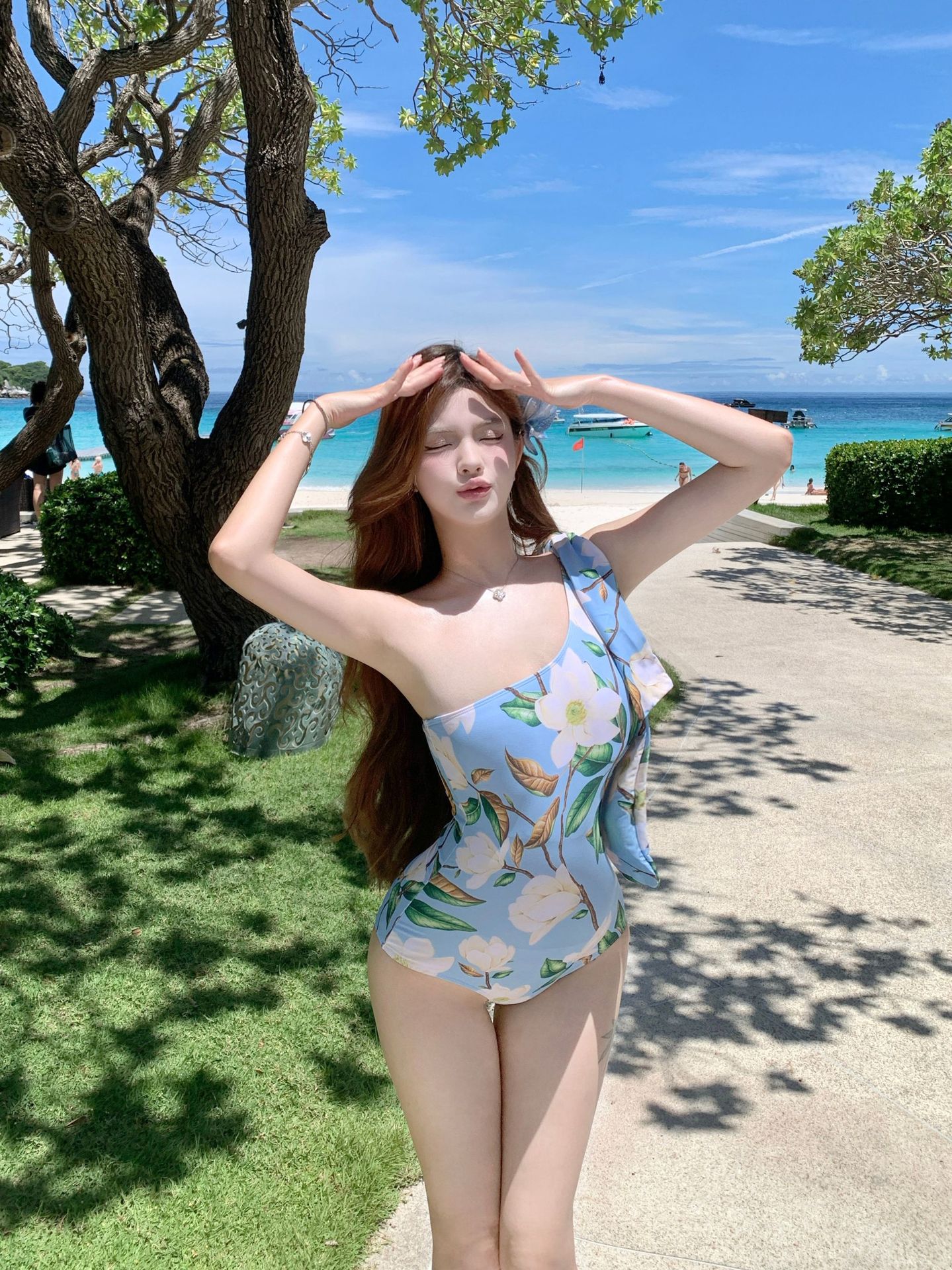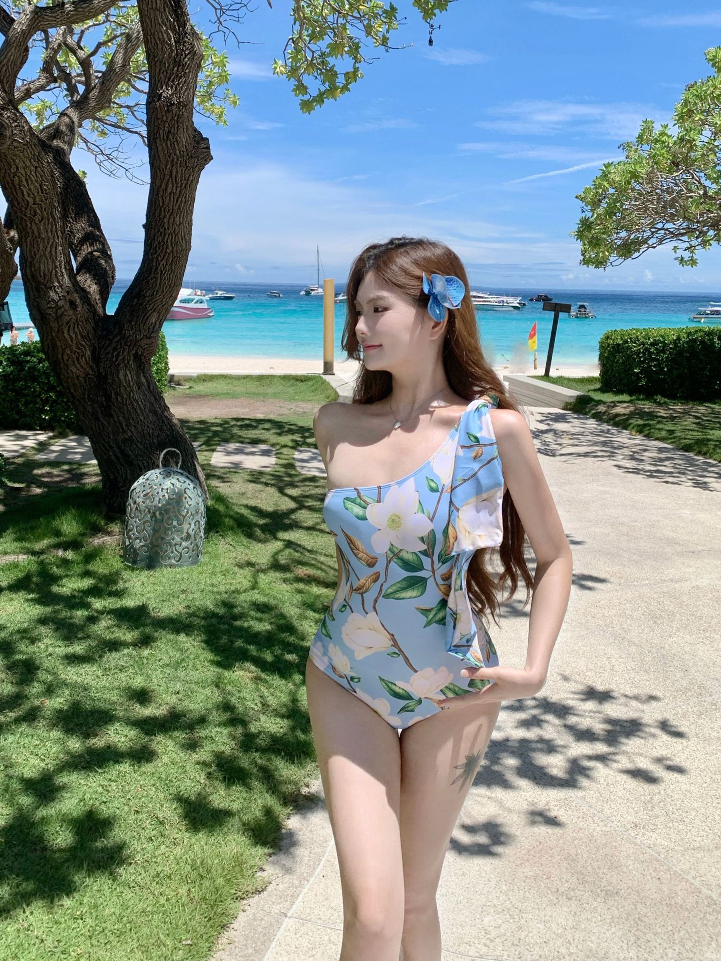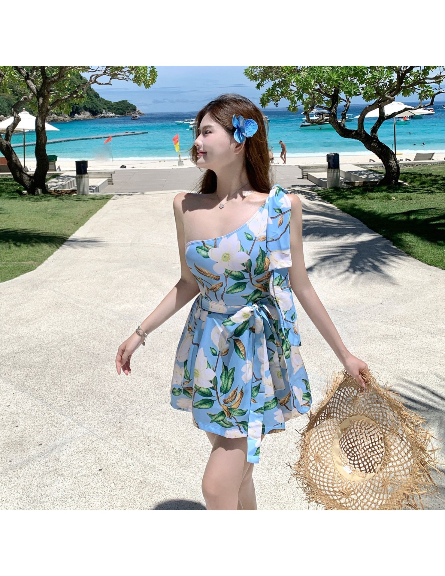 HSPN205B100002 新款藍色小清新碎花海邊度假連體泳衣