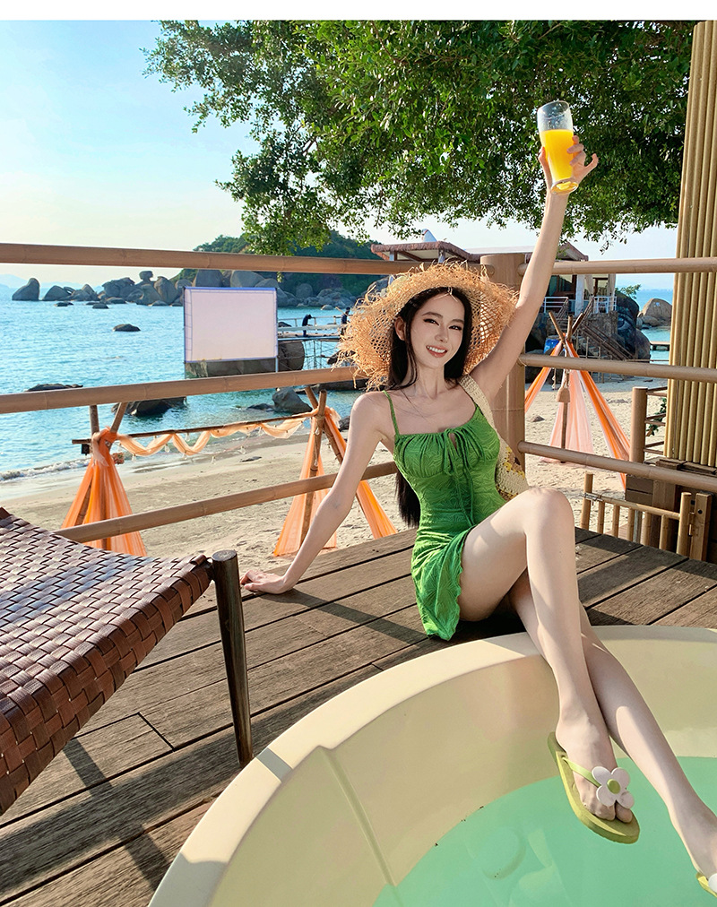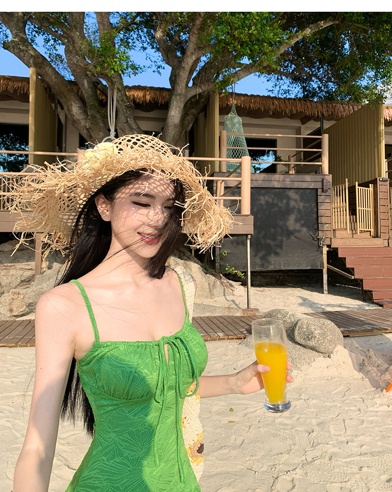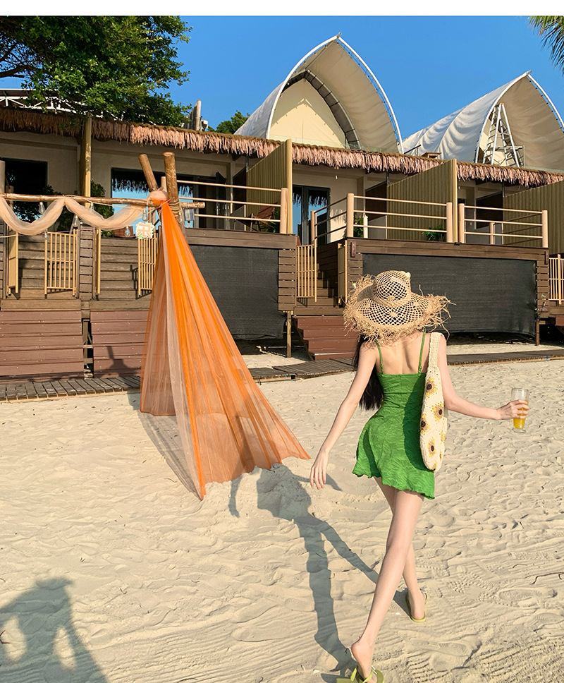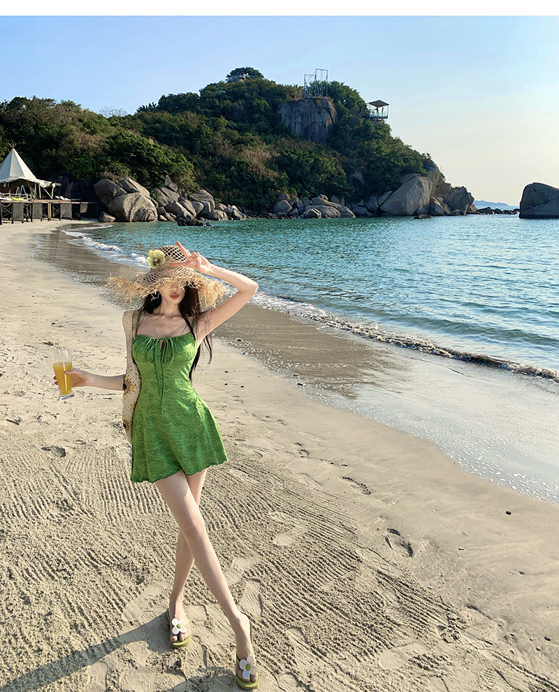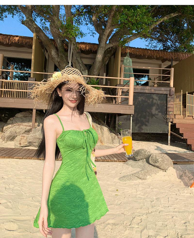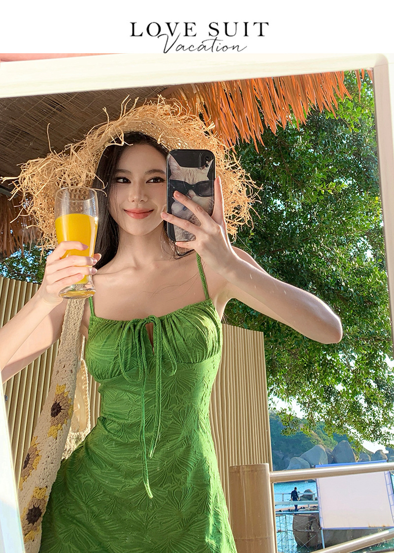 HSPN205B100003 迷霧森林ins復古綠吊帶長裙溫泉泳衣顯白顯瘦森系少女拍照超出片